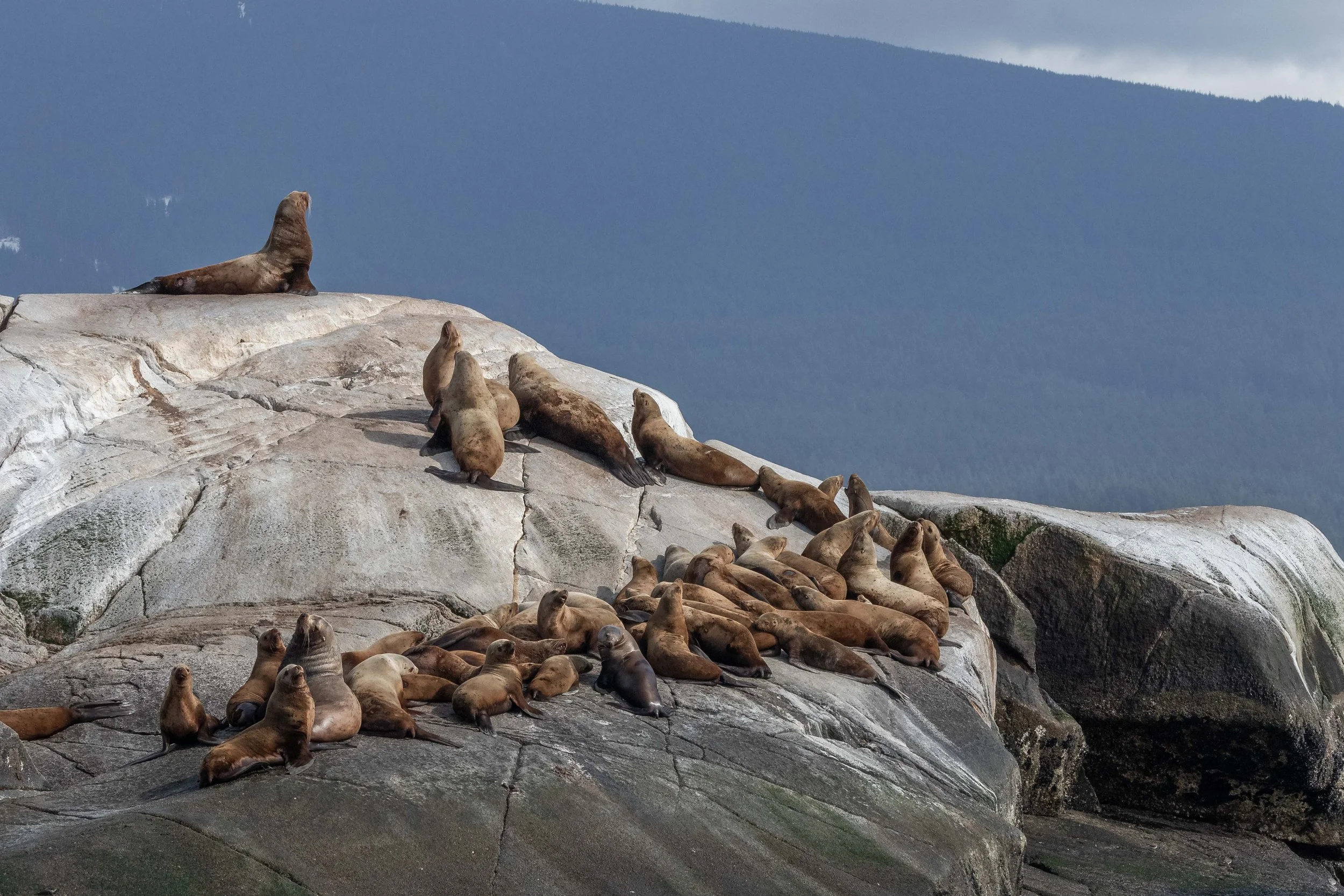 Next, we searched southeast east scanning the shore along Gibsons. From there we turned and began scanning the shores up the Sunshine Coast with fingers crossed we’d see a blow. We could smell something slightly unpleasant as we travelled along - what could be causing that smell? It was coming from the White Islets - not surprising as it was full of Harbour Seals and Steller Sea Lions. We love them all, but can’t deny they are a little smelly! After stopping to snap some photos we continued on.