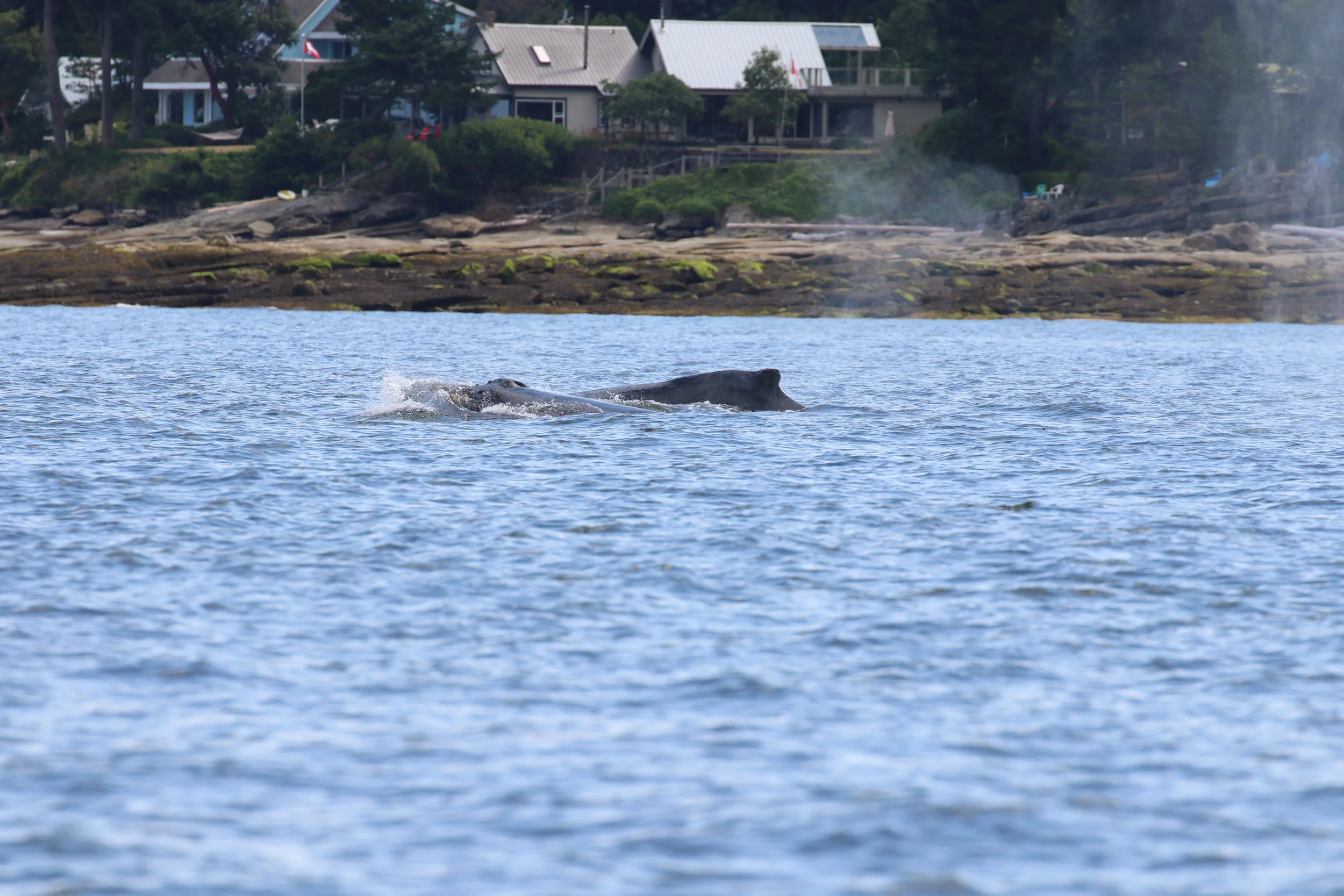 We found a mom and calf humpback pair near Gabriola Island. We got to see the calf breach twice! We didn’t managed to get any fluke shots, so we weren’t able to ID them in the morning, but in the afternoon we came across another pair, closer to Bowen Island, this time we did get some tail shots! We were able to ID Split Fluke ( BCX1068) and her new calf that was born this year! It’s possible this were the same 2 we saw in the morning, but we can’t say for sure.