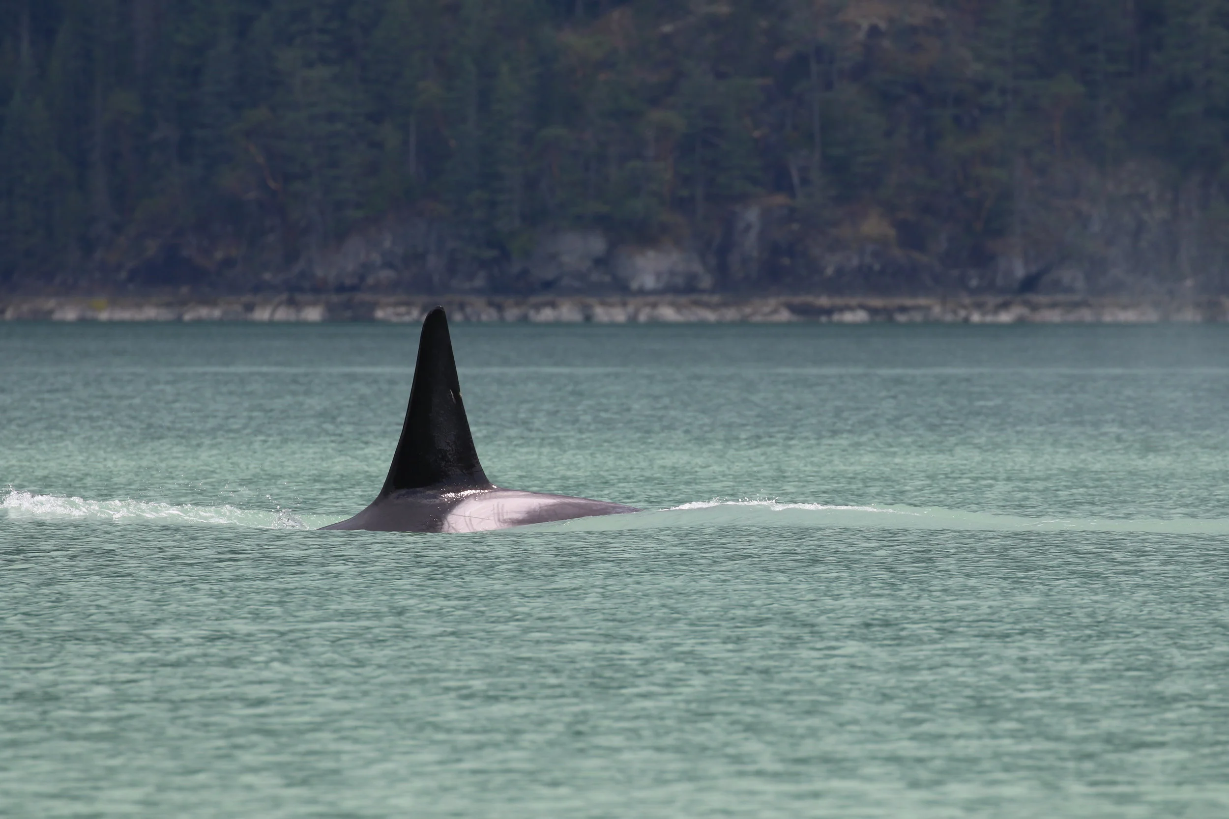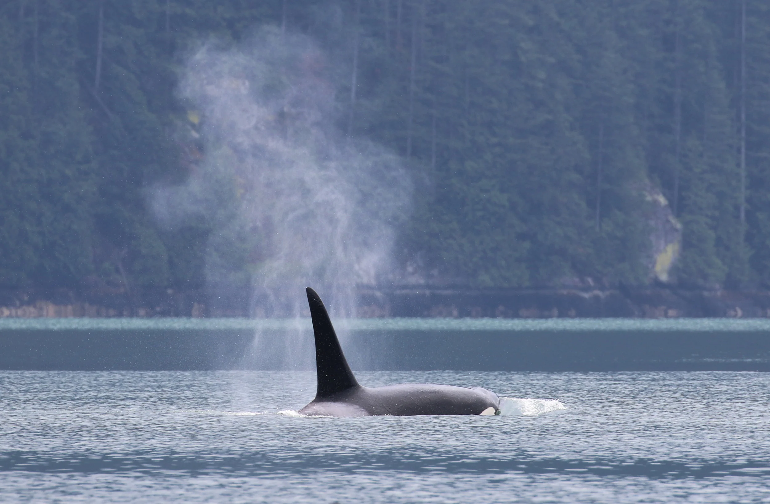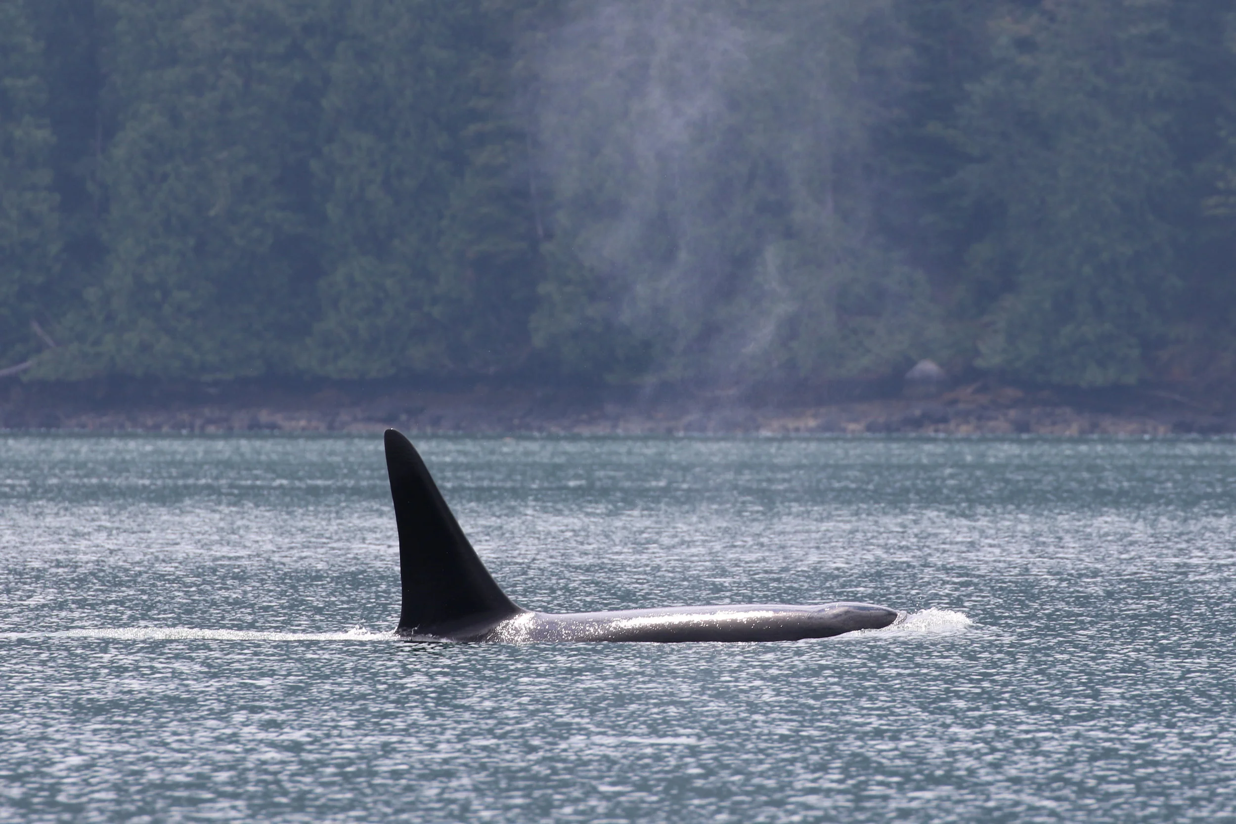 On both our trips we hung out with the T101 pod. In the morning we found them heading north through Howe Sound and we followed them all the way around Anvil Island. In the afternoon we found them heading east near Bowen Island. They were doing lots of traveling!