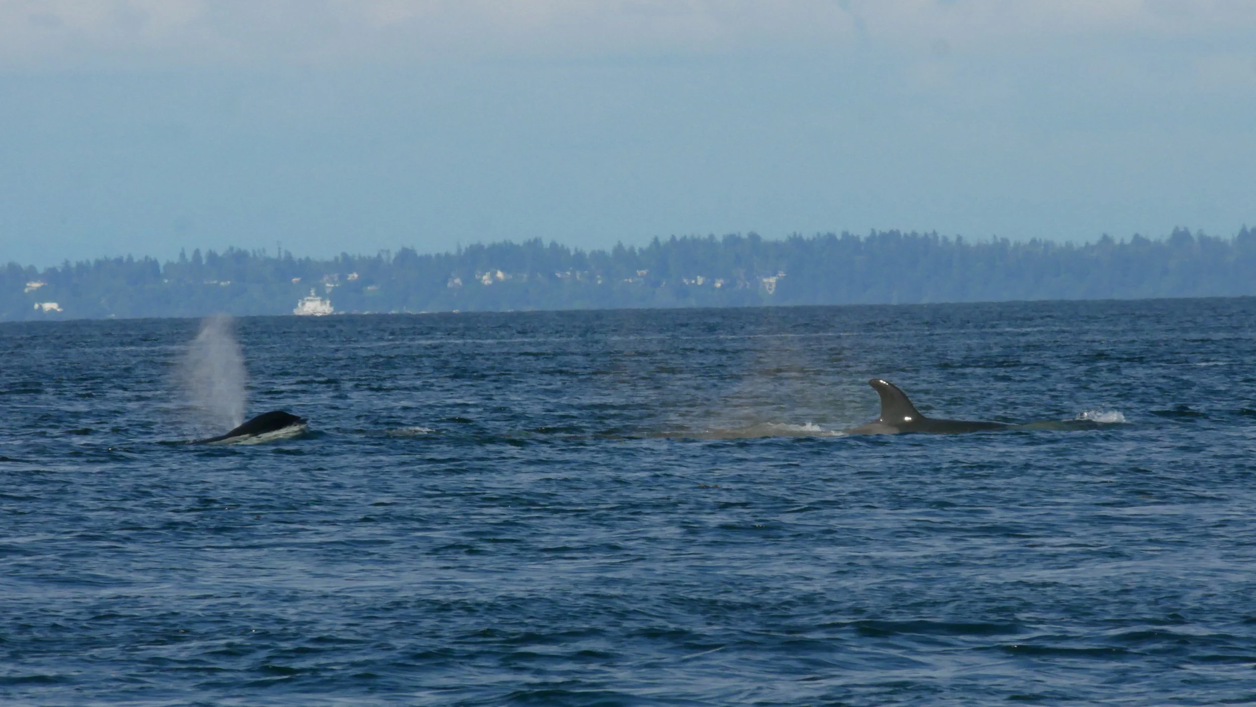 On Wednesday morning, we ventured across the Strait of Georgia to the beautiful area of Howe Sound. Bella (T99), Holly (T99B), Barakat (T99C), and T99D were busy travelling along and hunting the costal shores.