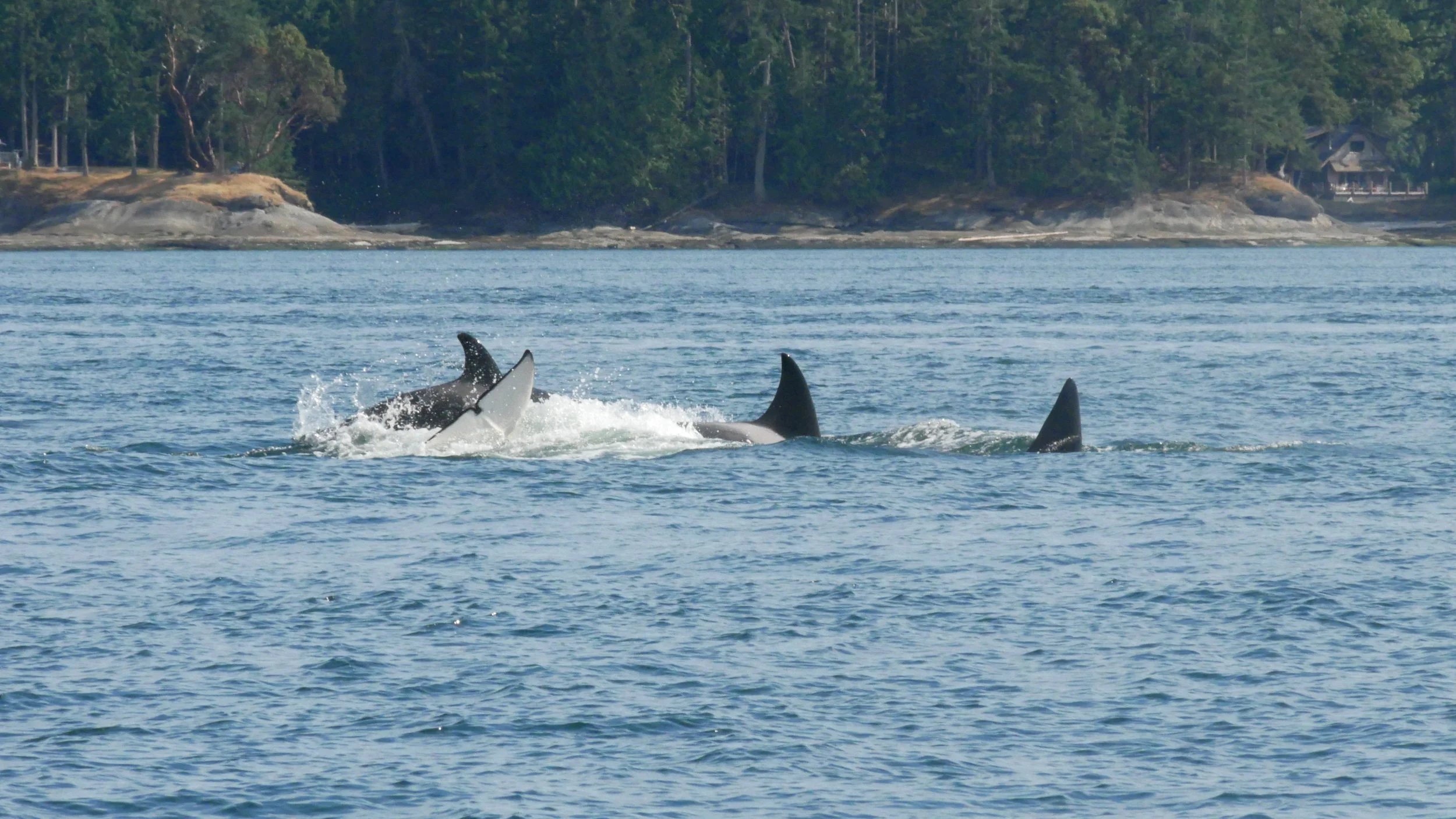 The afternoon pods were being very active on the surface. We had lots of tail slap action as they travelled up Galiano Island’s shoreline.