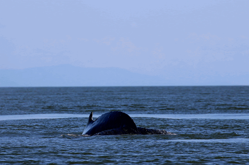 T102 - “Beardslee”. Notice the distinct curve in the tip of his dorsal? Photo by Cheyenne Brewster (10:30).