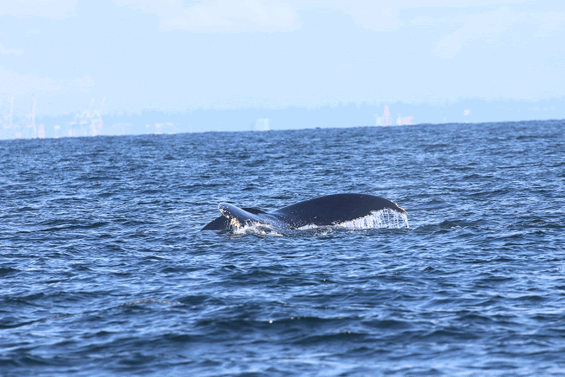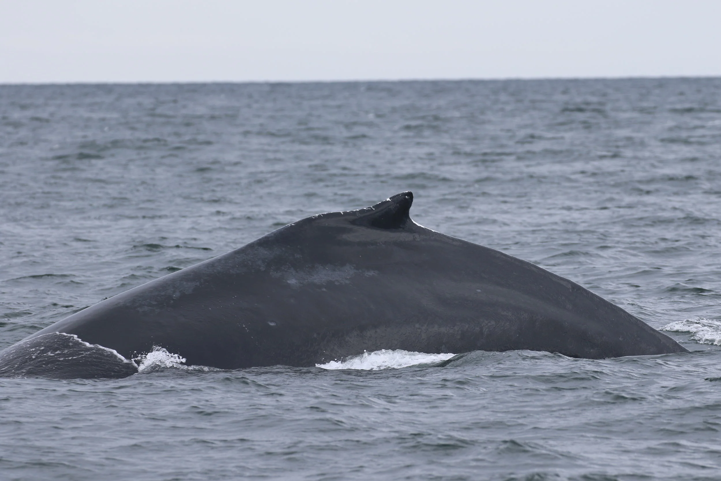 Big Momma (BCY0324). Big Momma has a distinct bump on her fluke as well as her side below her dorsal. Photo by Natalie Reichenbacher (10:30).