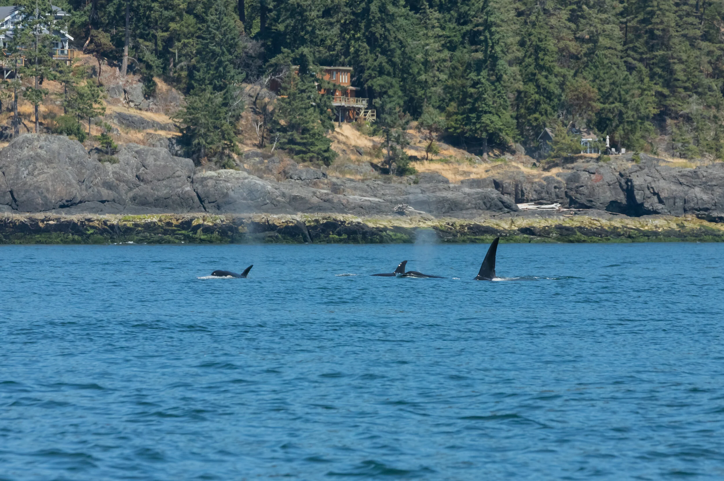 Once we left our orcas, our vessels headed back out across the Strait in search of other wildlife. They located some sleepy Stellar Sealions, Harbour seals basking in the sun, Cormorants maintaining their nests, and even a Pigeon Guillemot right after a successful fishing trip! While we have seen Pigeon Guillemots occasionally along Gabriola’s coastline, this is the first year we have been able to confirm that they are nesting in the cliffsides facing our harbour.