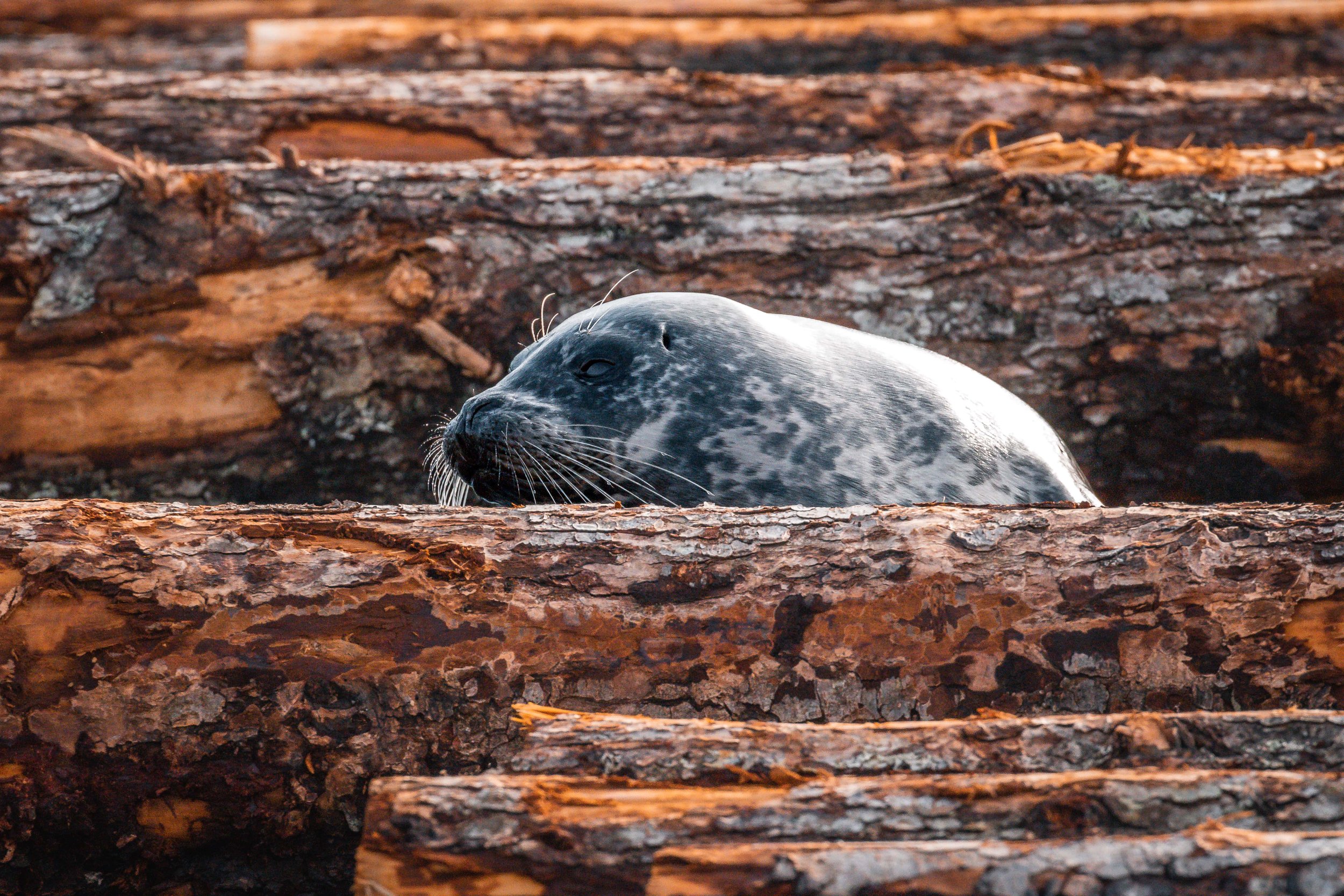 When we found the pod they were just finishing up hunting and the gulls were coming in to clean up the last remains of the meal. Once they got moving again we watched as they travelled through Dodd Narrows and continued south in the southern gulf islands. These amazing animals can travel up to 100 miles per day so it’s always great to cross paths with them. After leaving the T018s behind we headed back to Harmac, close to where we saw them hunting. Once we got there it seemed as though the pinnipeds present were scared! One little harbour seal had taken shelter on the log booms, something we don’t often see with the sea lions so close. Although not common, the sea lions can hurt the seals when they share the same area. Better to risk it with the sea lions than with a pod of orca though! The sea lions were also not as rowdy as usual and only had a couple fights break out while we were watching them.