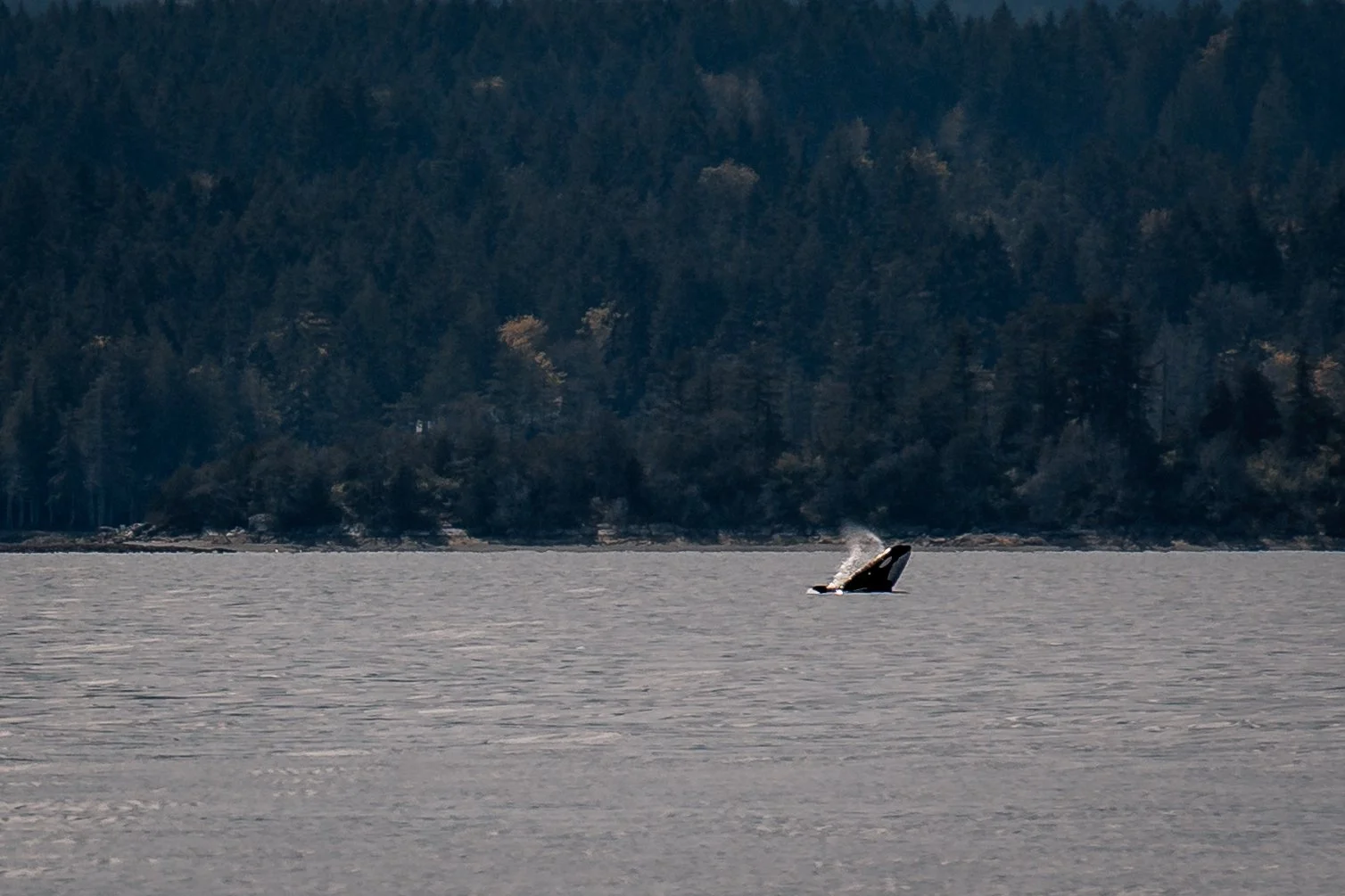 After the rescue our boats traveled through Dodd Narrows and into the Gulf Islands and were quick to find our T-party still hanging out in Stuart Channel. The T018’s and the T023D’s were still hanging out and partying but the party was a bit more exciting today. While the group was traveling around, they started to do some tail lobbing, porpoising and one of our boats even got to see some breaching towards the end of their stay with the whales.