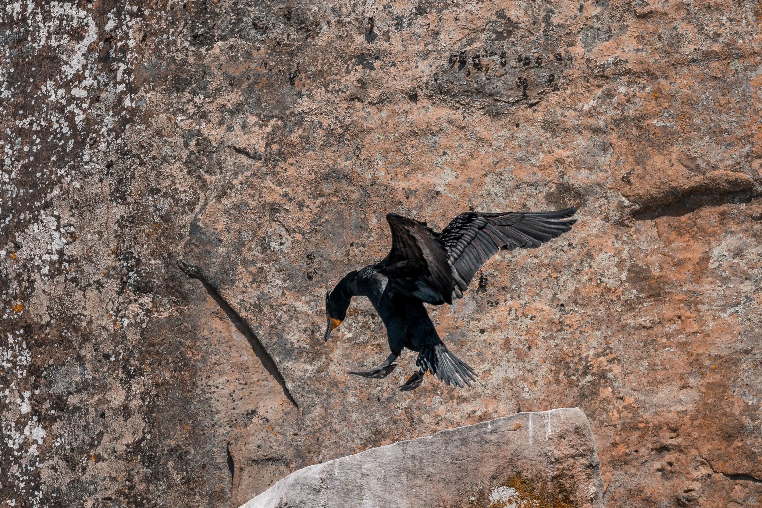 Double Crested Cormorant coming in for a landing. Photo by Val Watson.