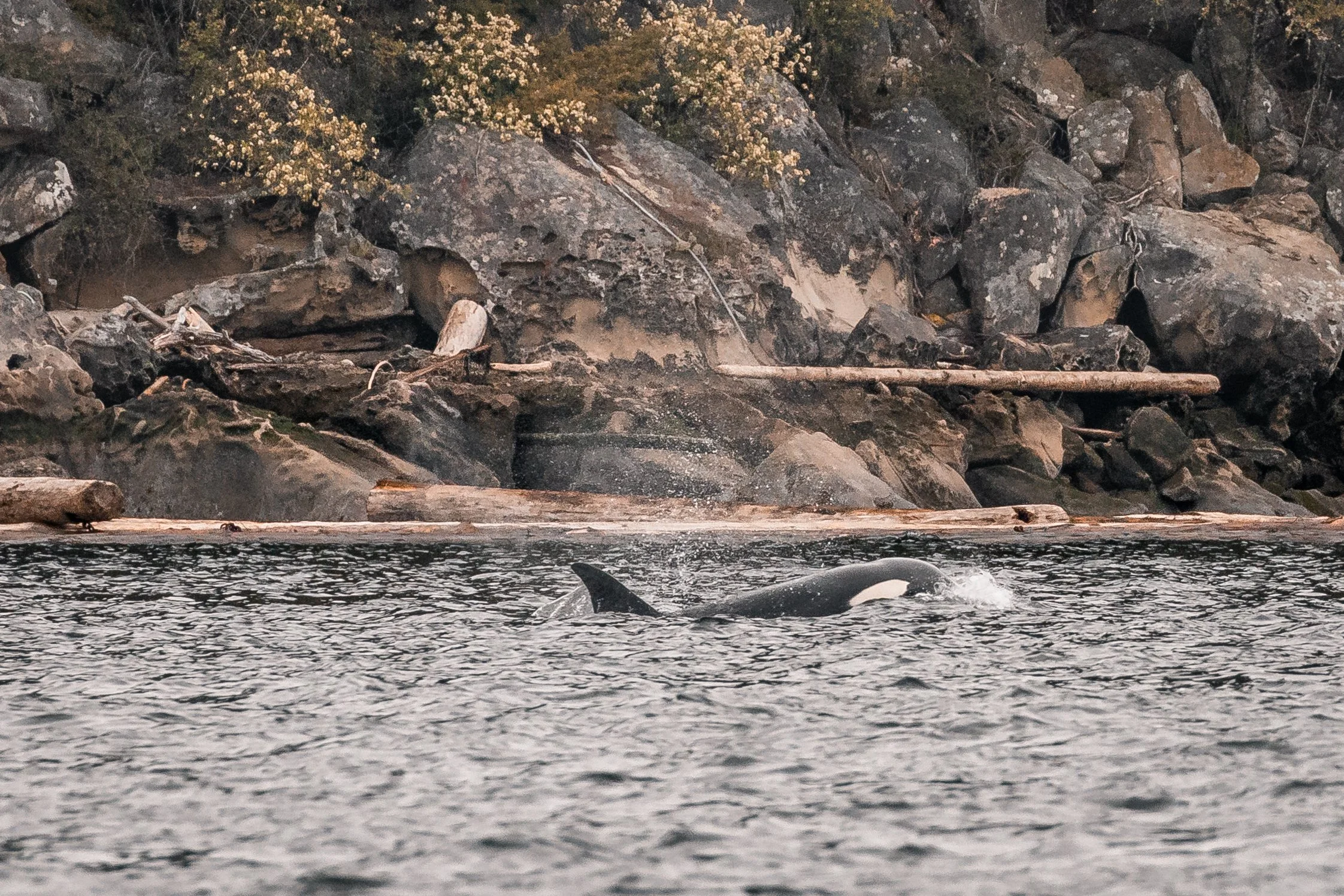 Kula, our semi-covered vessel, left the Nanaimo harbour early today with a private charter, and it was a good thing we did. It took next to no time to find our first group of whales as they were traveling along the Gabriola cliffs heading for Dodd Narrows.