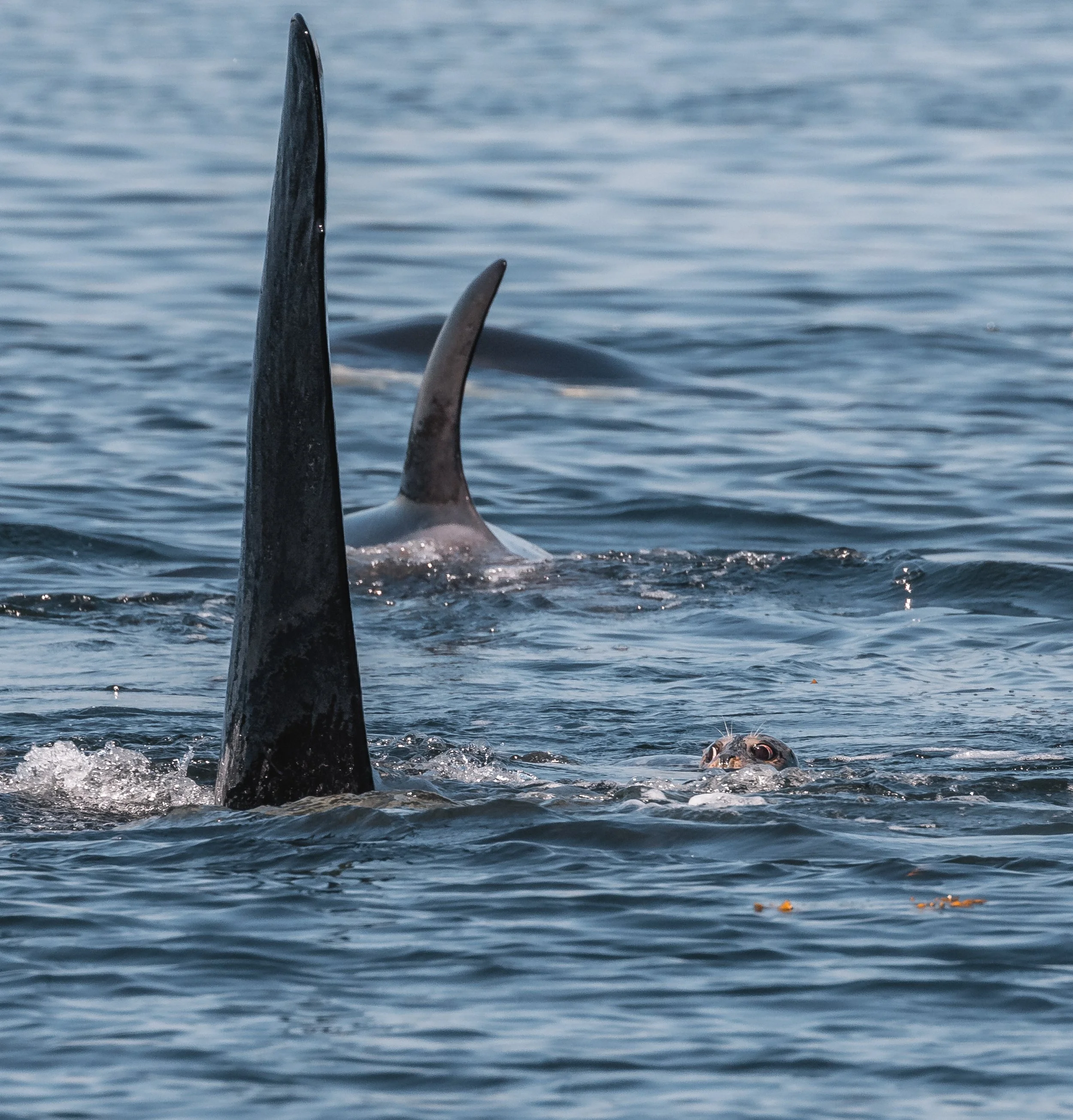 The poor seal amongst the group of orca. Photo by Val Watson, 10:30 am.