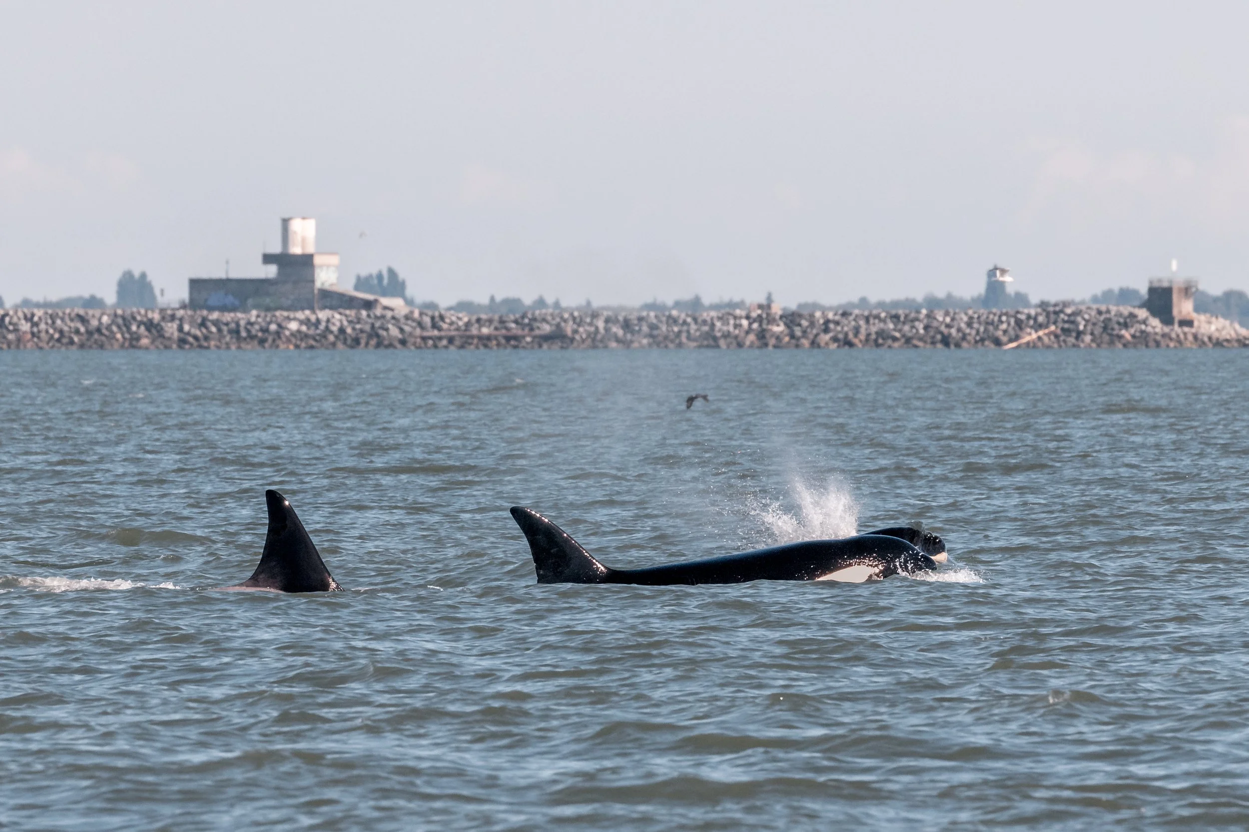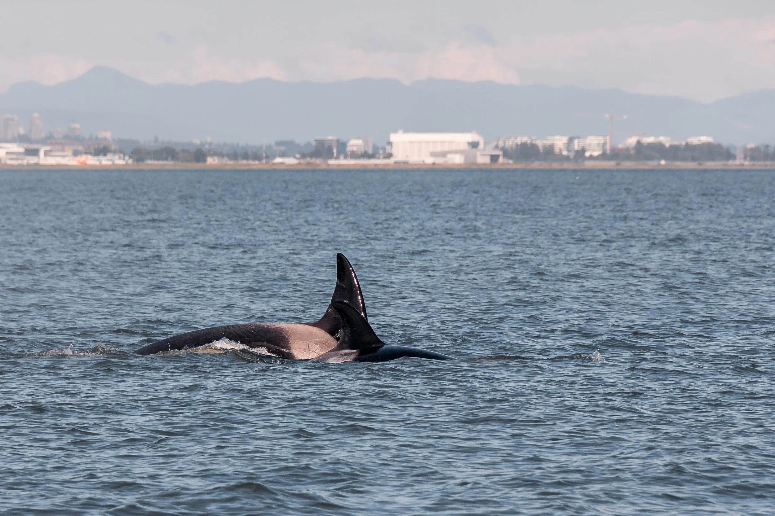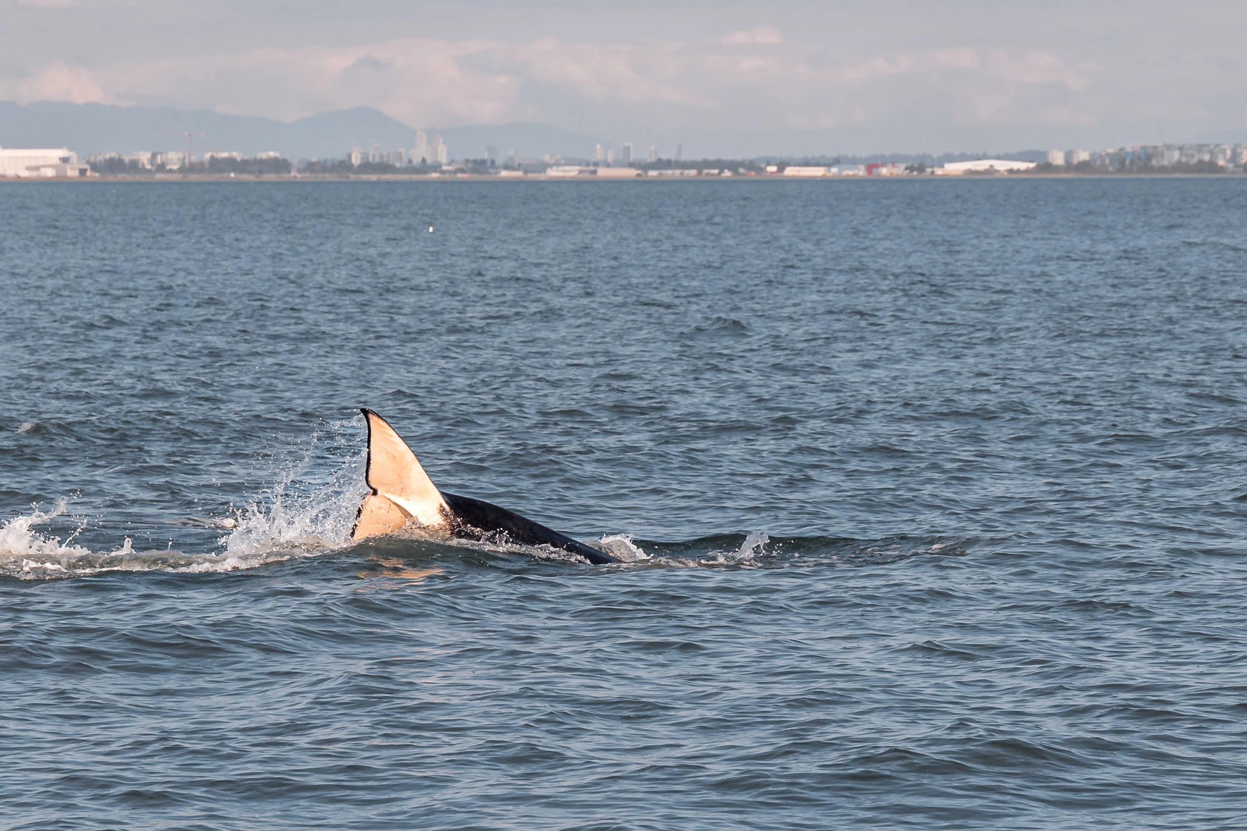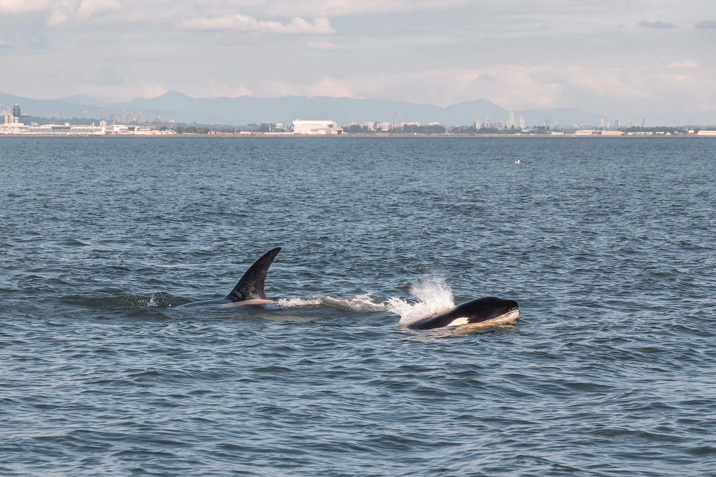 This afternoon the T124A4’s and the T124A2’s paid us a visit over at the Sturgeon Banks west of the Vancouver Airport. The same pod were over in the same spot on July 20th hunting and celebrating. They sure like that spot, and so do we! While the planes were flying over us, the orca were tail lobbing, barrel rolling and likely hunting something in the area. It was quite the show!