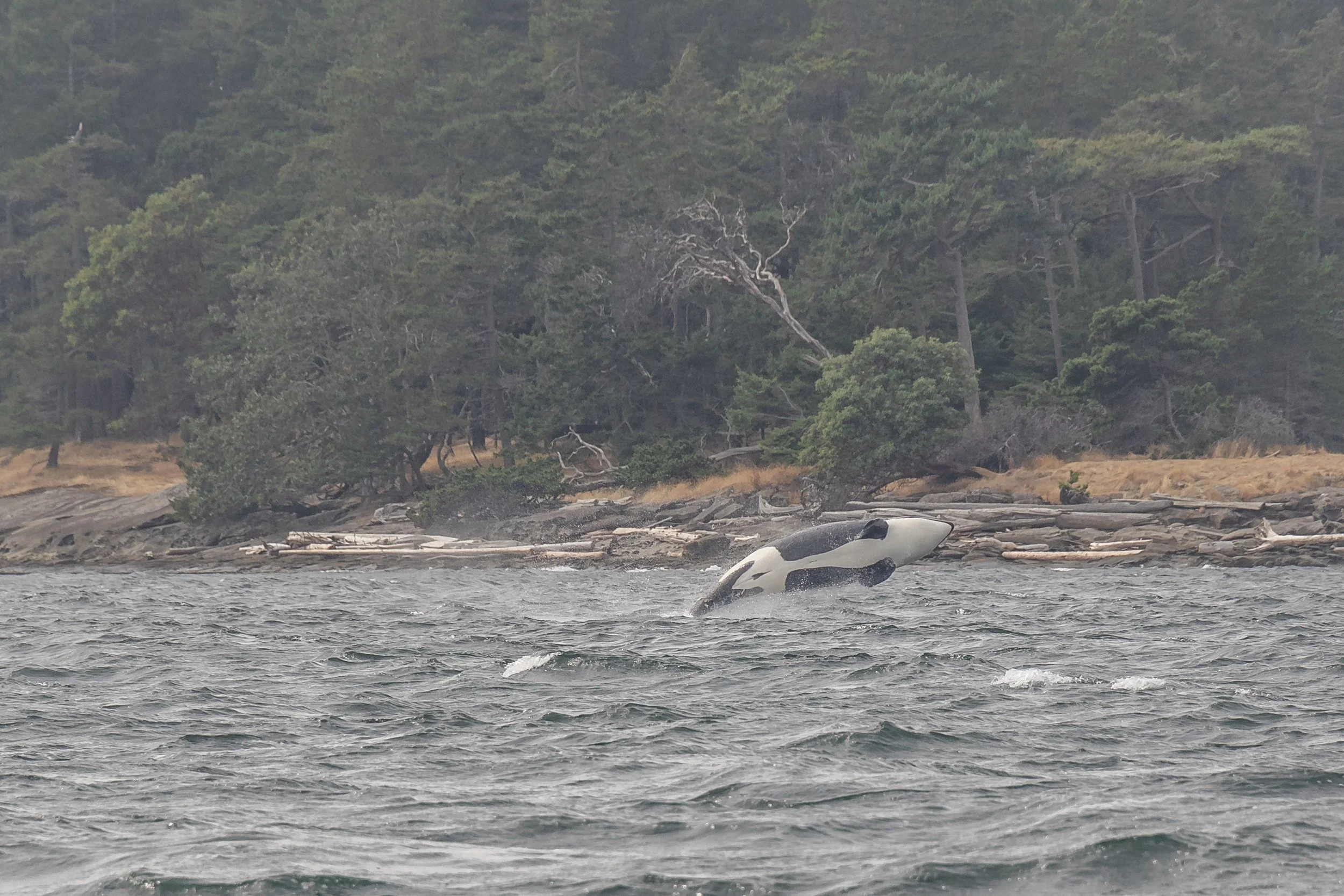On the flip side, he could be just enjoying life by himself and continuing his adventures. While it’s concerning when young whales disperse, if they are finding food and other pods to travel with, theoretically they are fine. Indy looks very well fed, but he is also getting increasingly excitable. Today we watched as Indy started breaching, spy hopping and tail lobbing as he travelled around near Gabriola Island. He even mugged the boats briefly, which is an odd behavior for an orca. Occasionally an orca will give a close pass to the vessels, inspecting them quickly before moving on, but not often do they “mug” the boats. That’s typically a job reserved for humpbacks. It was a very curious behavior that had us scratching our heads. We hope he was just in an excitable mood and that he is doing well, as he didn’t appear injured or otherwise distressed.