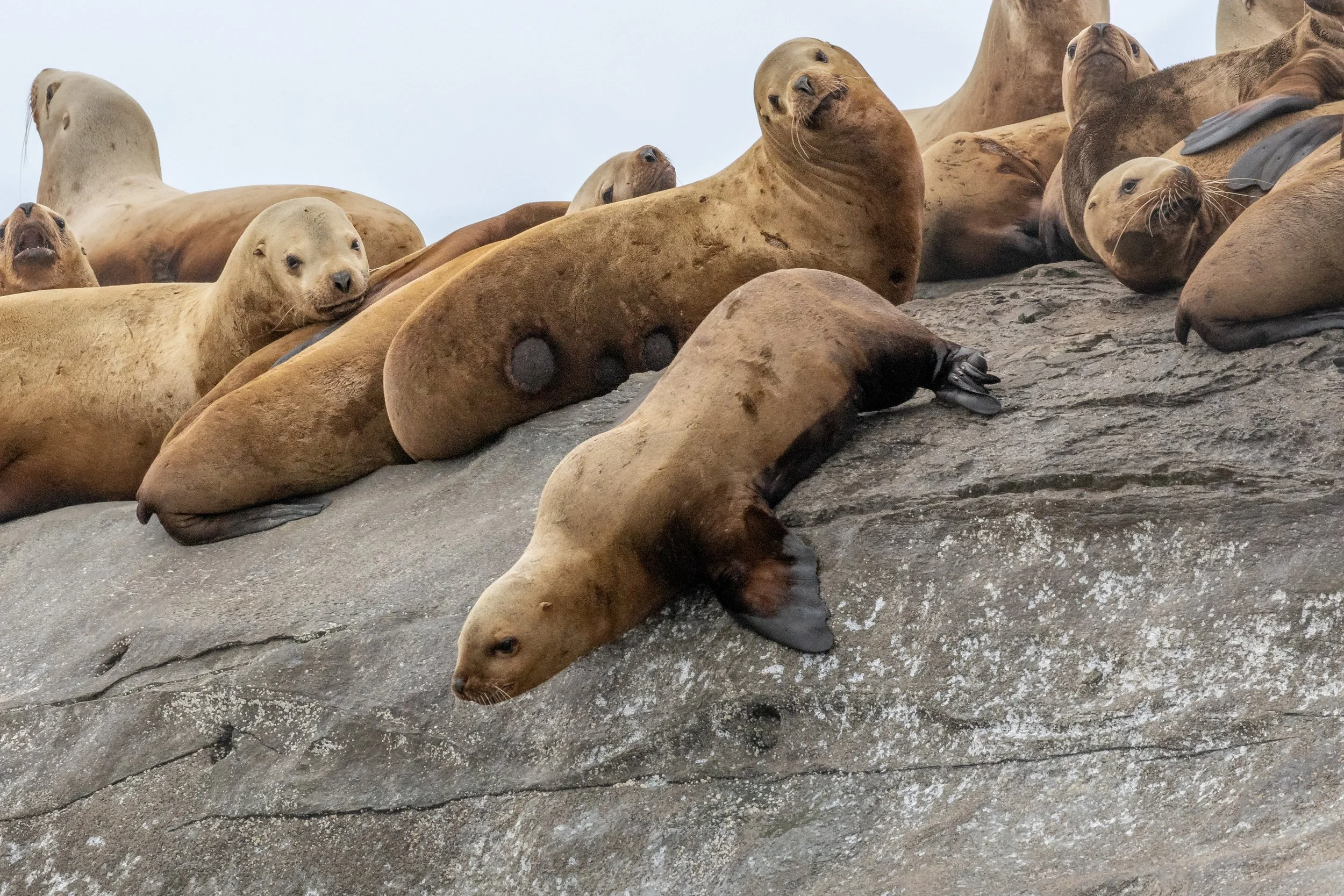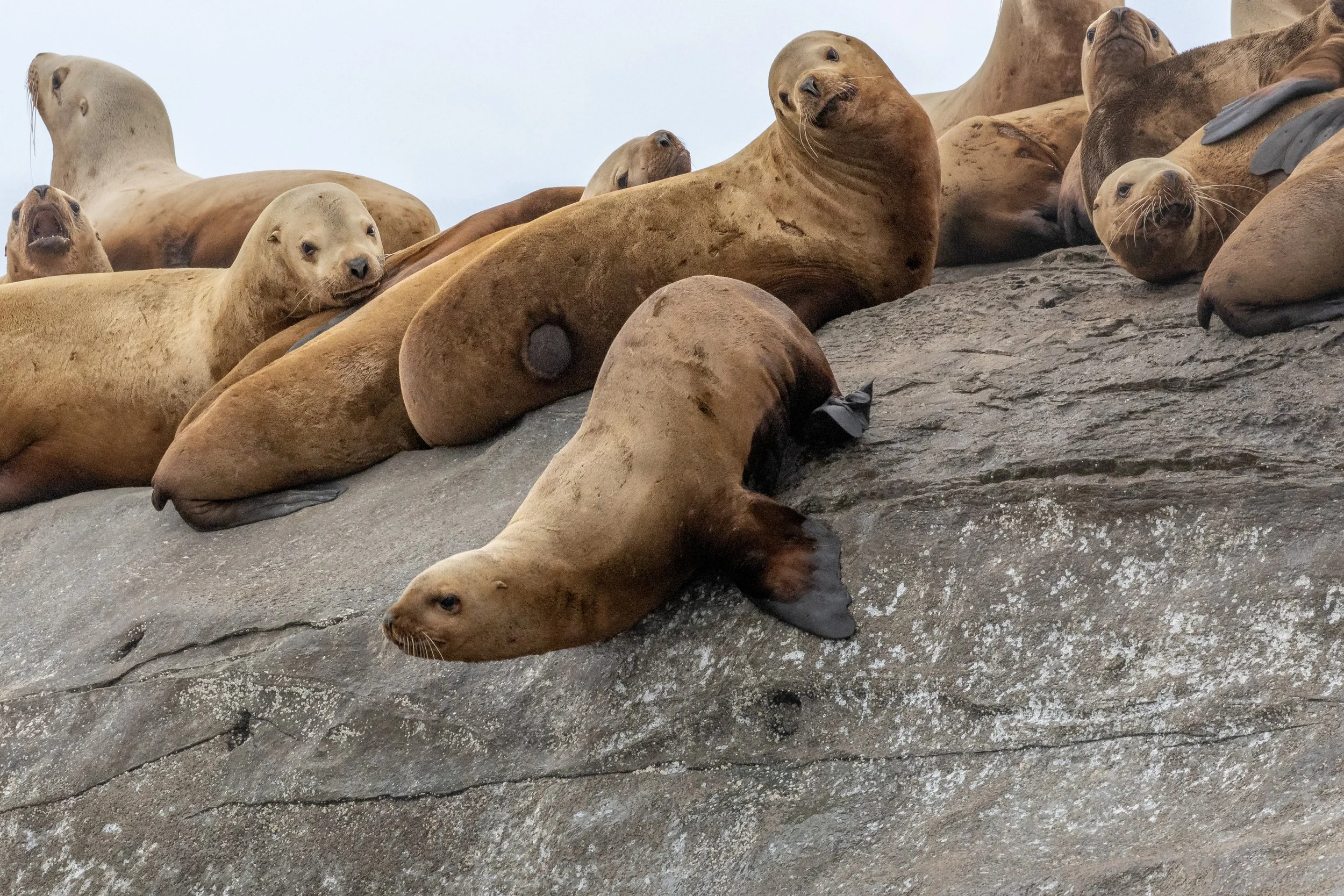 Besides seeing our whales, we also saw a big pile of Steller sea lions and California sea lions on “Stinky Rocks” (the unofficial name for a small group of rocky islands south of Gabriola pass) and a colony of Harbour seals snoozing on the rocks.
