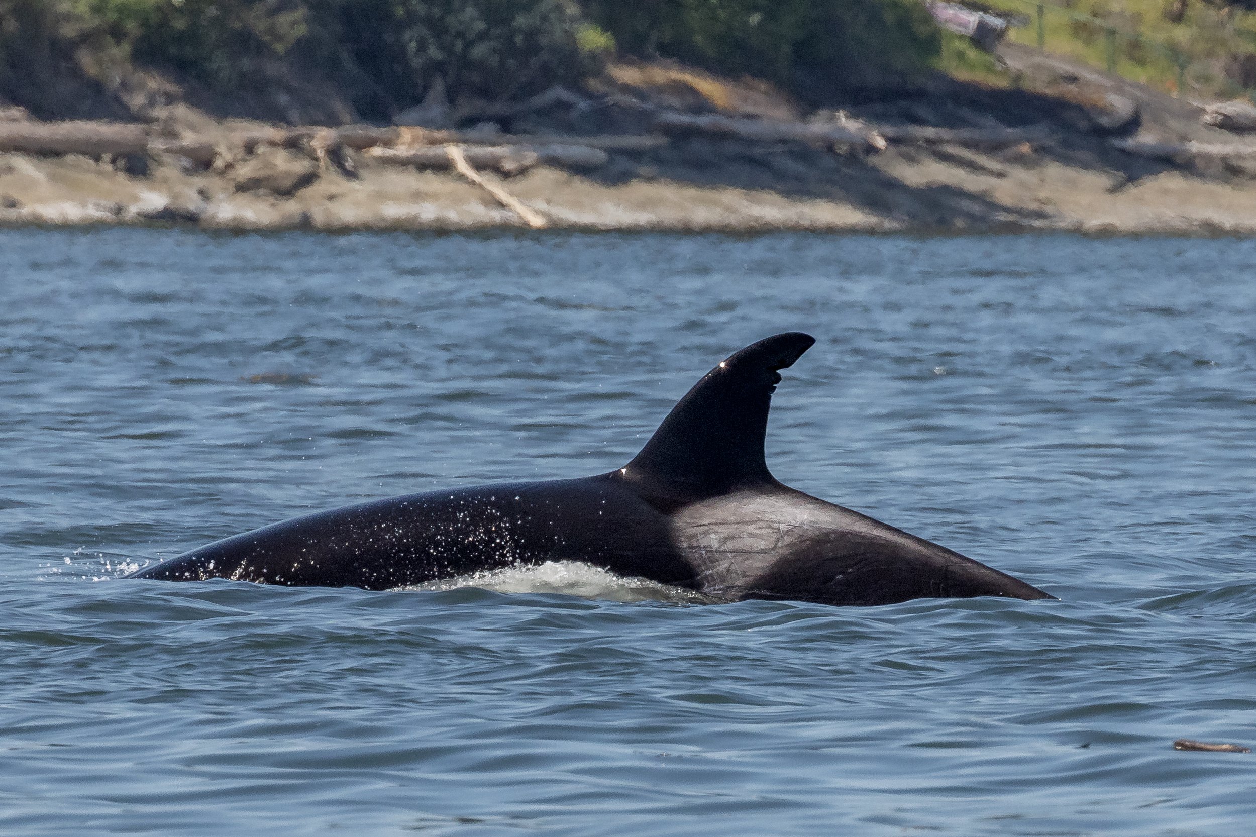 On land, it was a scorcher of a day, but on the water, we had a nice breeze to keep us cool as we pulled up to the T099’s. The family was quite spread out for a lot of our encounter. Perhaps they were scanning the area for their next meal. This family is notorious for their hunting prowess. The T099’s along with another family that frequents the area (the T065A’s) were successful in October in a Minke whale hunt. While our Biggs killer whales are marine mammal eaters, it is rare that we see them predate on larger whales and even rarer still for it to be successful.