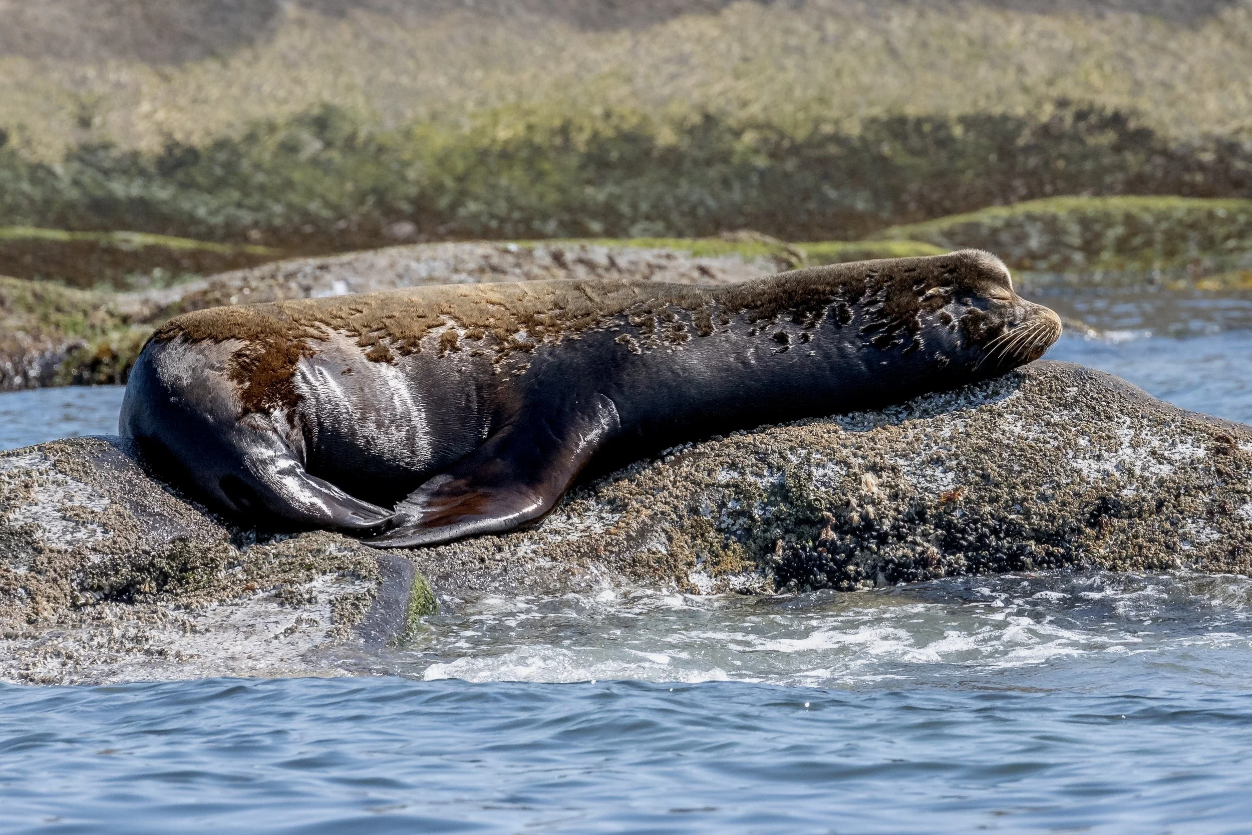 After leaving our humpback we stopped to see some very sleepy sea lions at Entrance Island. They were all cuddled up on a rock just above the waterline.