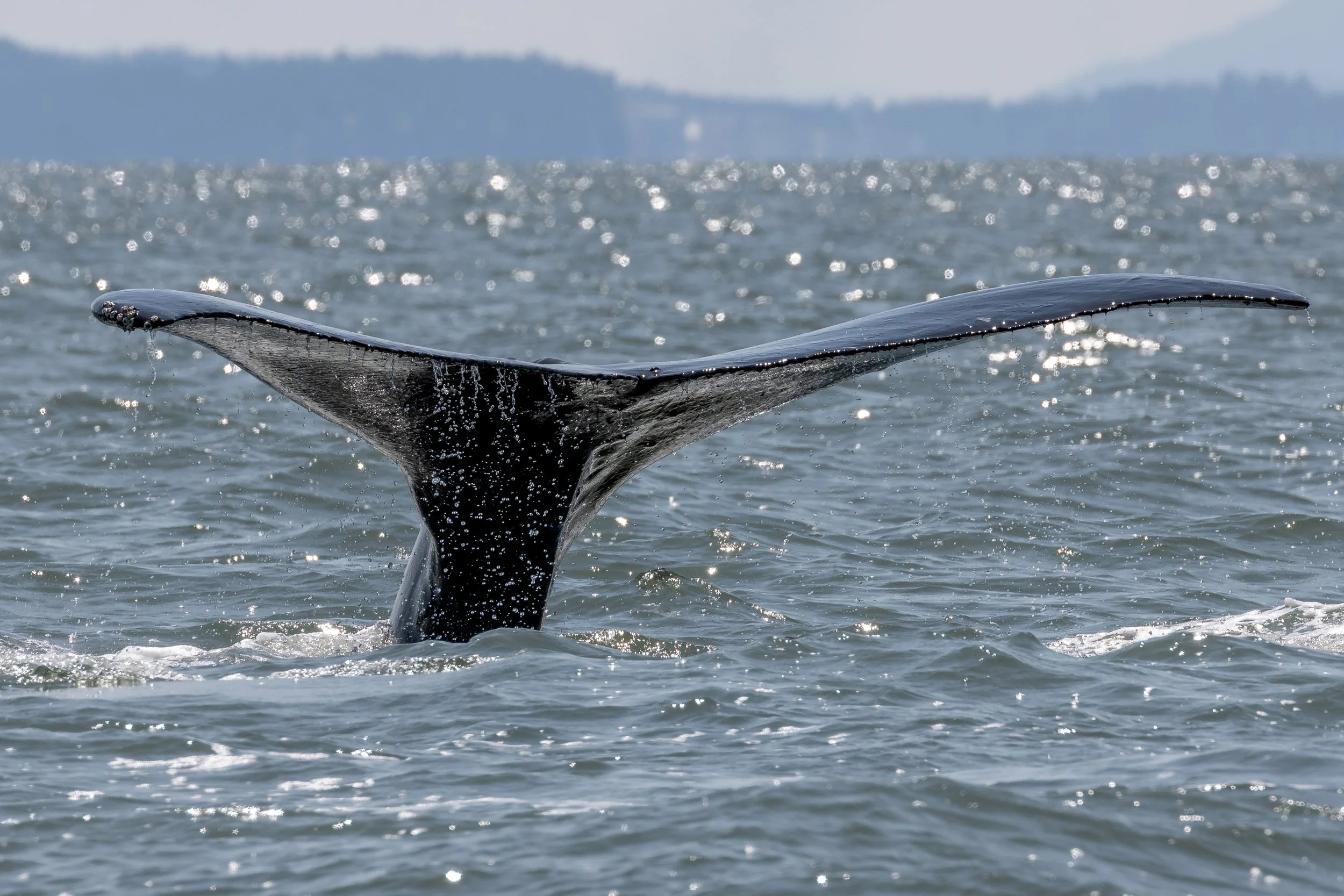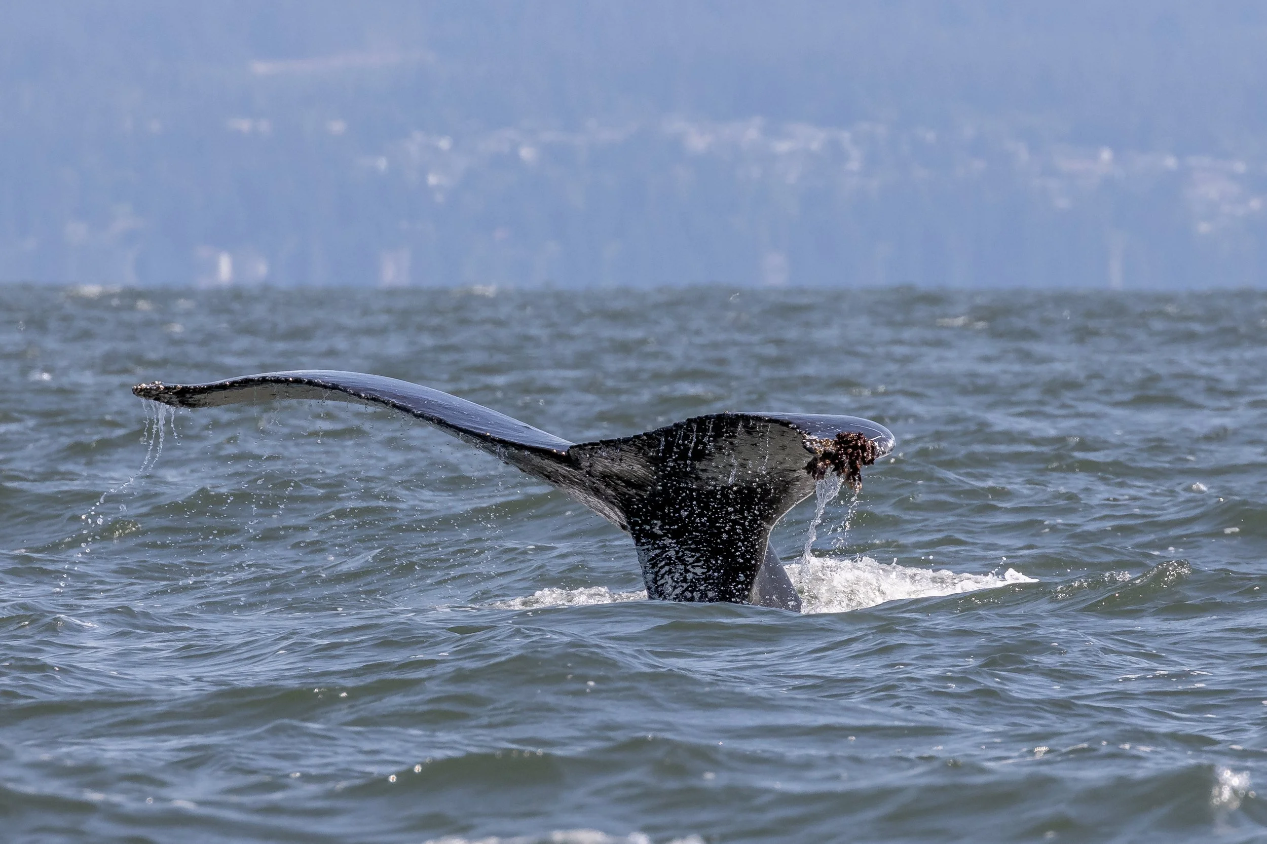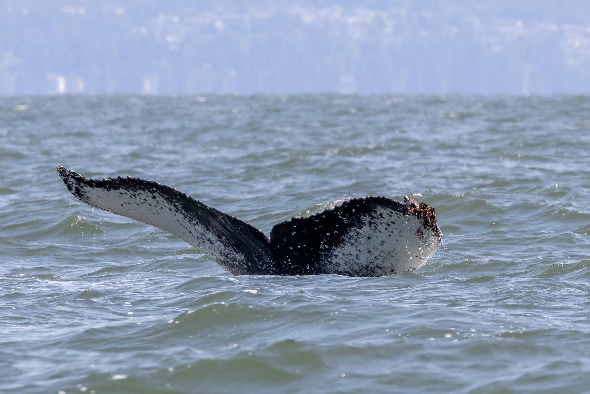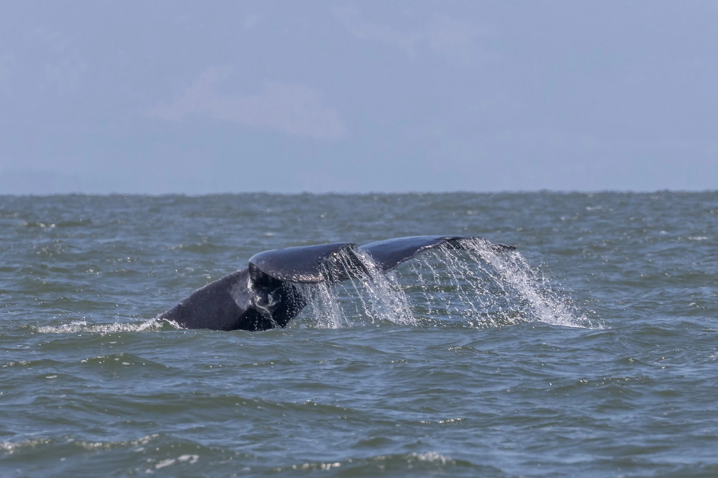 Ghost’s 2021 calf lifting it’s tail to dive! Photo by Vanessa Vereschahen.