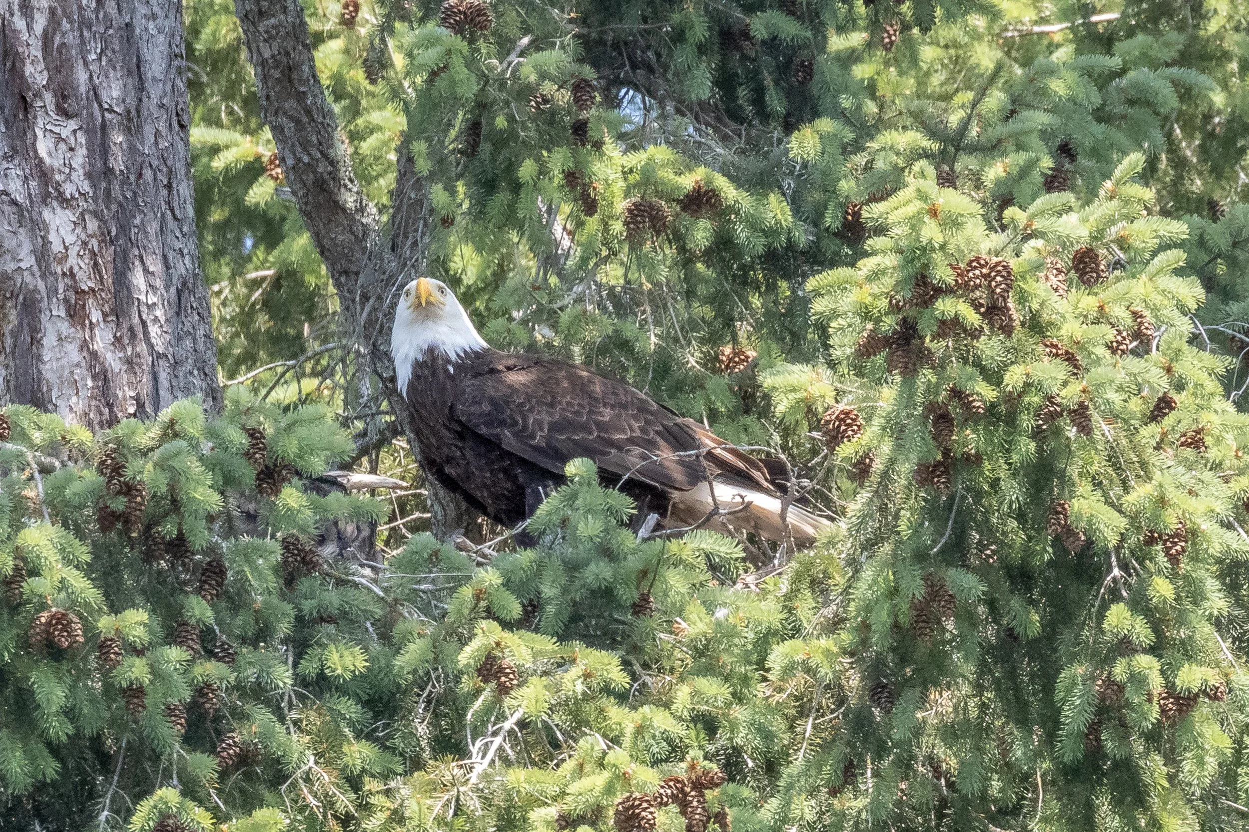 An adult bald eagle keeping watch from a nearby tree. Photo by Vanessa Vereschahen.