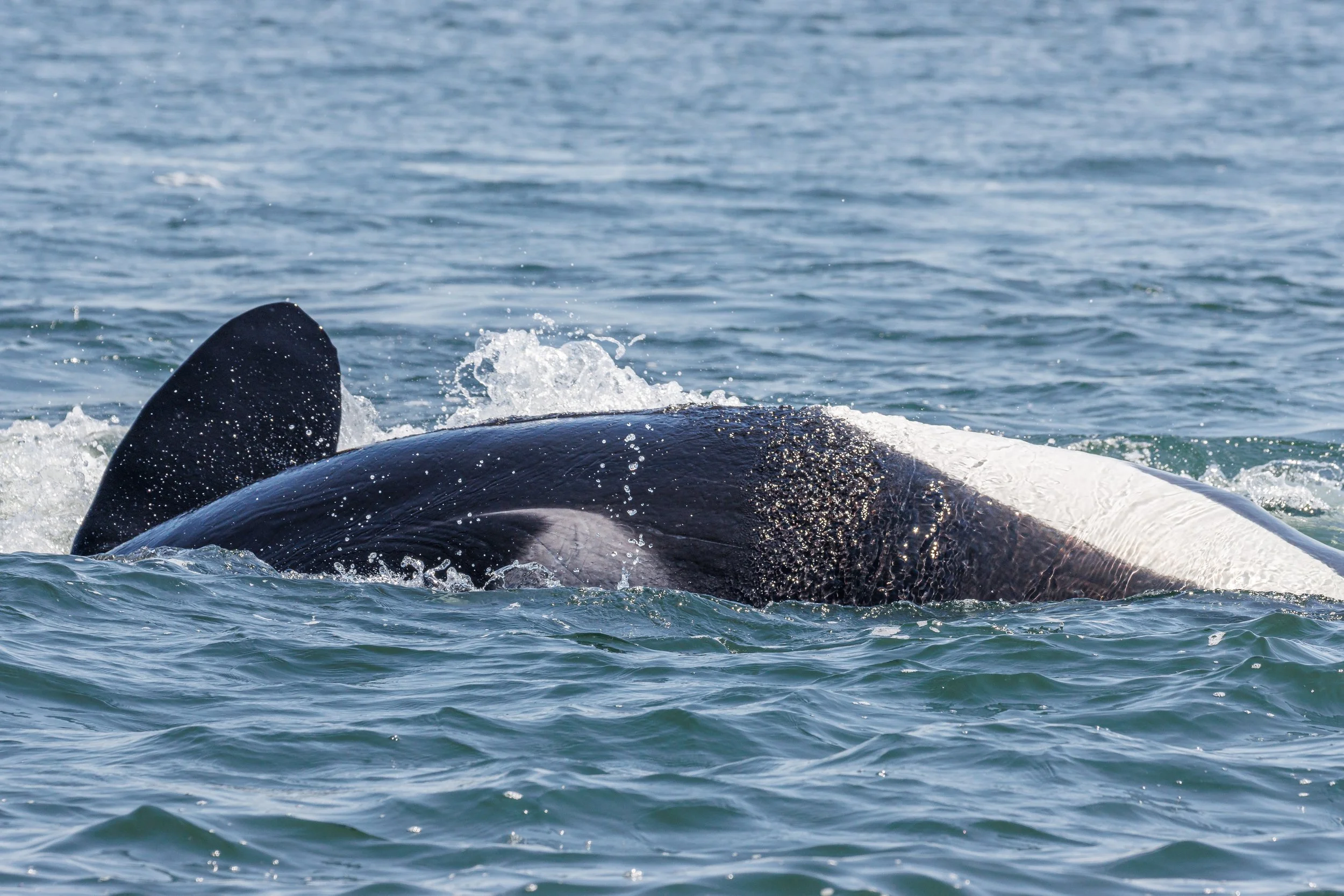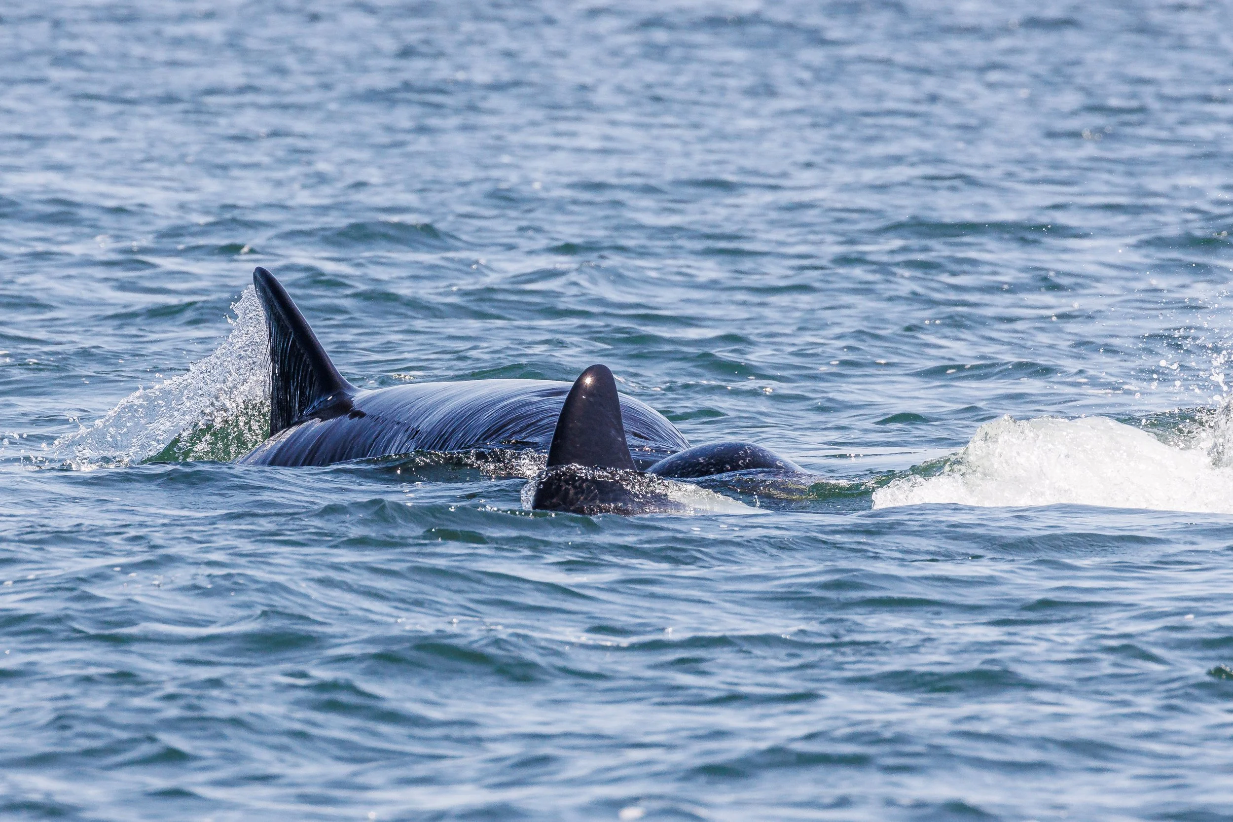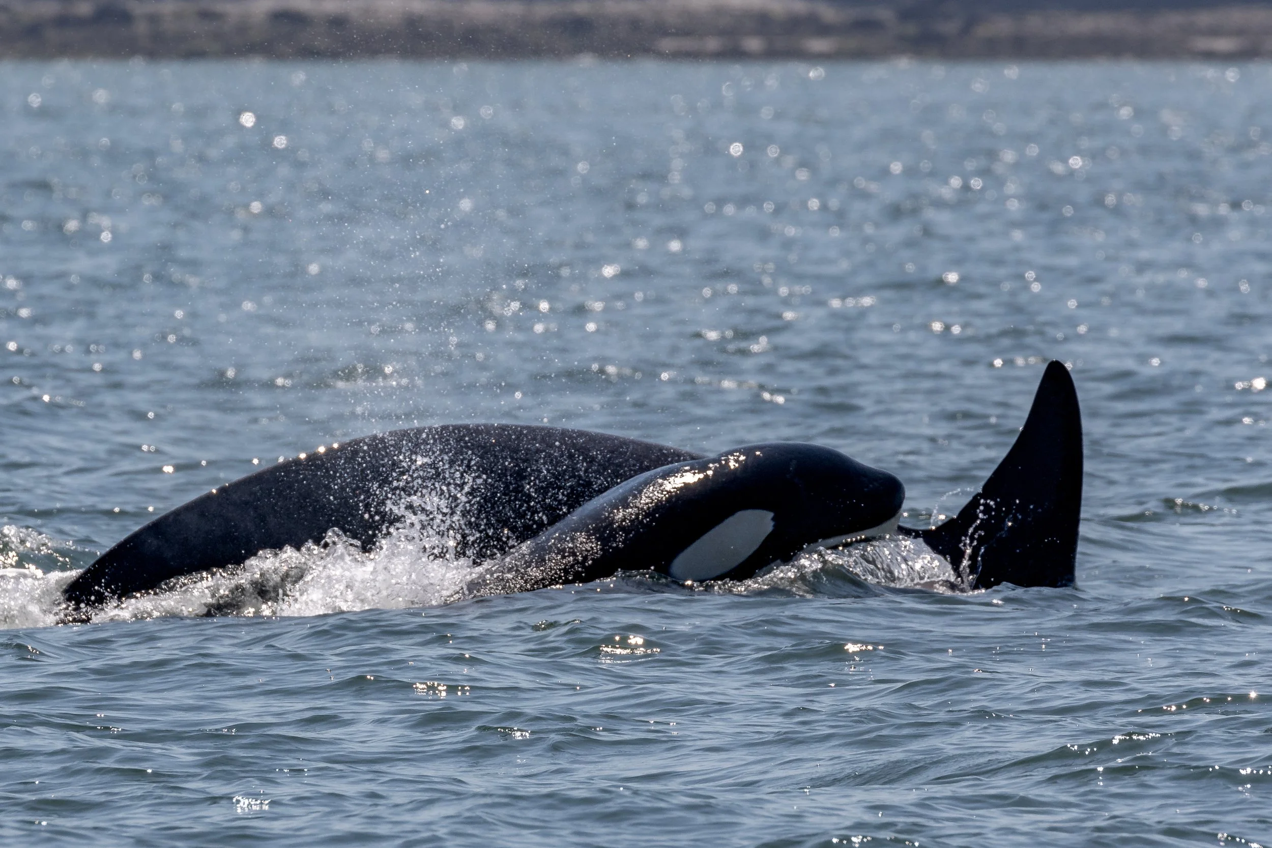 Orca matrilines are run by the matriarch and are comprised of her offspring. Today we encountered our matriarchs T124A2 Elkugu and T124A4 Sabio, along with their sister T124A1 Bonapartes teaching the young Orca some hunting techniques. It was thrilling to see such action in the pursuit of their favourite prey the Harbour Seal, usually most of the hunt happens under the surface, but today we got to see more than expected. Nature at its finest, the food chain on full display.