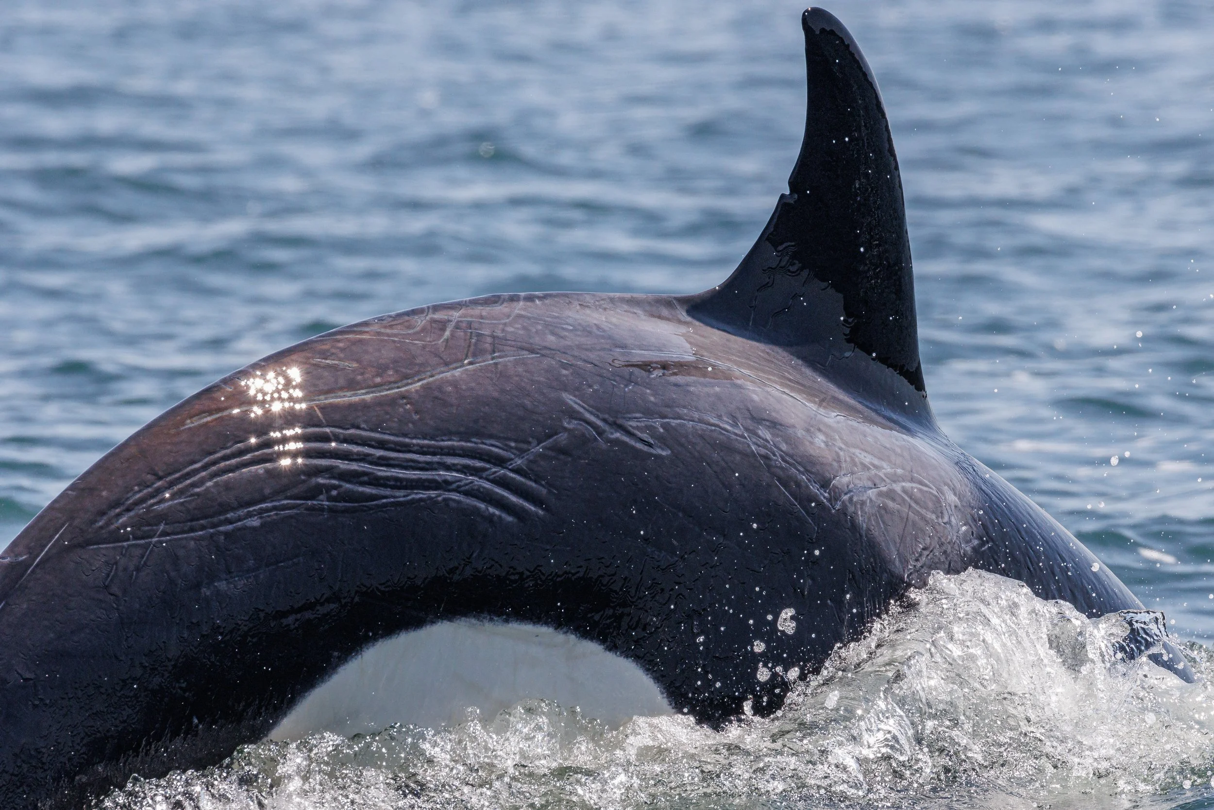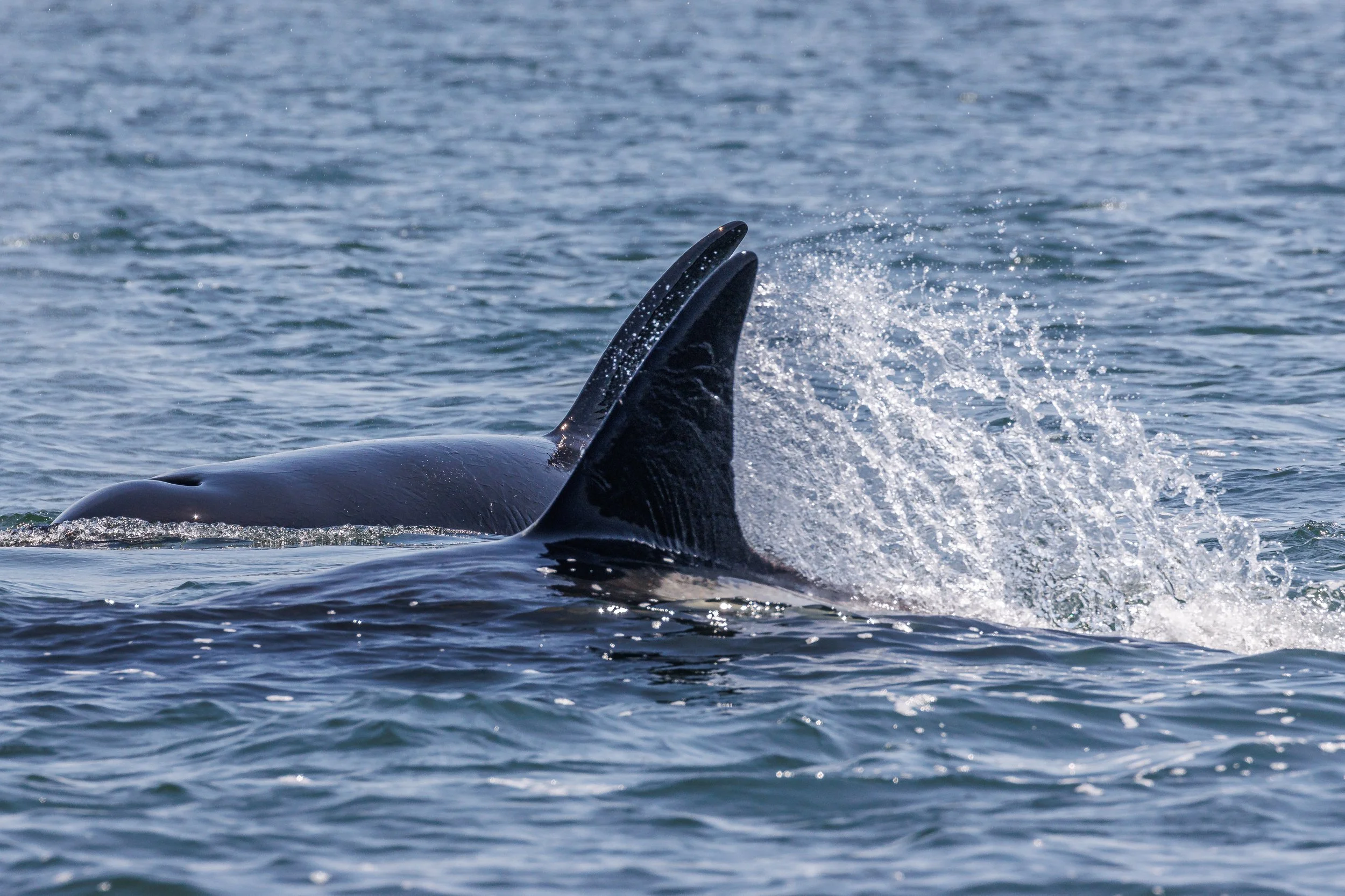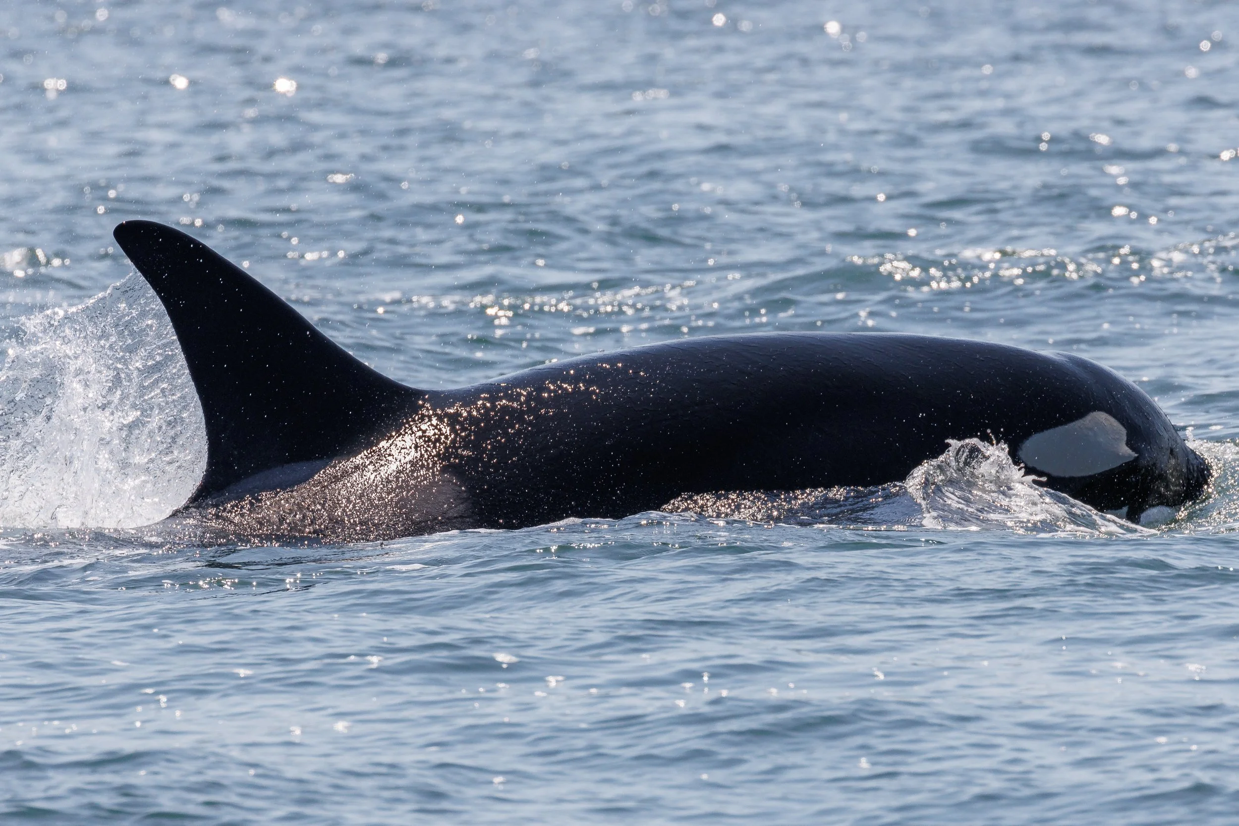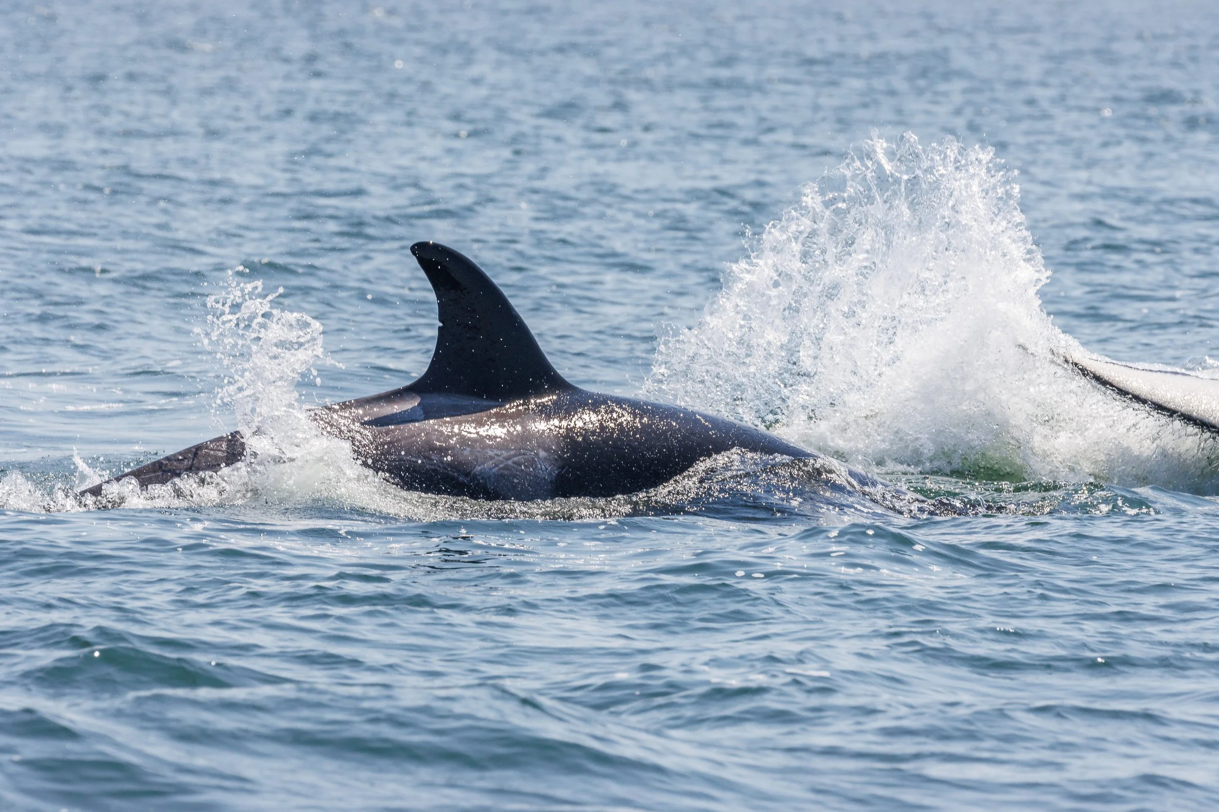 Orca matrilines are run by the matriarch and are comprised of her offspring. Today we encountered our matriarchs T124A2 Elkugu and T124A4 Sabio, along with their sister T124A1 Bonapartes teaching the young Orca some hunting techniques. It was thrilling to see such action in the pursuit of their favourite prey the Harbour Seal, usually most of the hunt happens under the surface, but today we got to see more than expected. Nature at its finest, the food chain on full display.