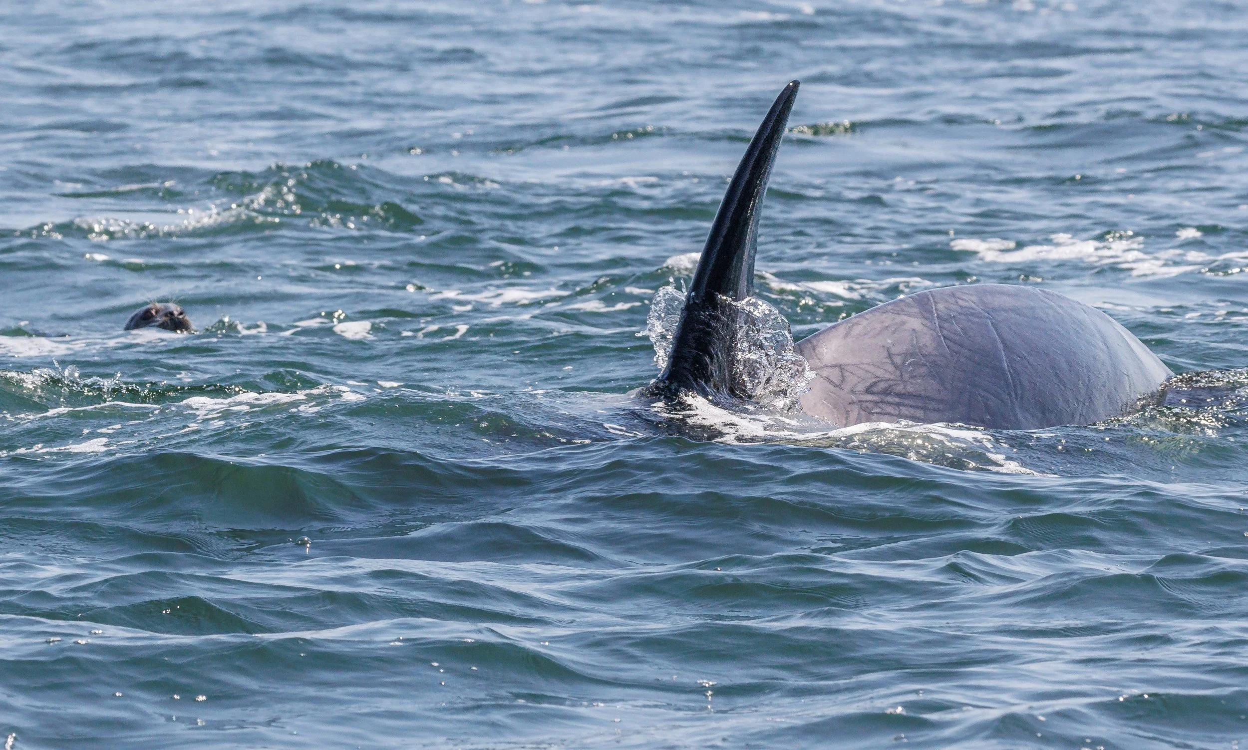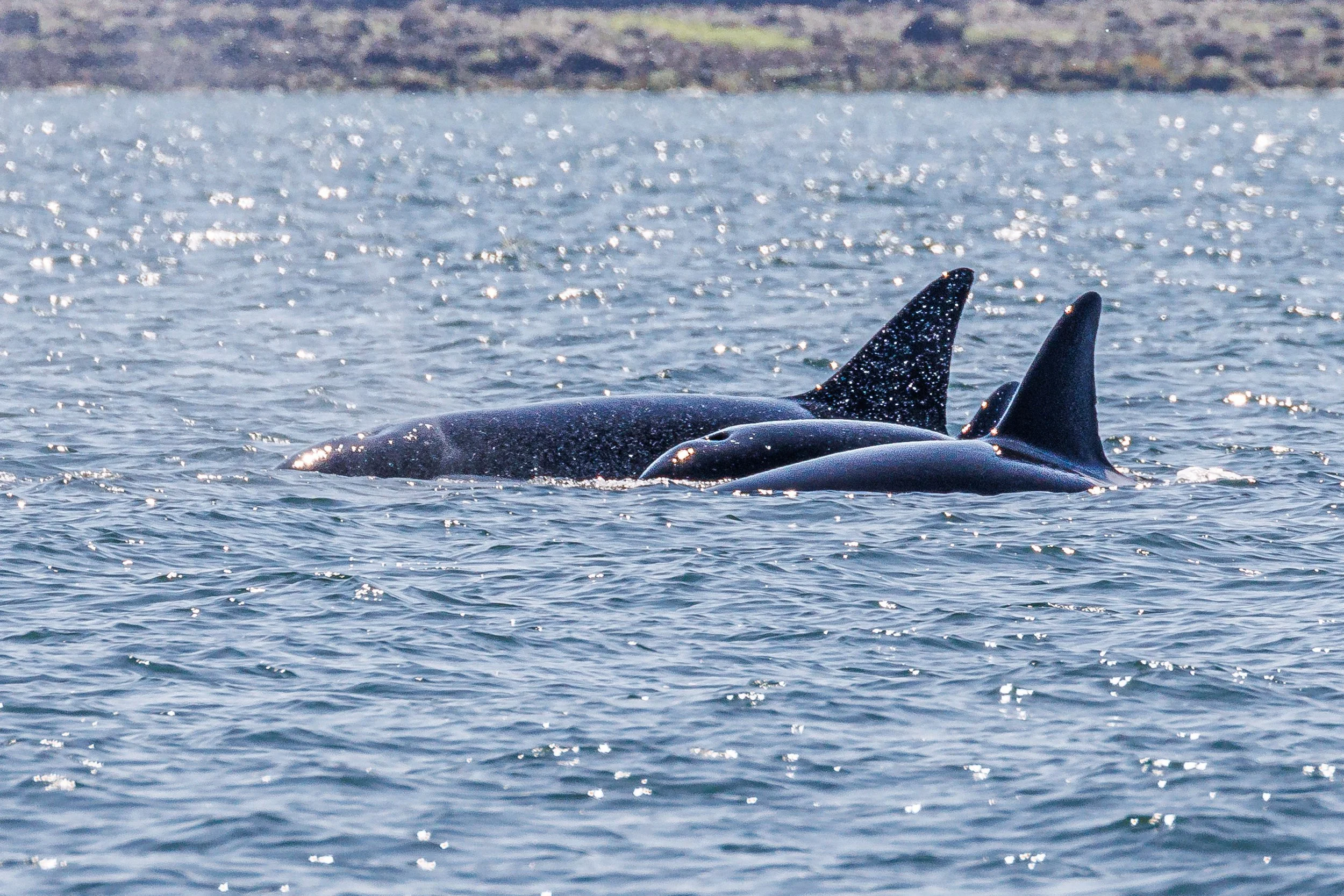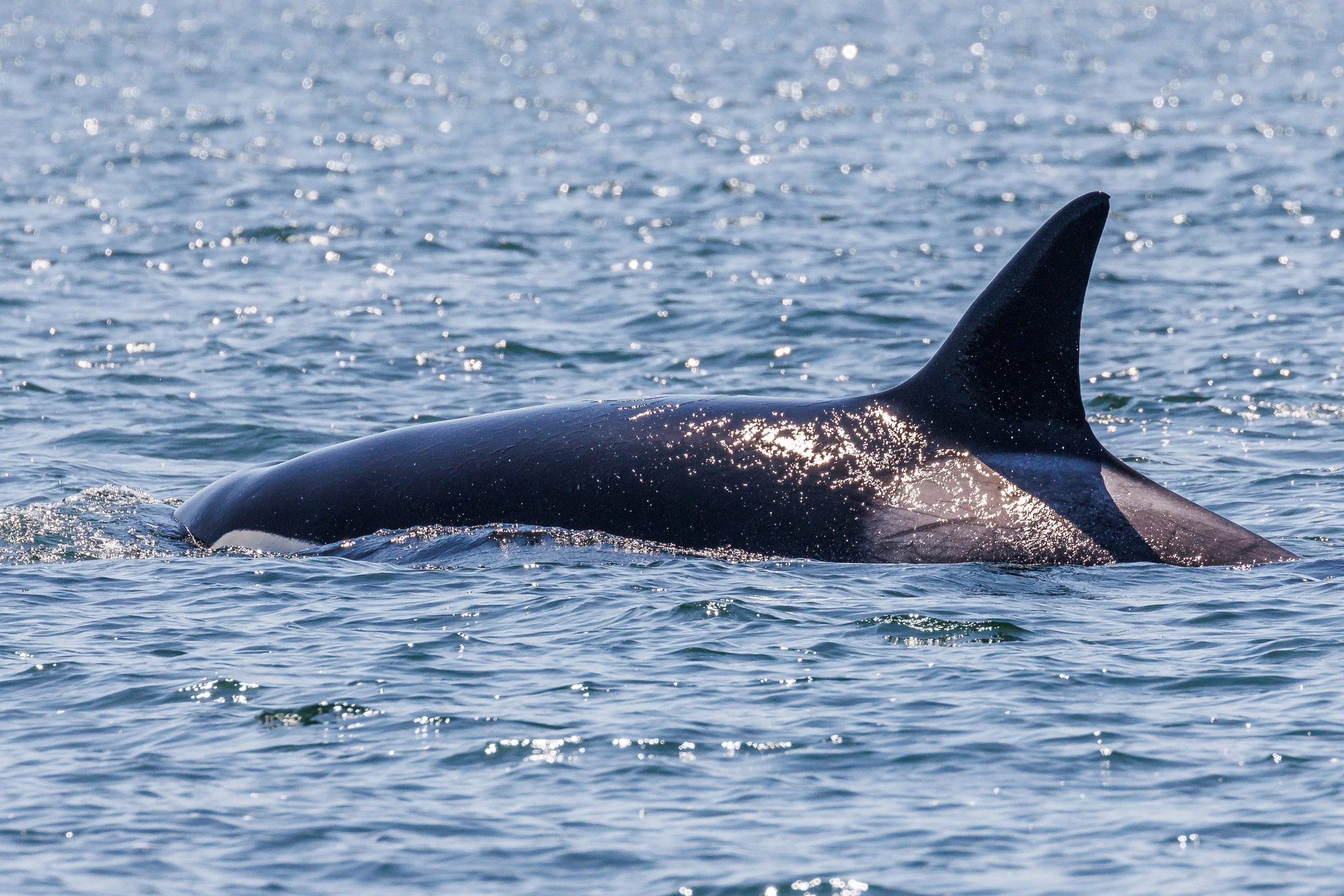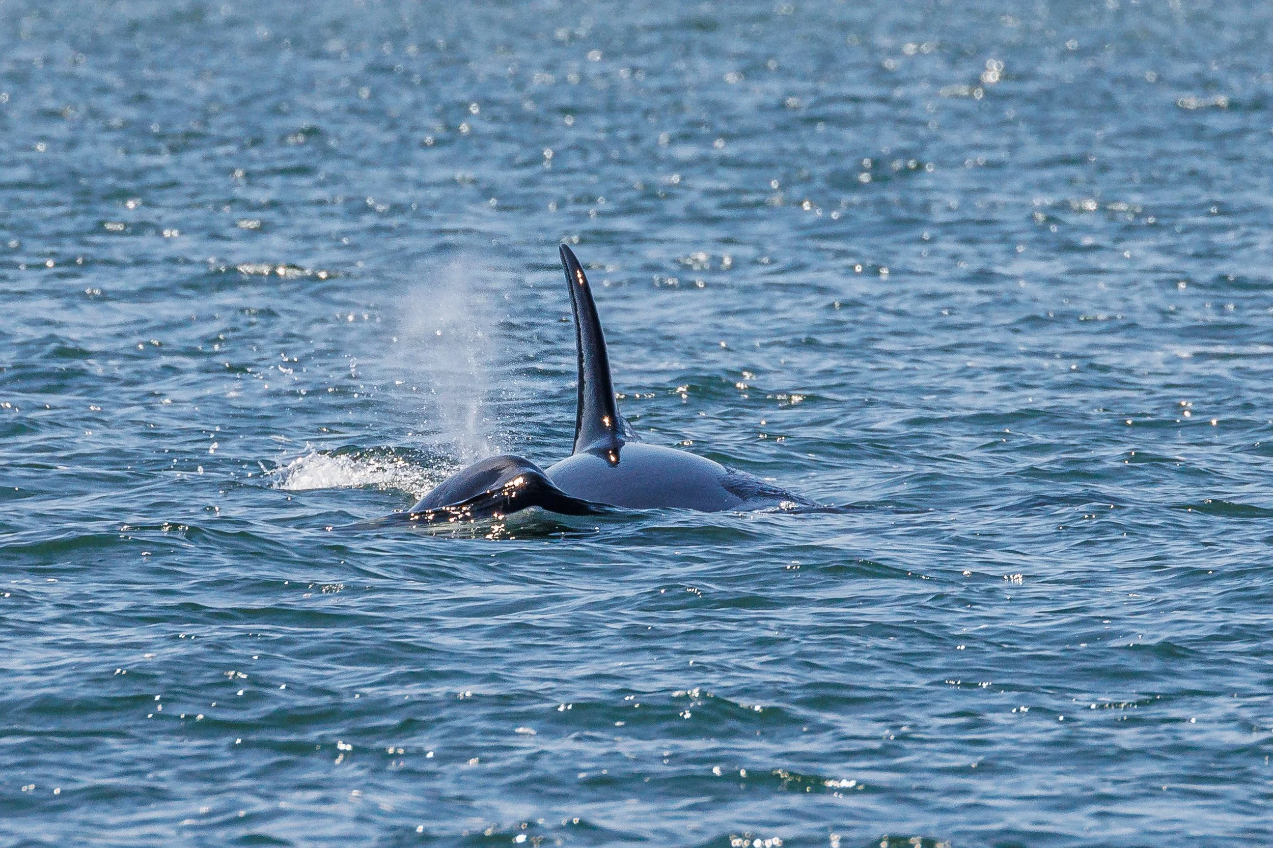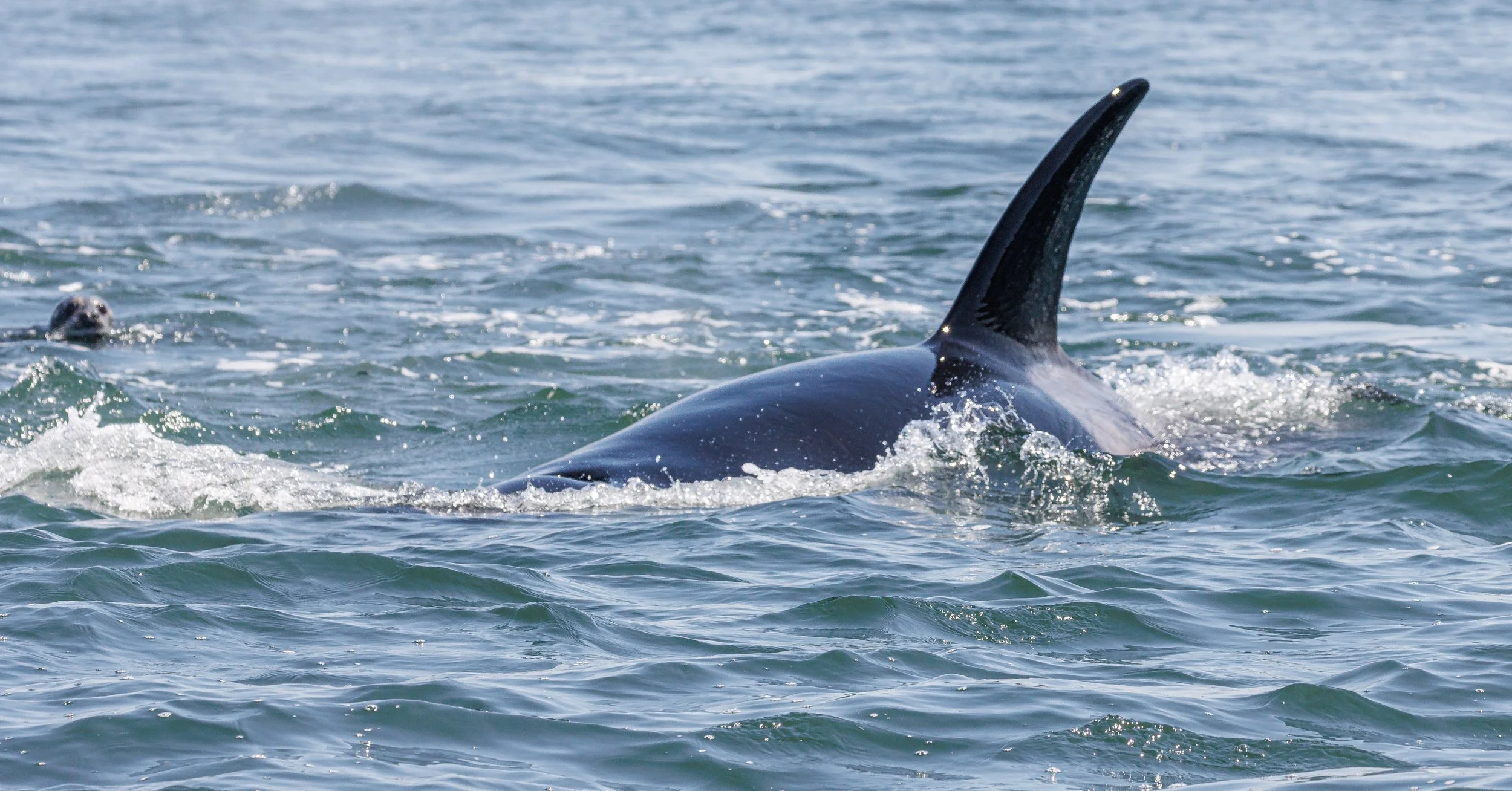 Can you spot the seal on the tip of this orca’s nose? Photo by Aly Kohlman.