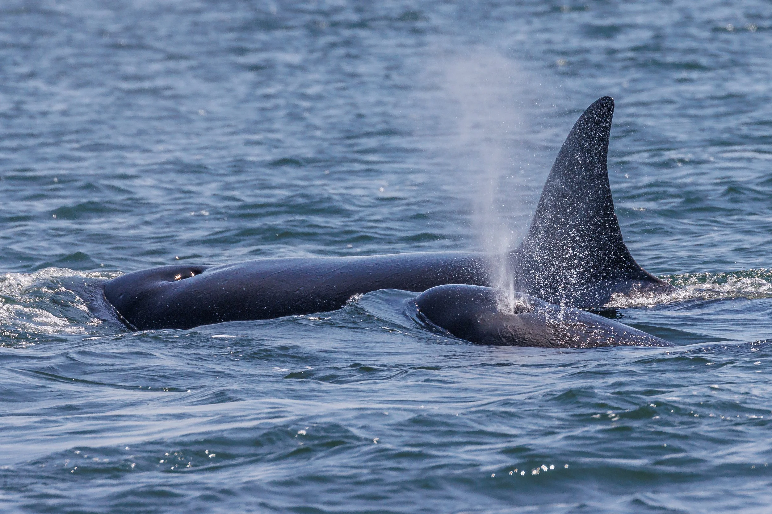 Sabio is an interesting Orca she has been seen travelling with different matrilines frequently away from her own mother 124A Kittiwake. This however is not that strange, it is speculated that she is on her way to becoming her own matriarch, and we expect to see her leading her own matraline in the future. This is how new matrilines are formed, once a female has birthed a few calves of her own (in Sabios’ case just the one so far). They then decide their matriline is getting a bit crowded and they will branch off just as we are documenting what Sabio and her calf have been doing to form their new matriline! It’ll be exciting to see if T124A2B Litton may do just this with calves of her own in the future! Keep an eye on our blogs to find out.