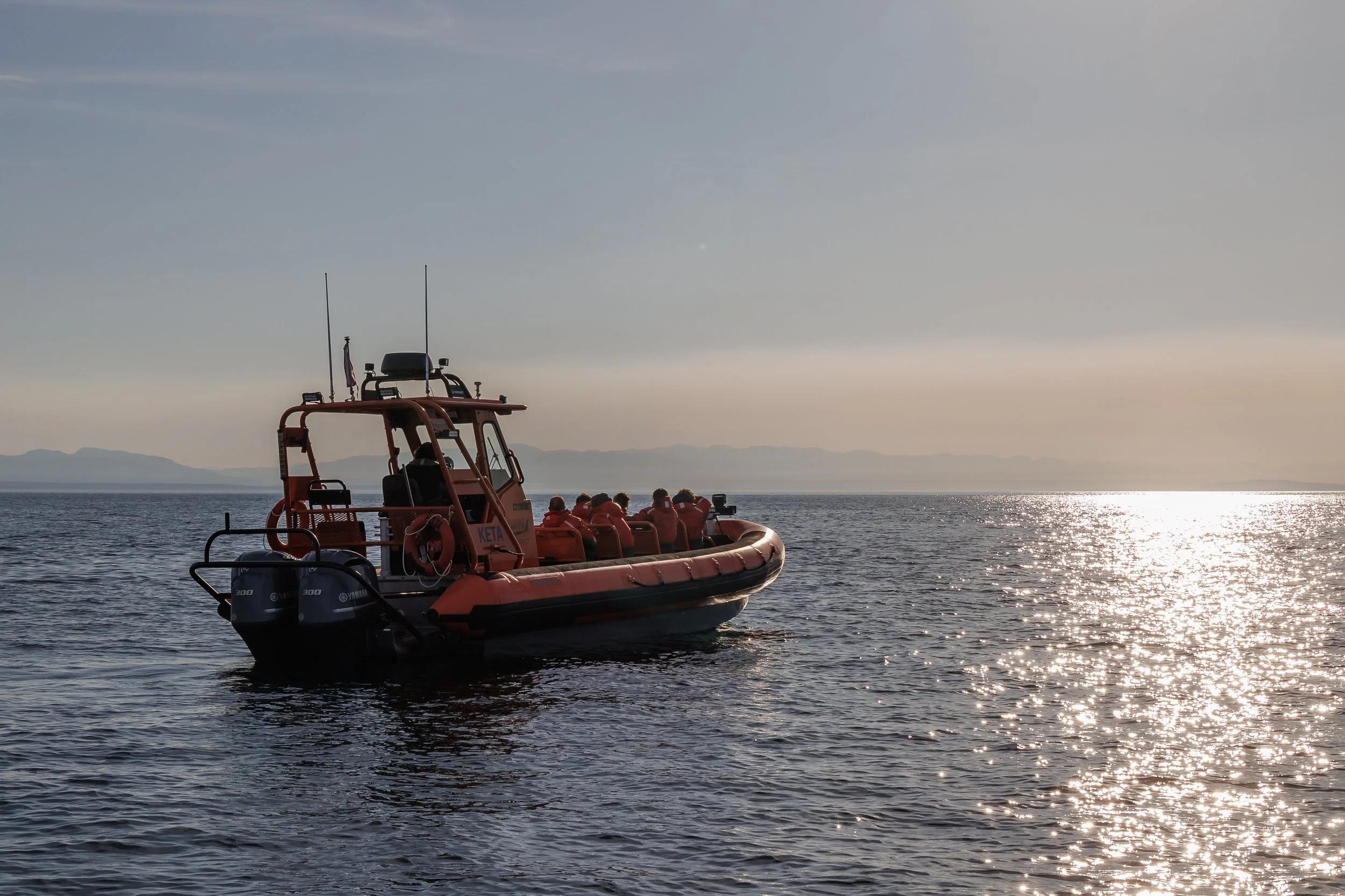 After we departed our Humpbacks we continued our journey homeward bound. We cruised down the Vancouver Island coastline and back into the Nanaimo Harbour, the setting sun casting a beautiful orange glow over the harbour as we docked.
