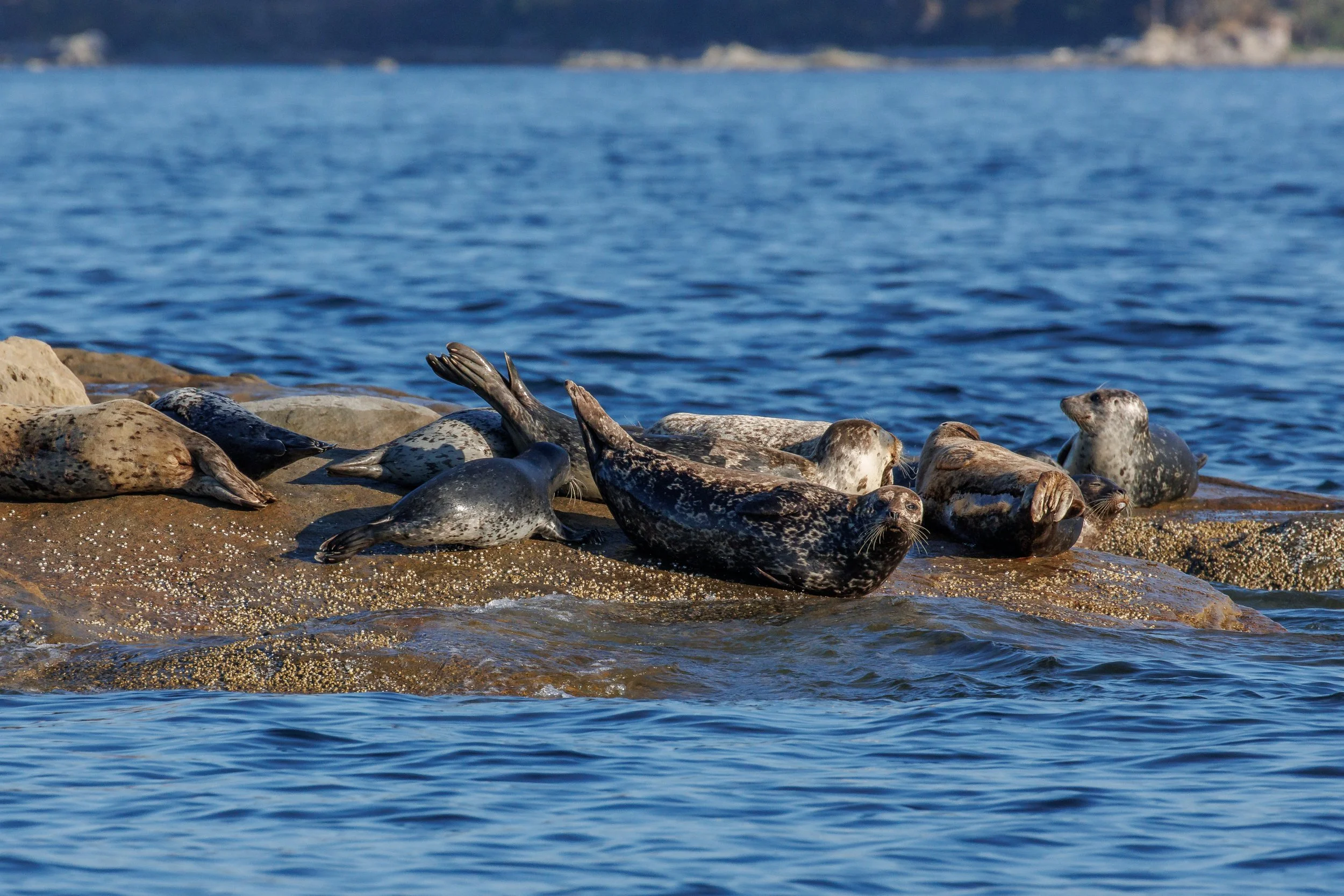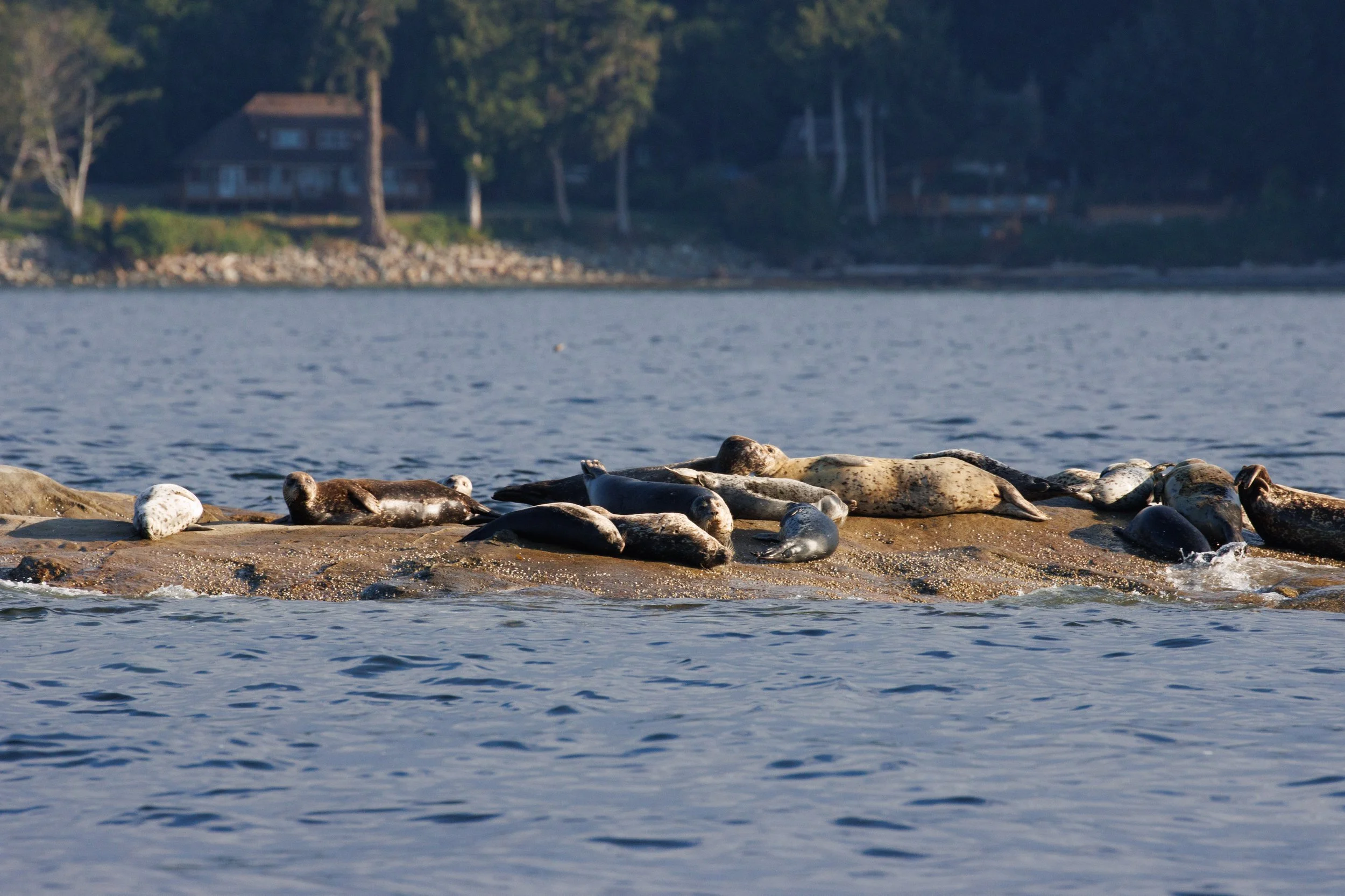 Some harbour seals hauled out on the rocks. Photo by Val Watson.