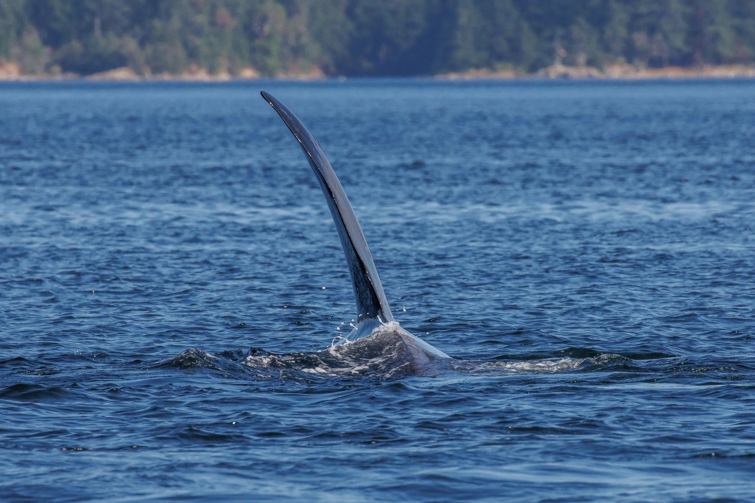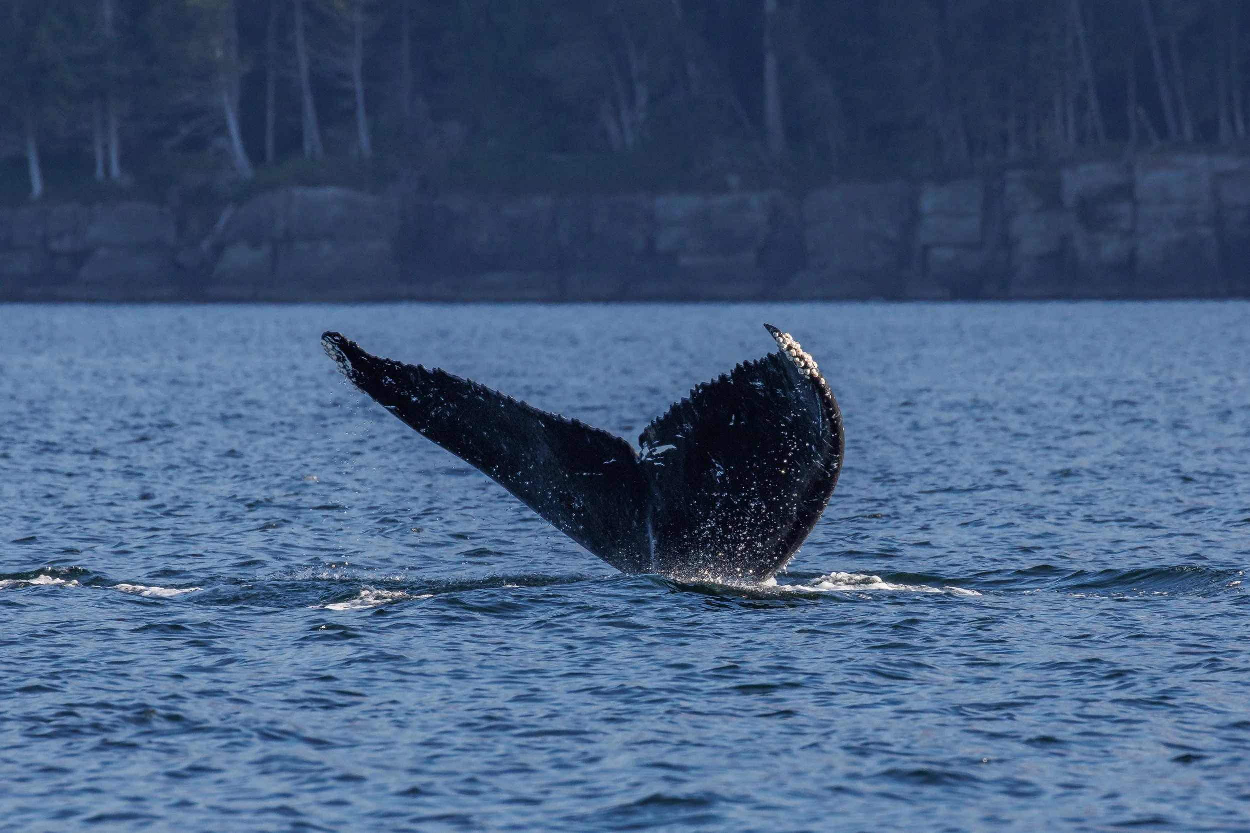 Later on in the afternoon, we spent time with Europa (BCX0854), her 2023 calf, Nuage/Beak (BCX1606), and Sherwina (BCY0961)! We saw a lot of low and high fluking dives which allowed us to get some good fluke photos! Did you know that every single humpback we have in British Columbia we can individually identify based on the bottom of their tails and their dorsal fins? The coloration on the underside of their tail is completely unique to each whale! You can clearly see the difference in fluke colouration with each of the humpback whales that we saw today.