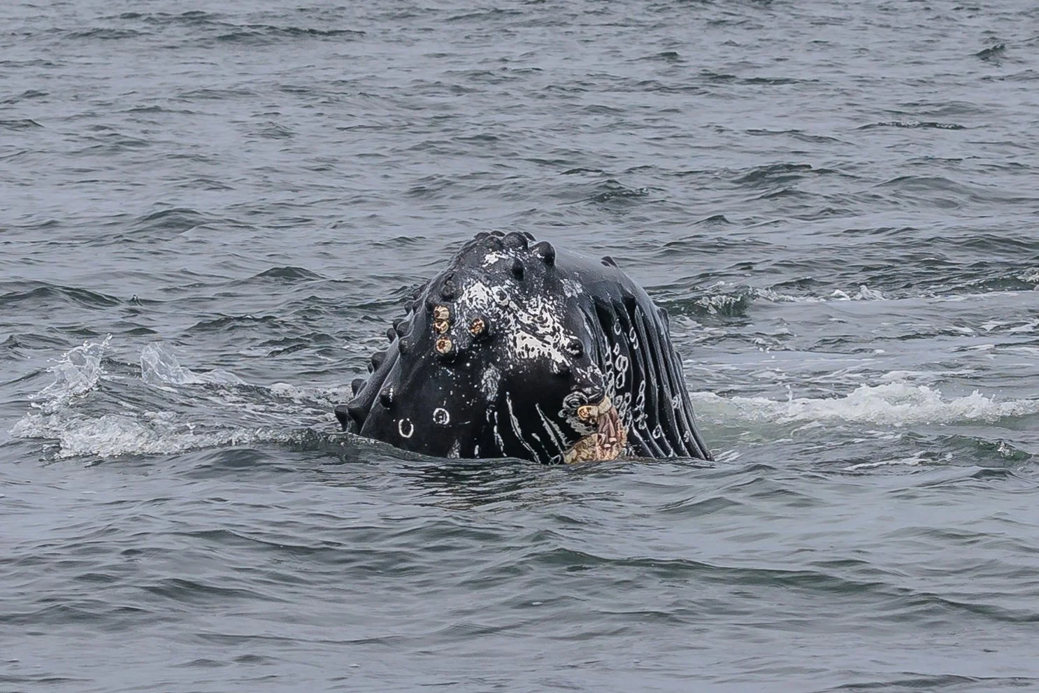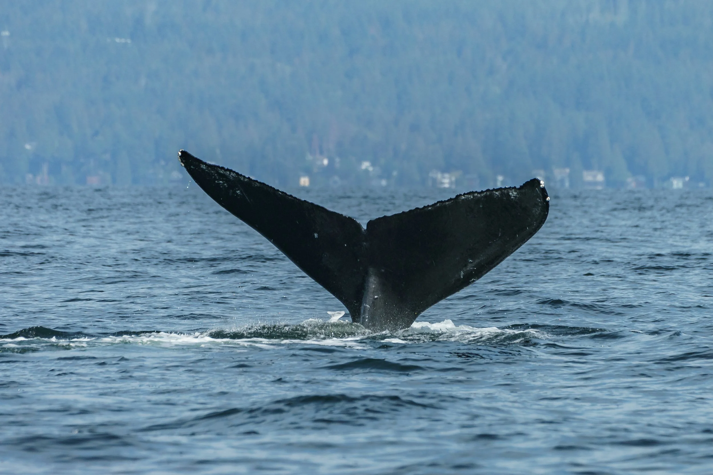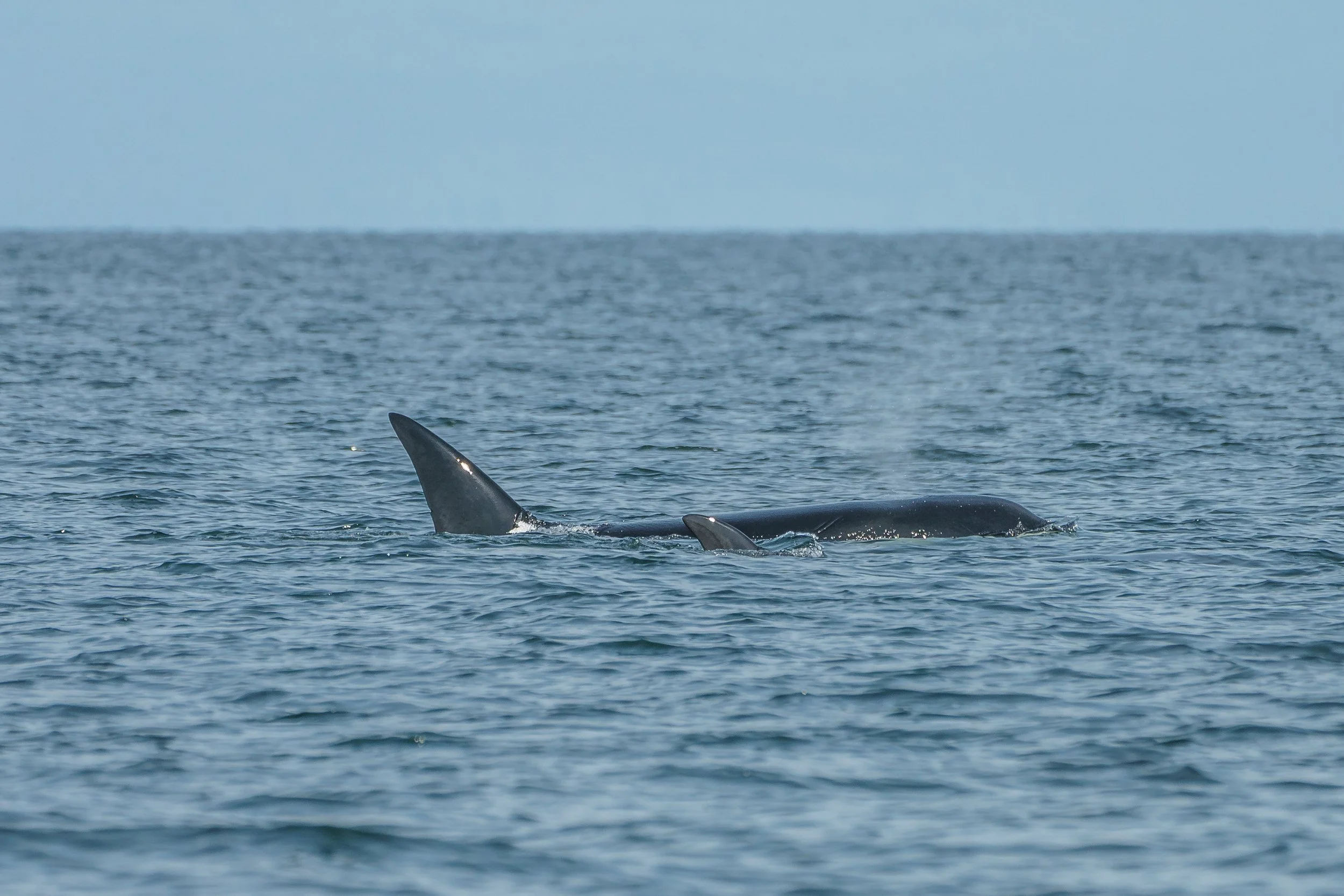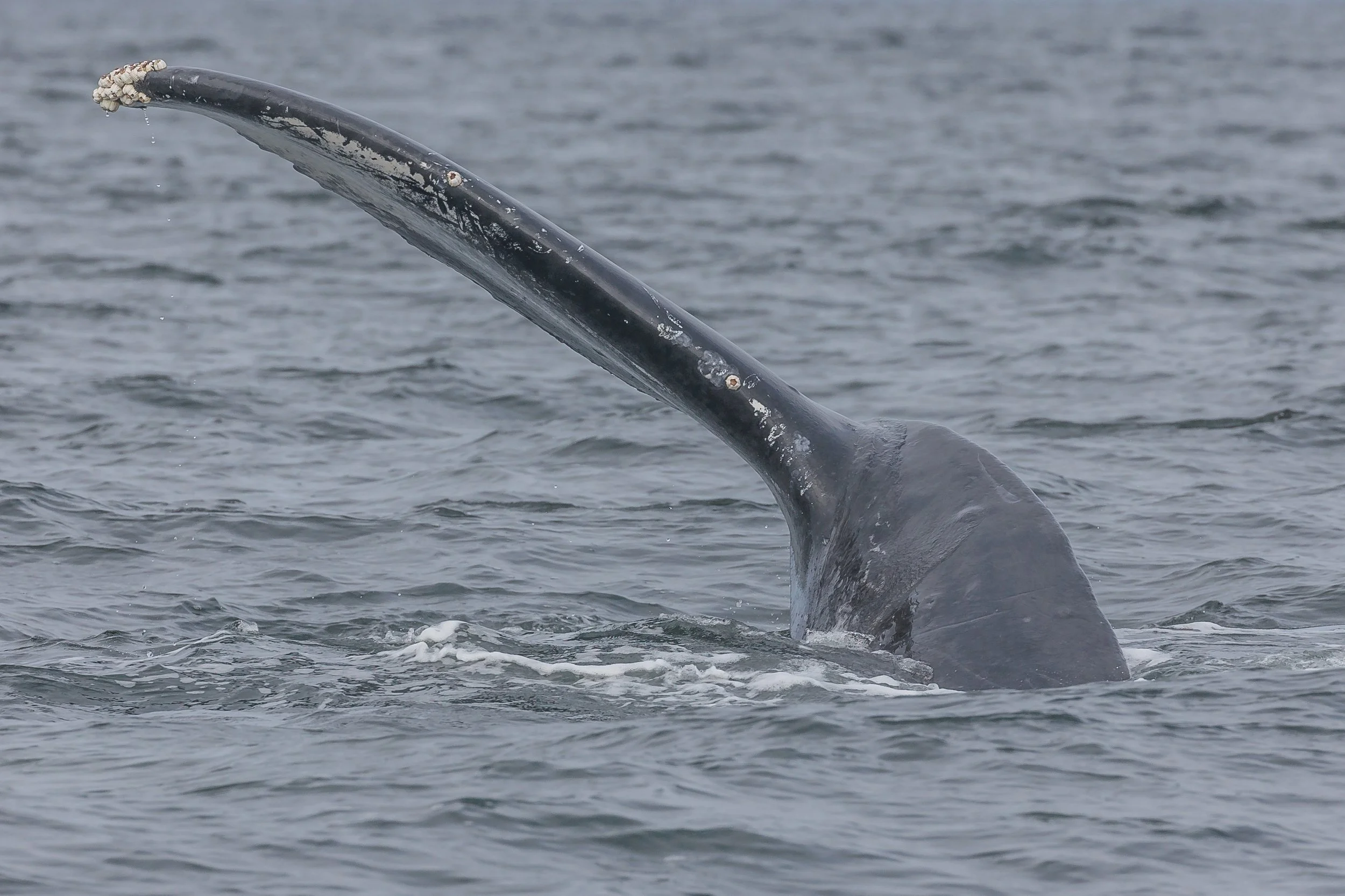 One of our whales rolled, lifting half of their fluke out of the water. Photo by Vanessa Vereschahen.