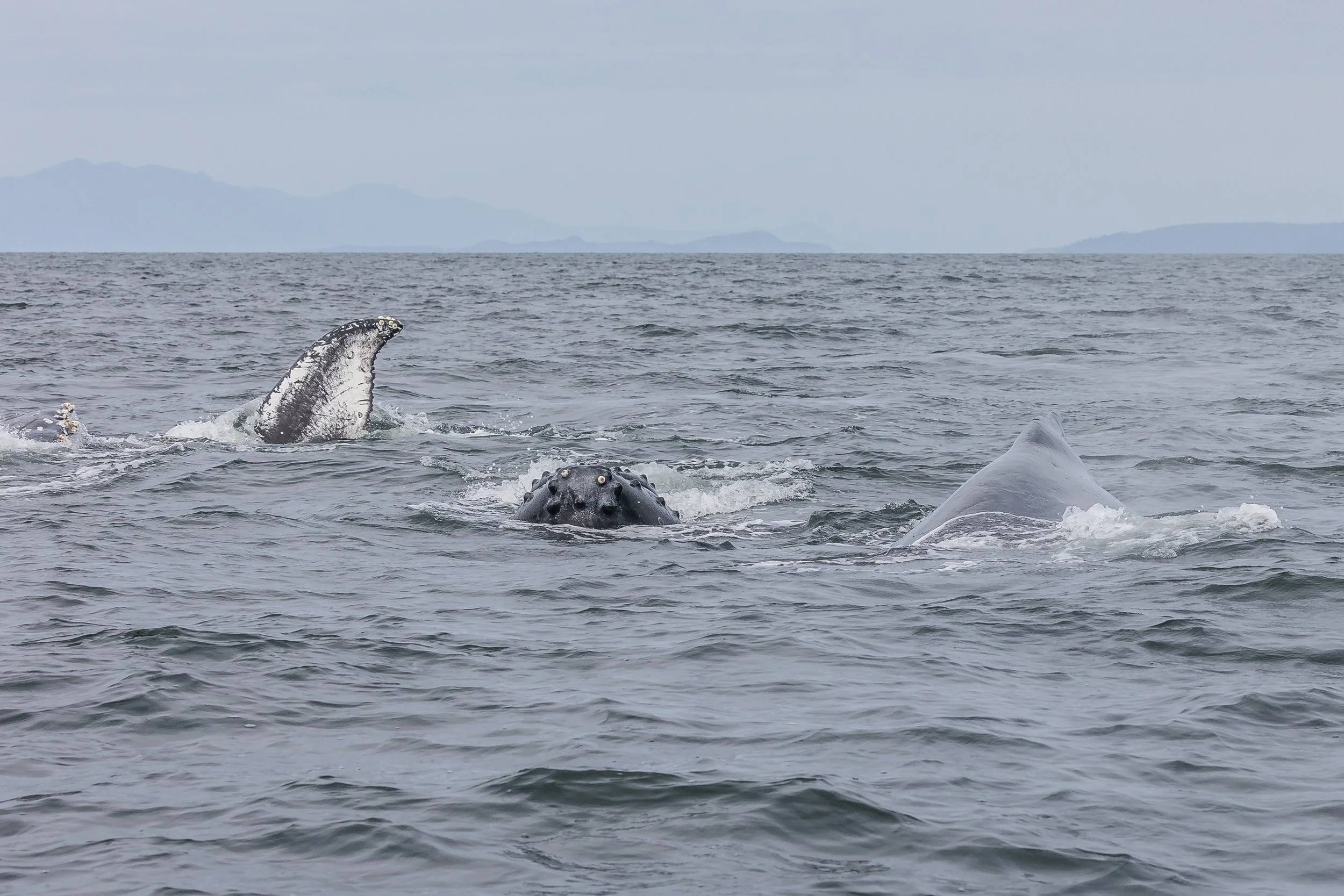 A pectoral fins rises amongst the humpback party. Photo by Vanessa Vereschahen.