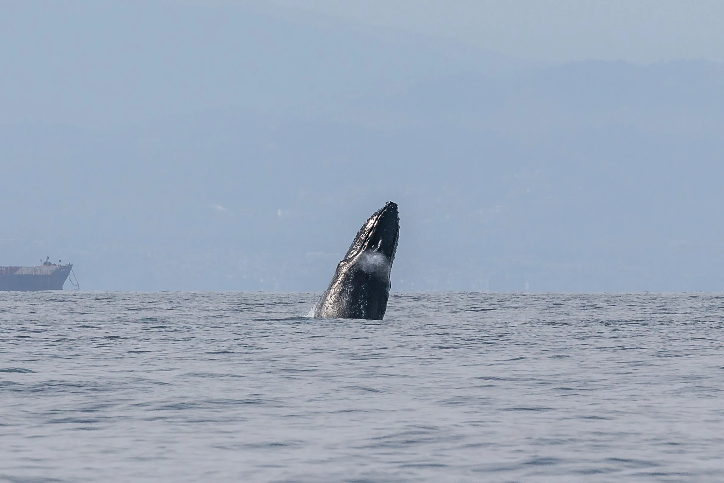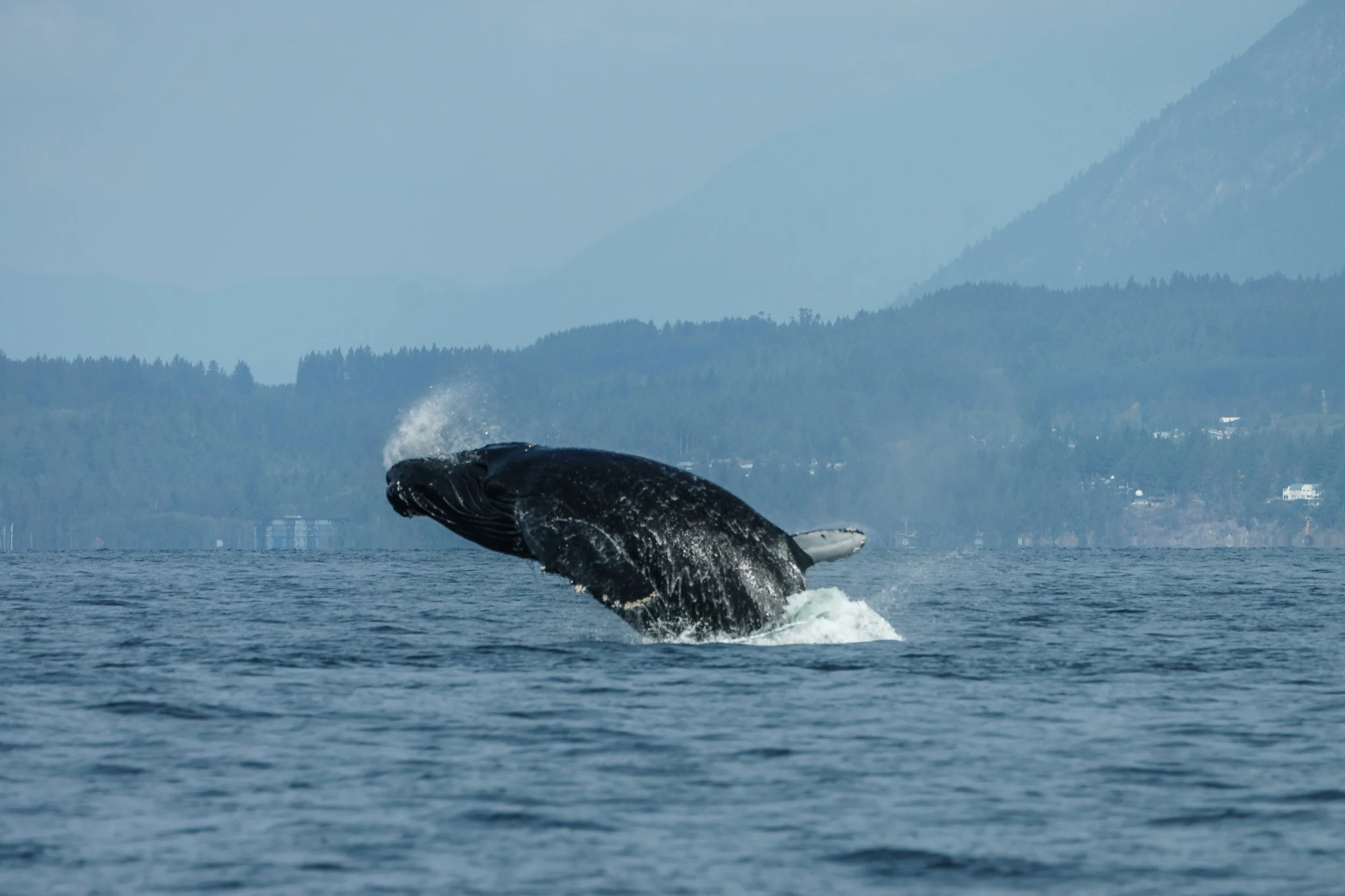 Yogi breaching in the distance. Photo by Vanessa Vereschahen.