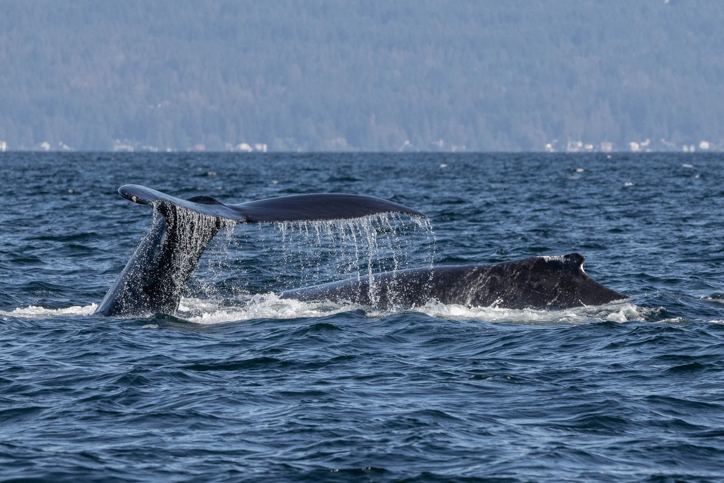 Chinook giving a fluke waterfall. Photo by Vanessa Vereschahen.