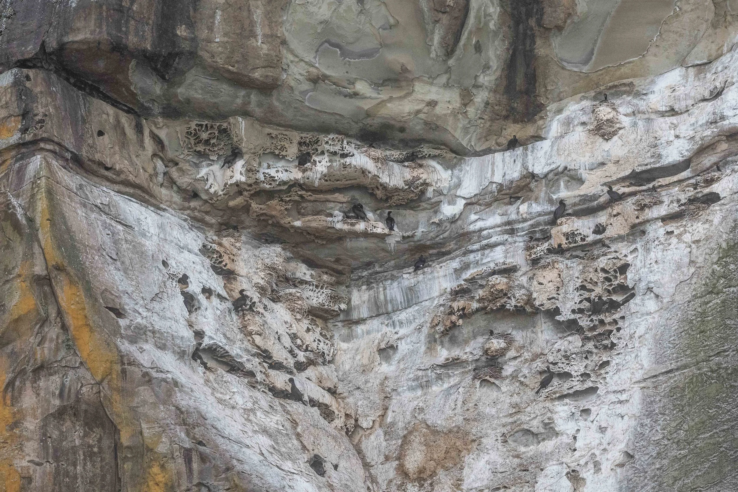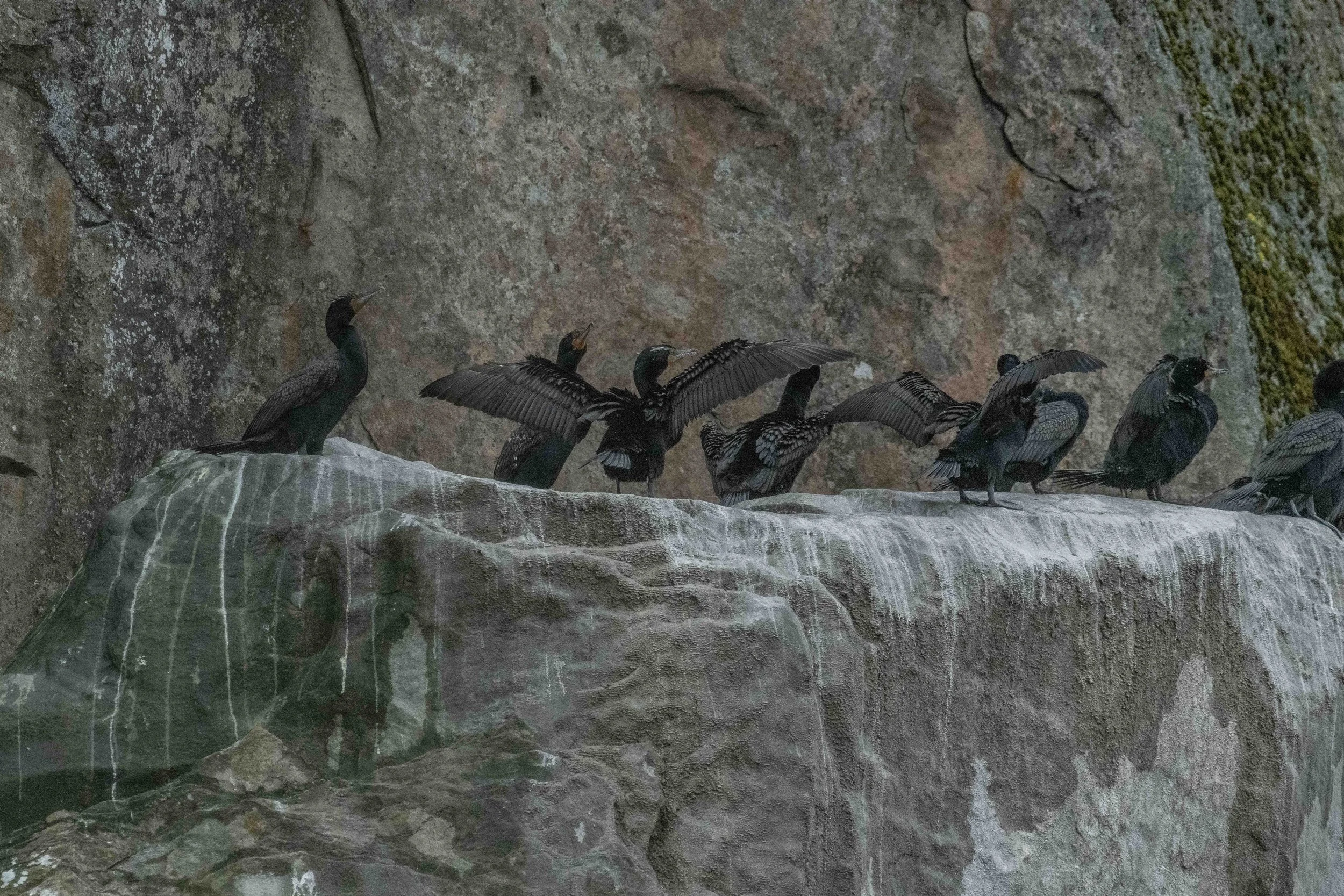 Cormorants clutching onto the Gabriola Bluffs. Photo by Des Poier.