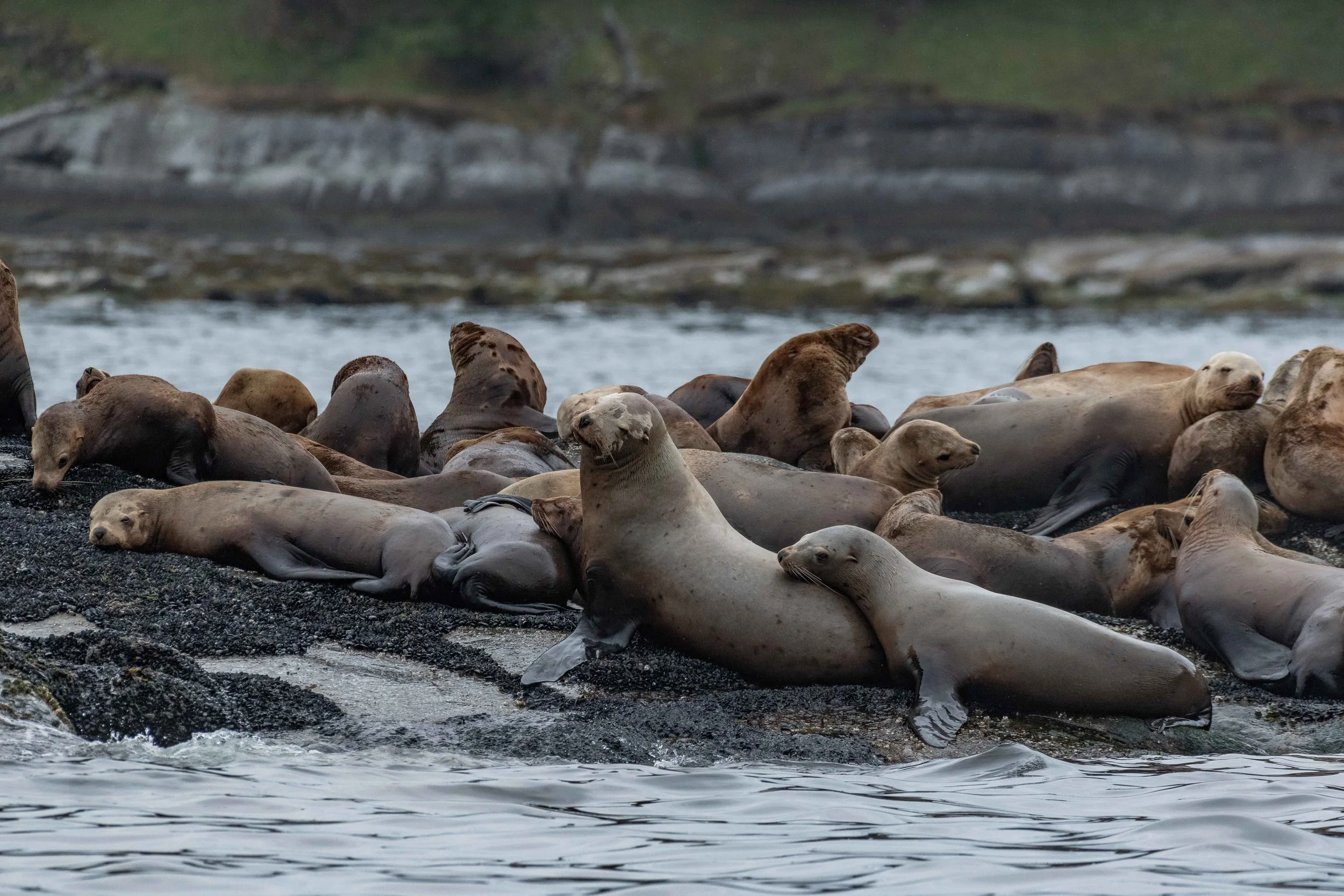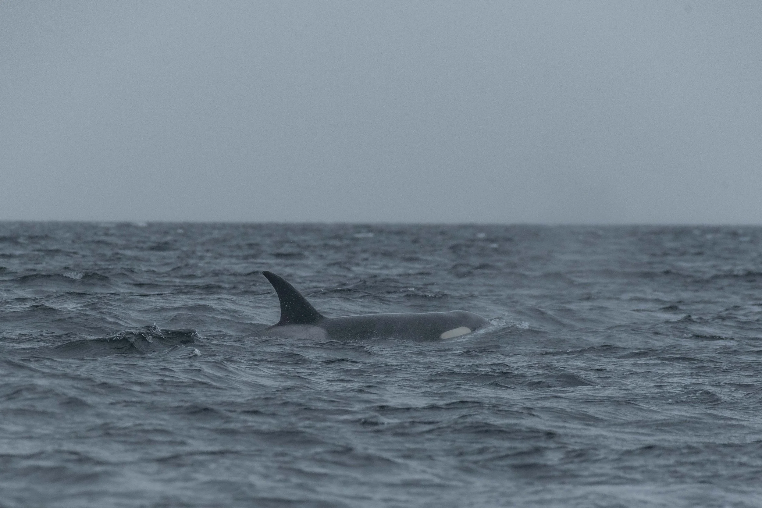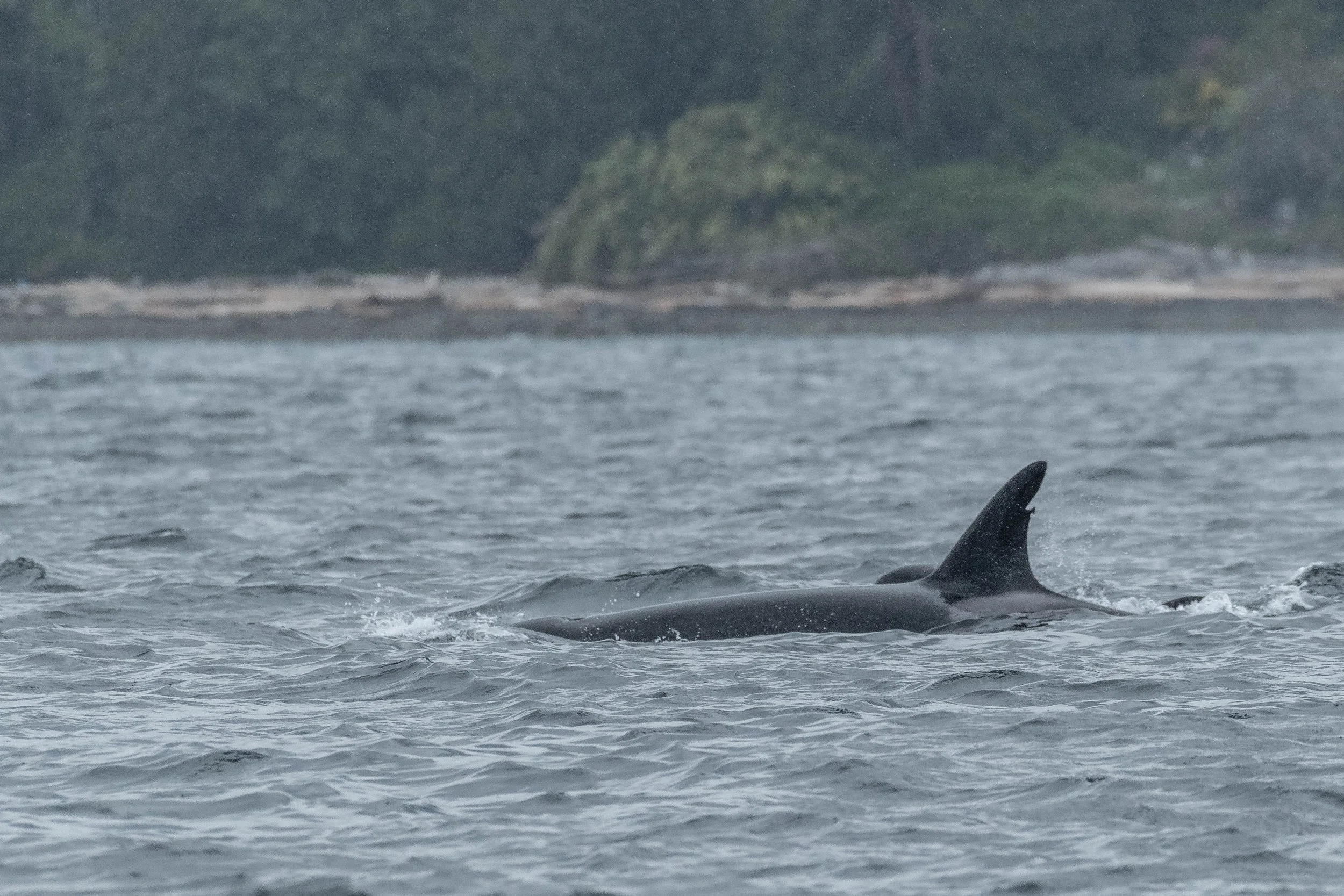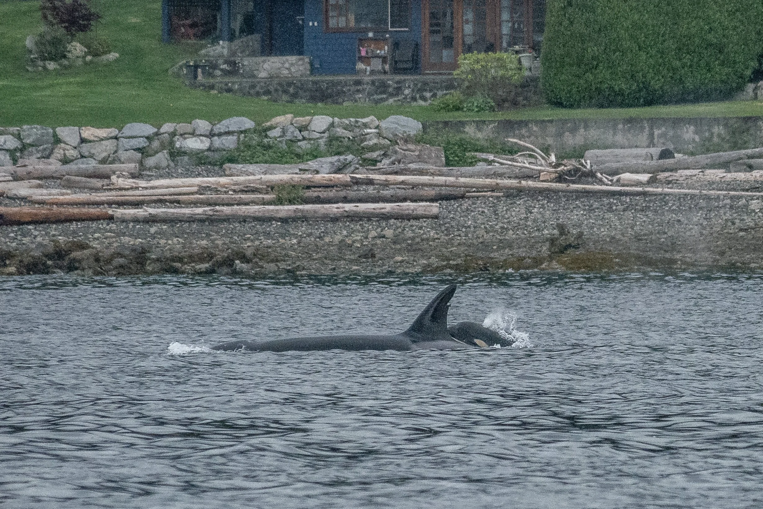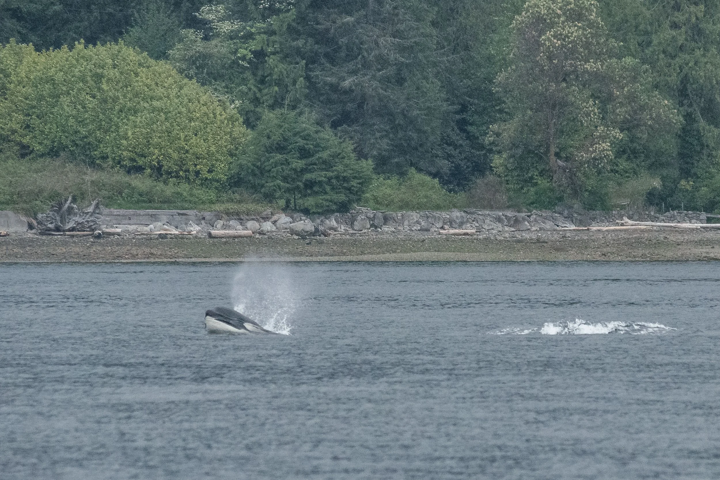 Today these whales were a little sleepy, travelling slowly through the sound with just the youngster showing off once in a while. Our orca do what is called Unihemispheric Sleep, meaning that they only turn off half of their brains at a time to rest. Orca and other whales have to think about opening their blowholes to breathe, so if they turned it off for 8 hours of rest they would end up suffocating. Resting half at a time allows them to continue their everyday activities at a slower pace while getting some much-needed rest at the same time.