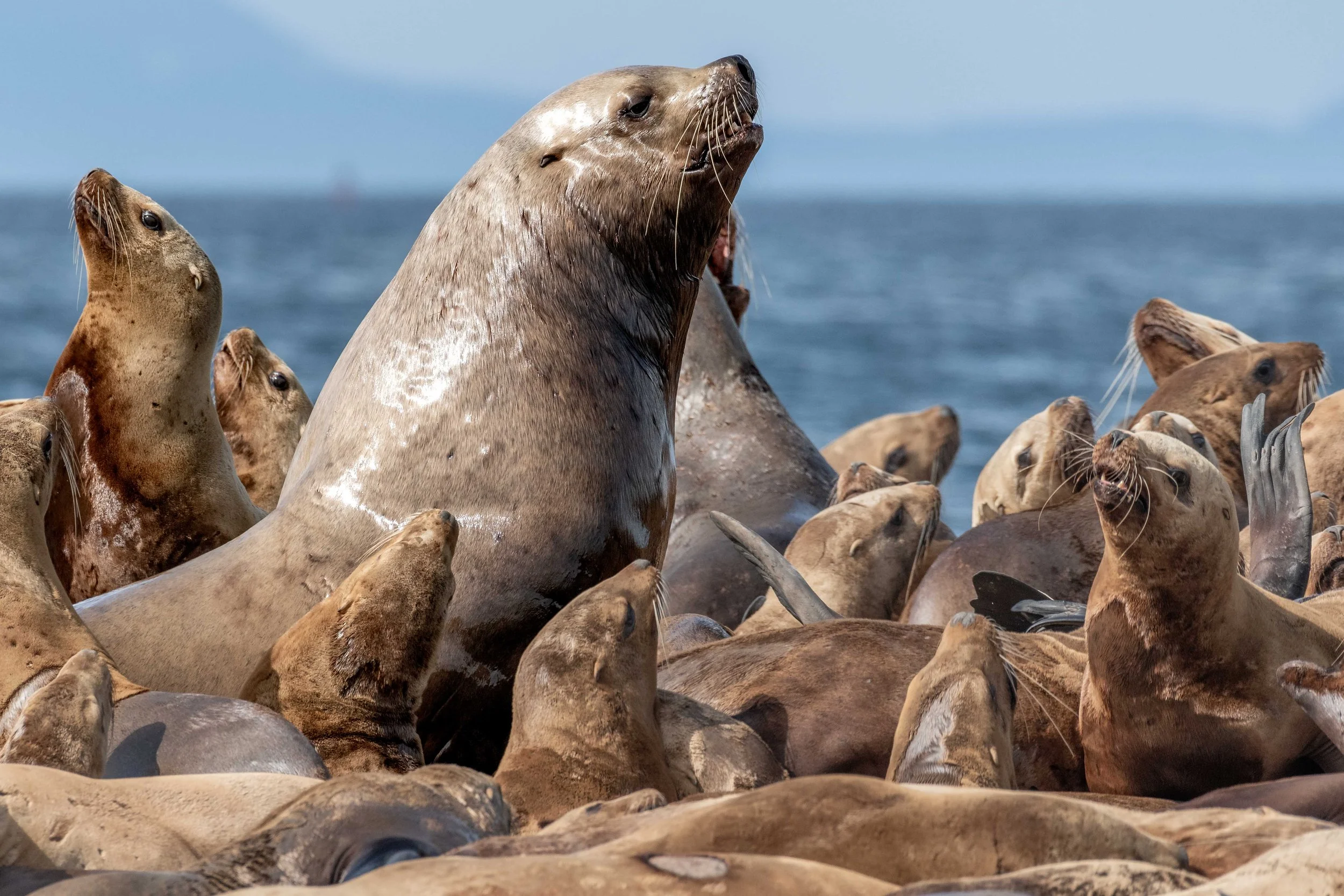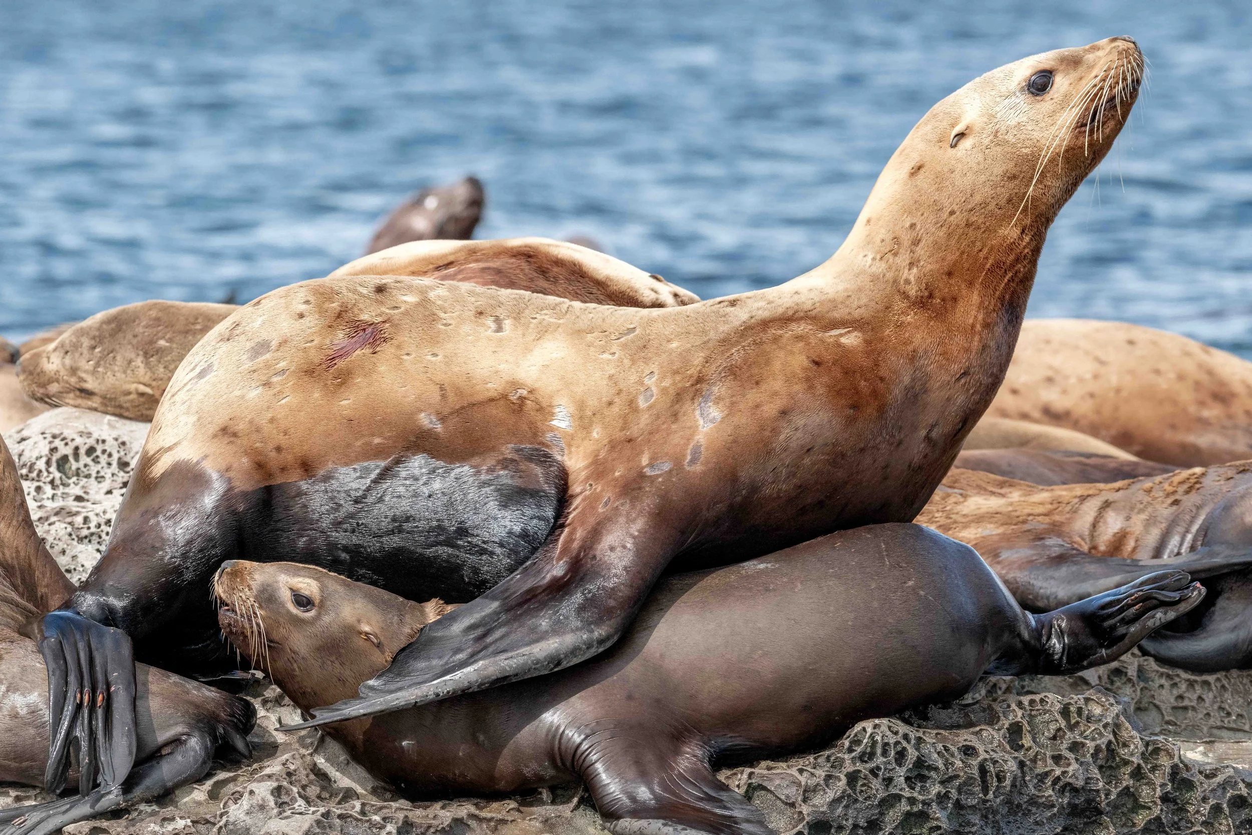 The size difference between mature male Steller sea lions and younger sea lions is astounding! Photo by Aly Kohlman, 3:30 PM tour.