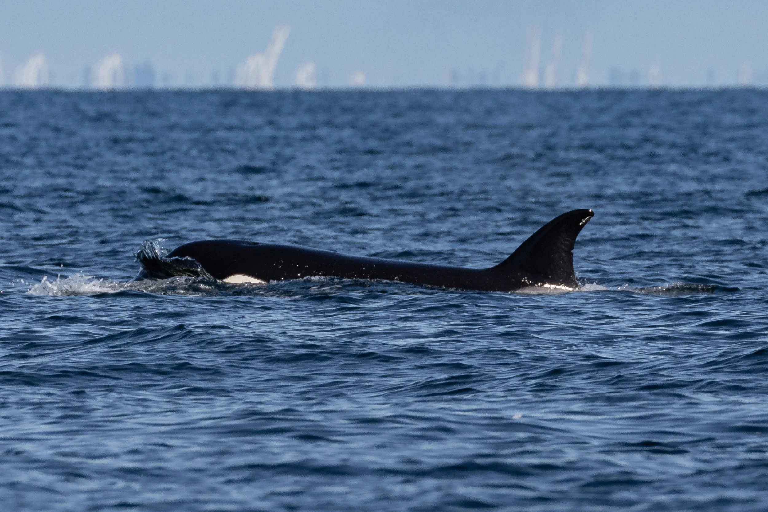 We were graced with another beautiful day as we set out in search of some whales. After some time on the water, we found the T124A2’s a company favourite and family we know very well. Elkugu is the matriarch of this small group and she travels with her 2 children Agafia and Litton. Being a well-known family doesn’t mean that they spend all their time in the Nanaimo area. Orca have vast ranges and with or Transient/Bigg’s killer whales they can be found anywhere from Alaska to California. This family recently showed us just how far-ranging they were when they were recorded in Telegraph Cove on a Sunday and then 2 days later on Tuesday were once again recorded but this time in Vancouver. This means that in less than 48 hours this family traveled over 340 km. This of course does not account for any of the additional movements for hunting and socializing! The T124As are the following whales: