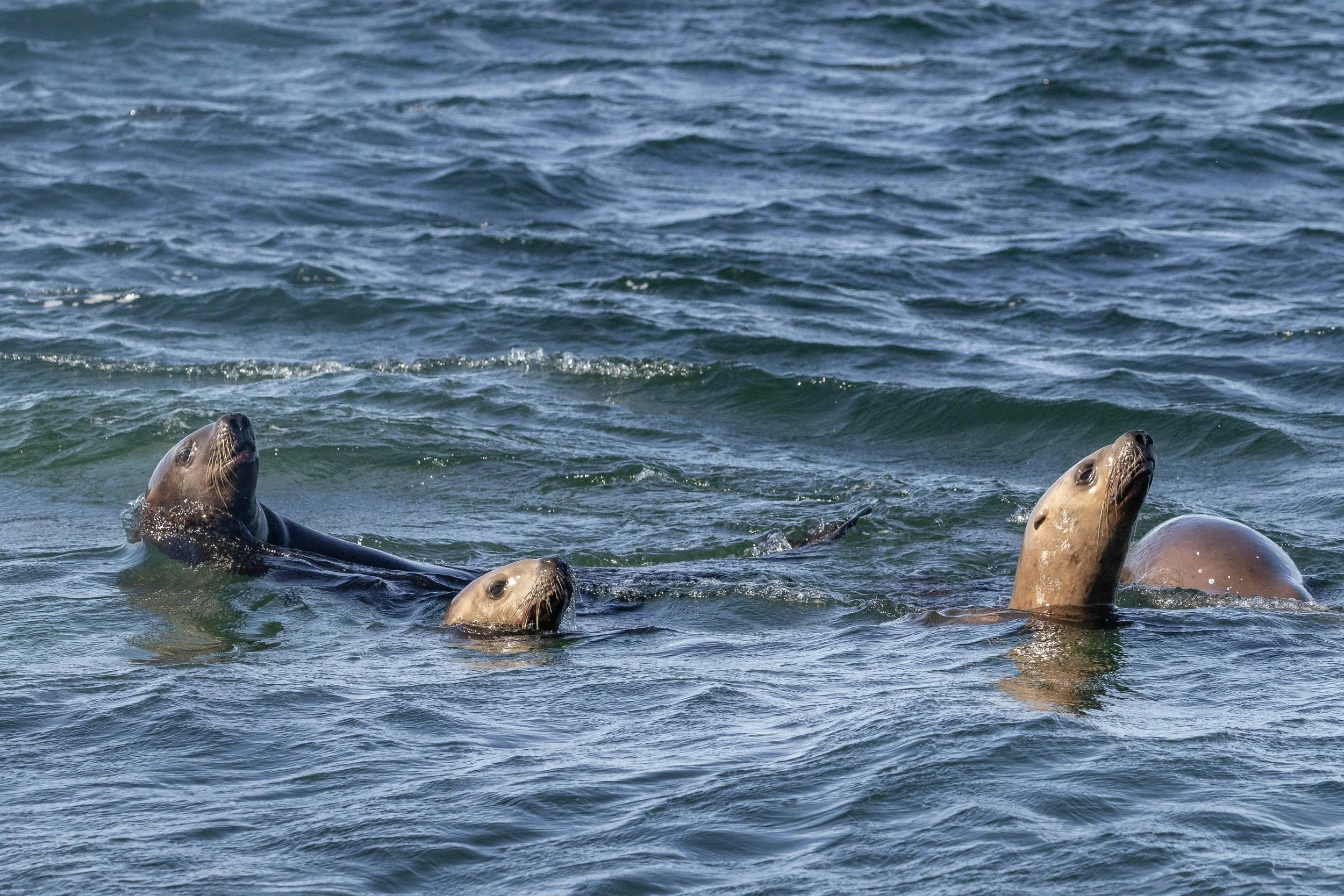 Steller Sea Lions deciding if our boat was worth worrying about. Photo by Lucy Willis.