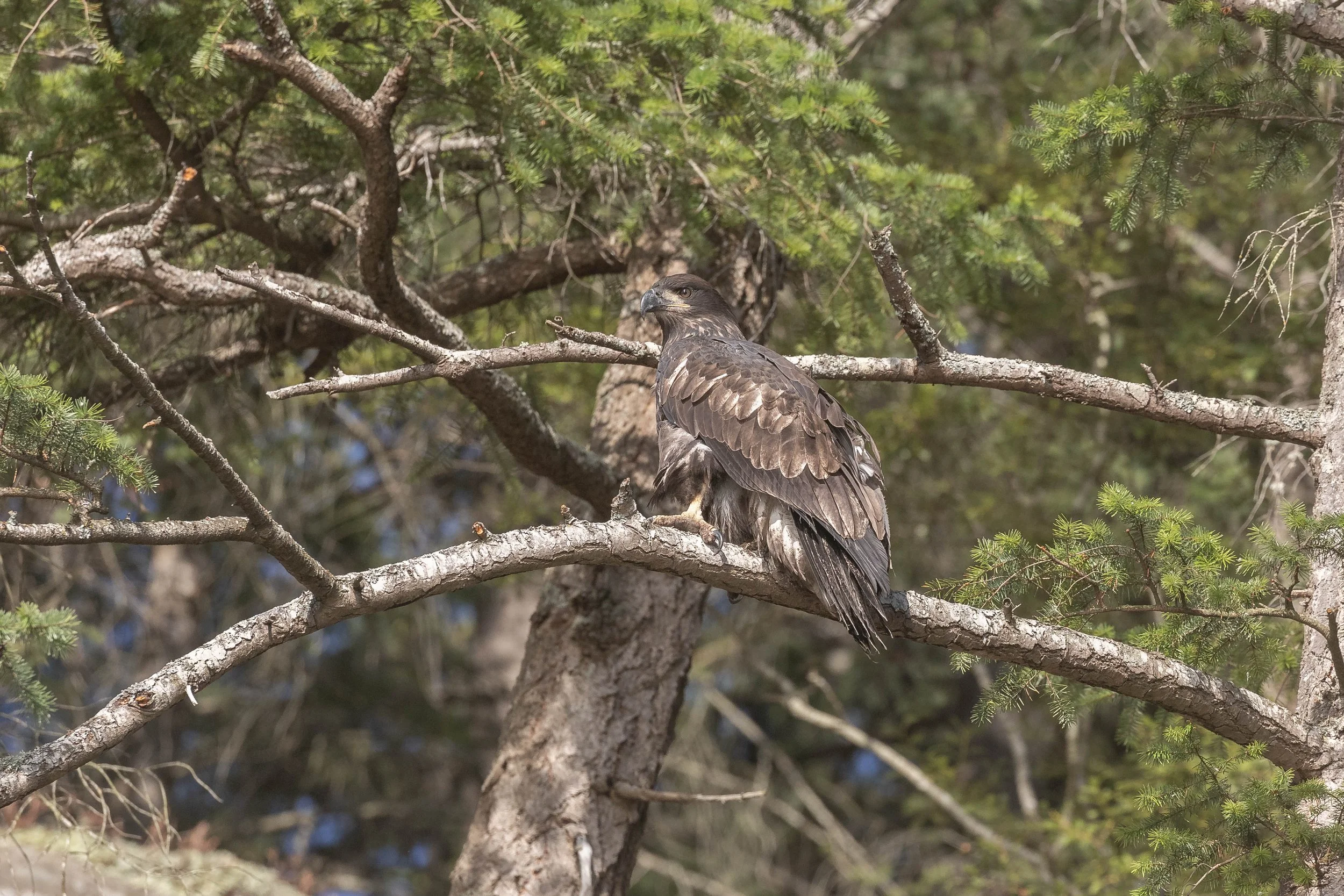 One of the adult bald eagles on the Arbutus Tree. Photo by Hayleigh Hilbert.