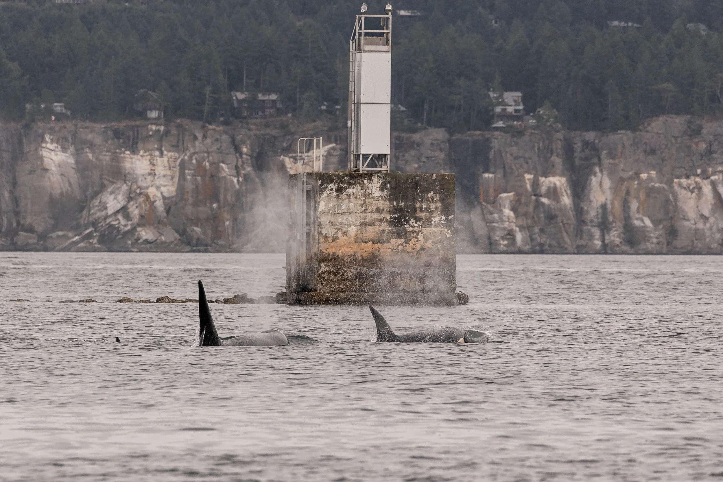 T090B Piglet and T090C Tigger approaching the tip of Protection Island. Photo by Hayleigh Hilbert.