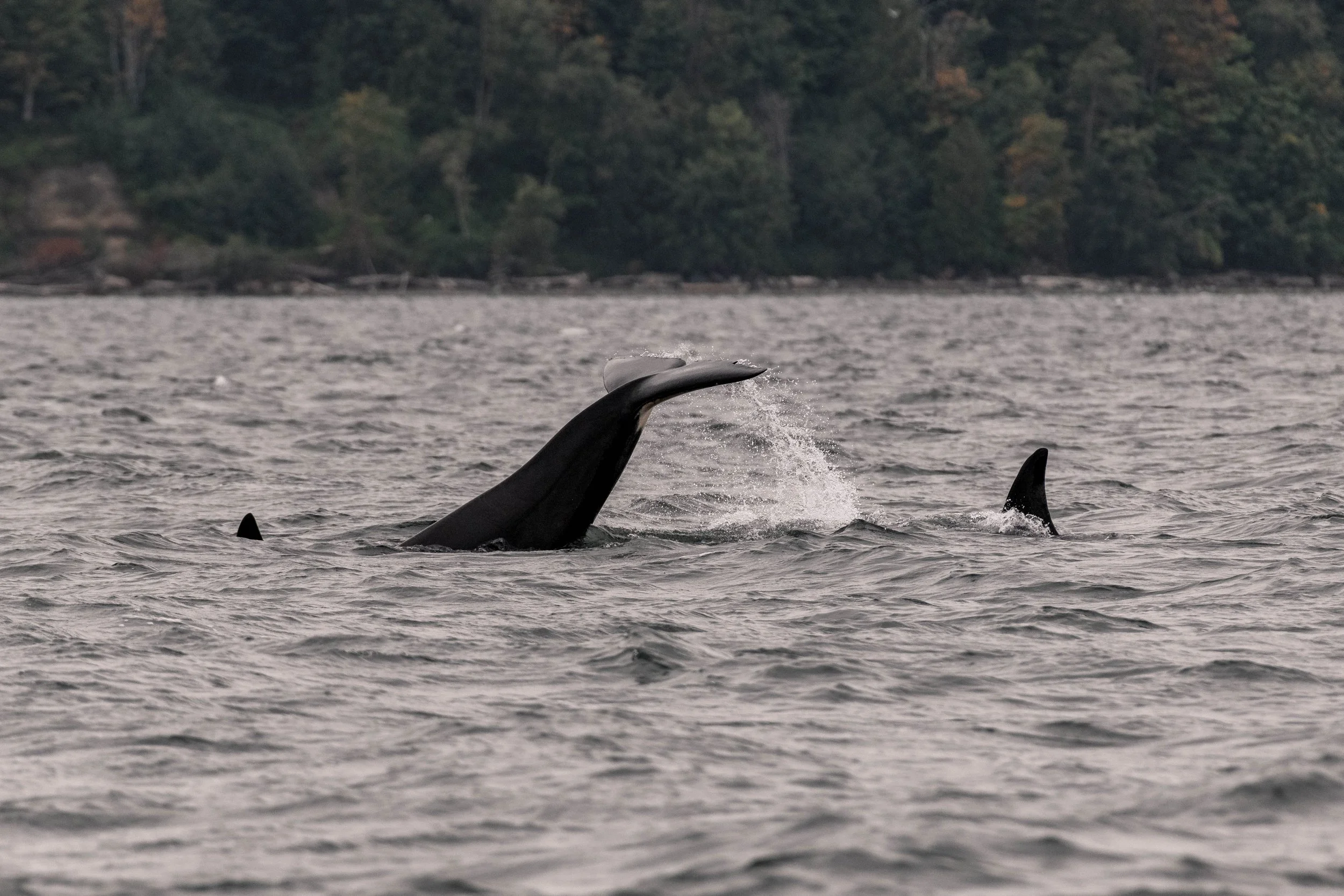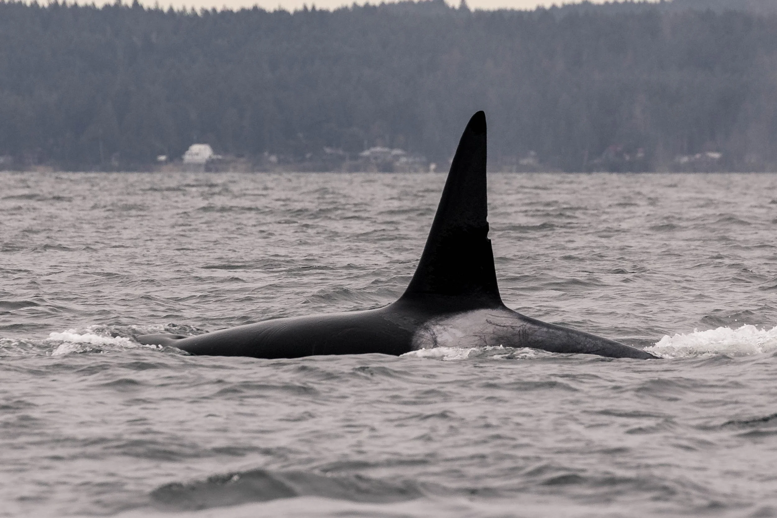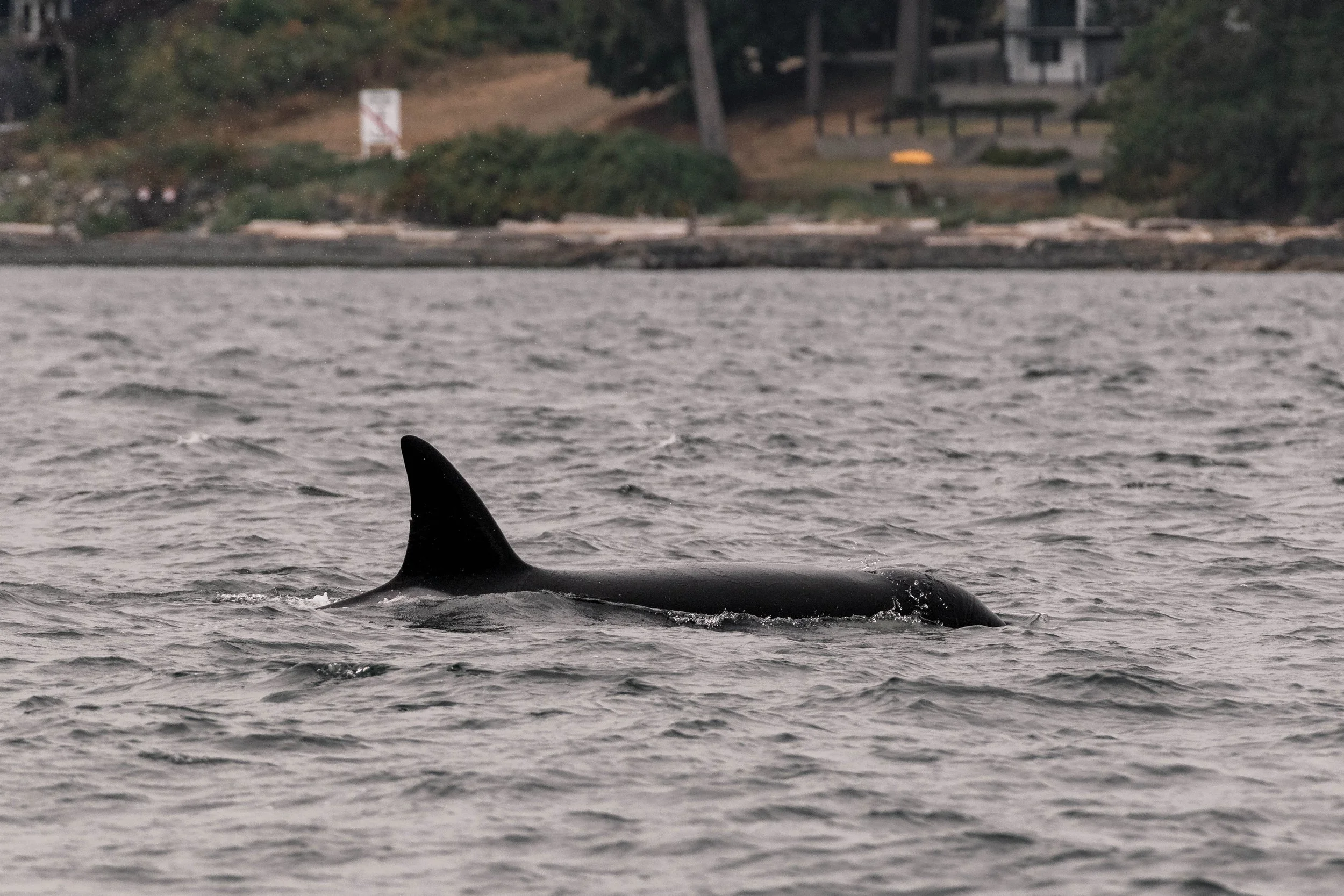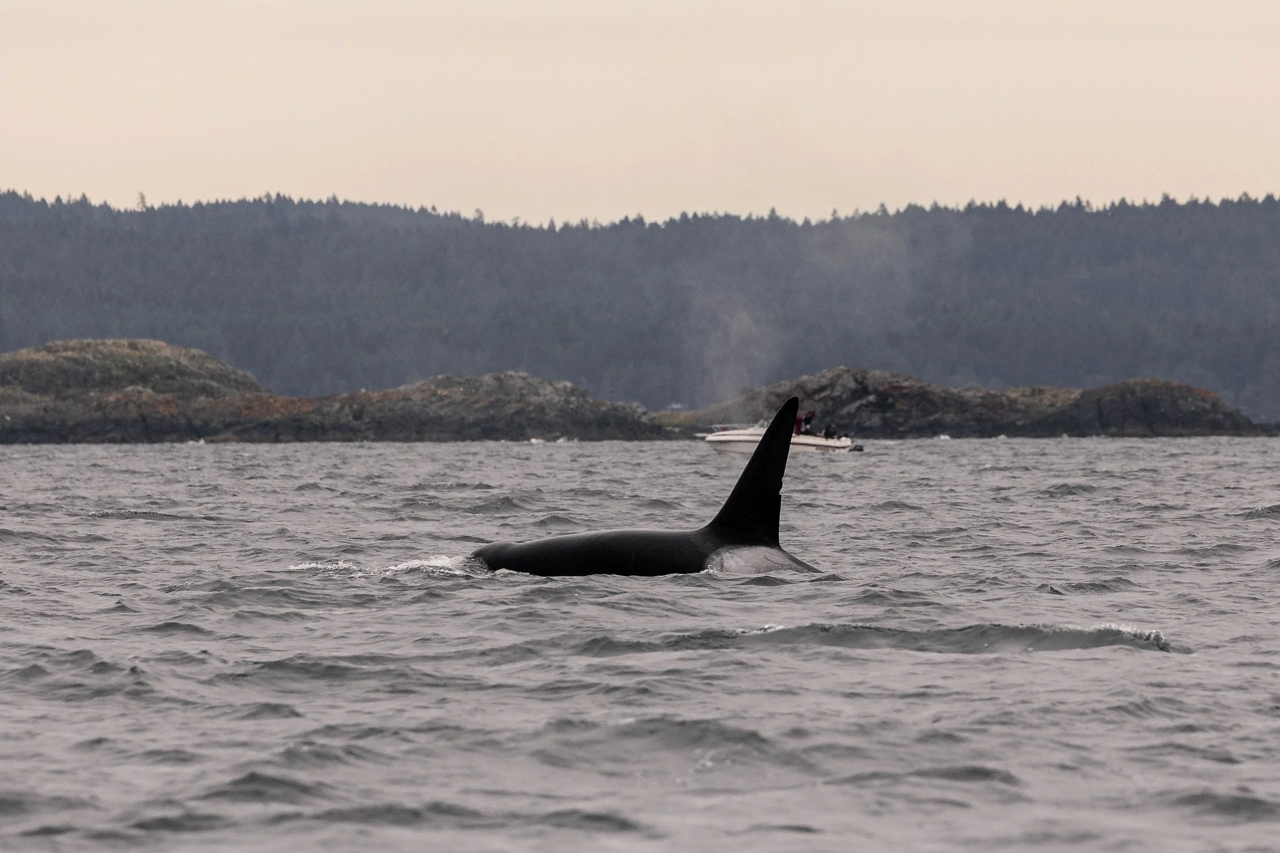 After catching word of a potential whale sighting right in our own ‘backyard' (off of Neckpoint Park), our full fleet departed and turned northward, eager to start the search. We started scanning, and very soon we started to see our first fins slicing quickly through the water! Our Naturalists took their cameras out and began photographing the whales to identify them. For our orca, we usually use photos of their dorsal fins to confirm their IDs. These whales were identified as the T023Cs: