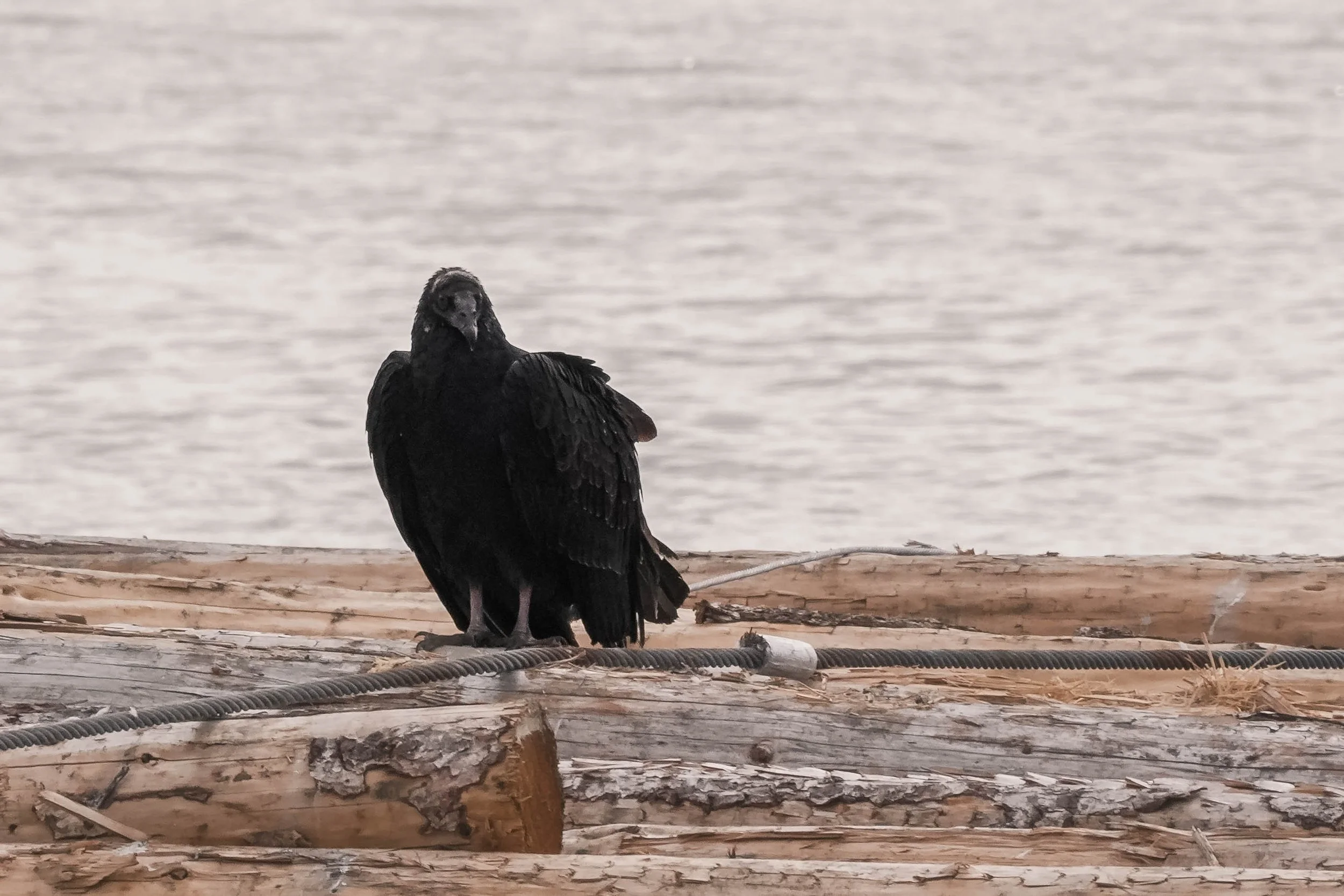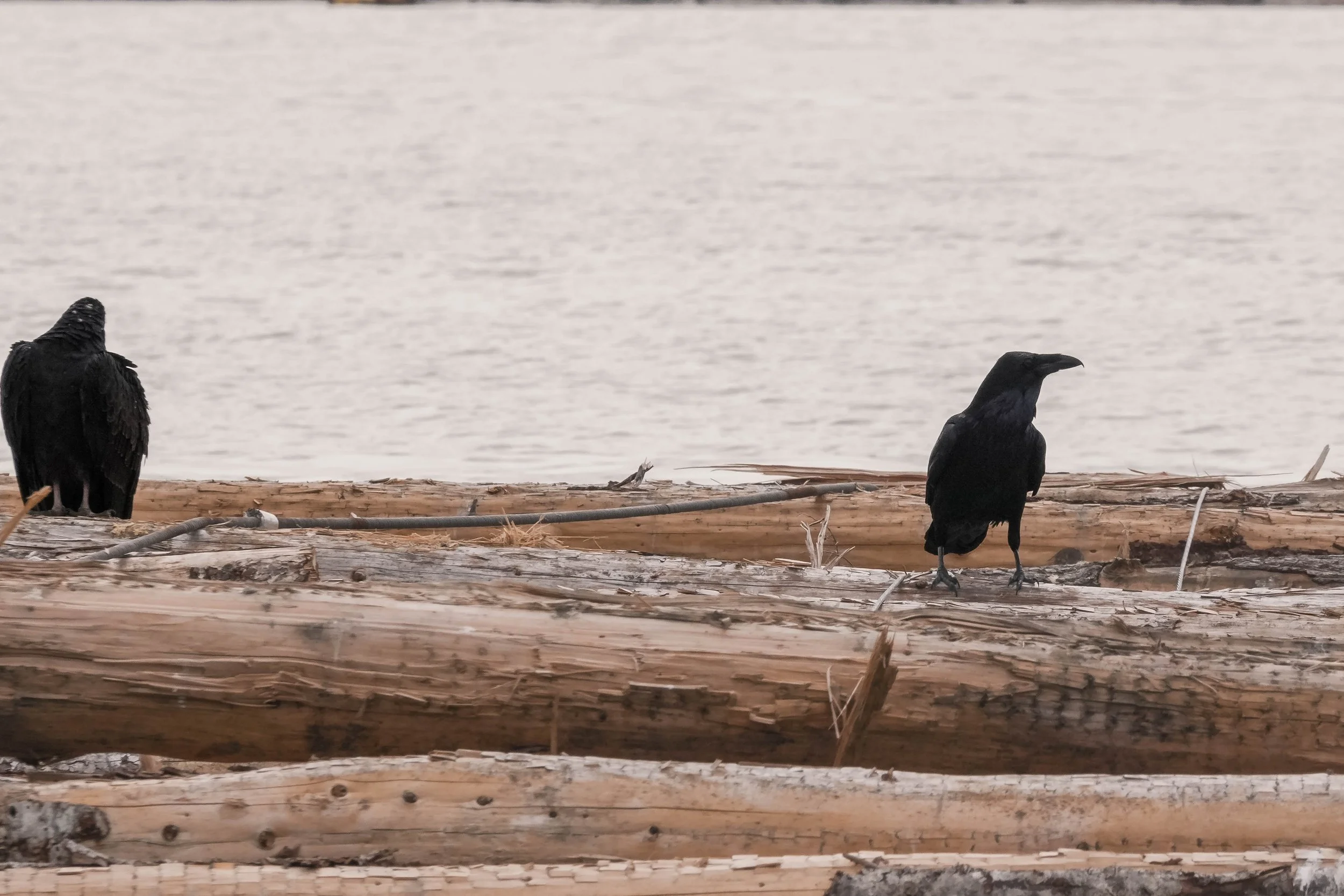 A Raven hops along the logs. Photo by Aly Kohlman.
