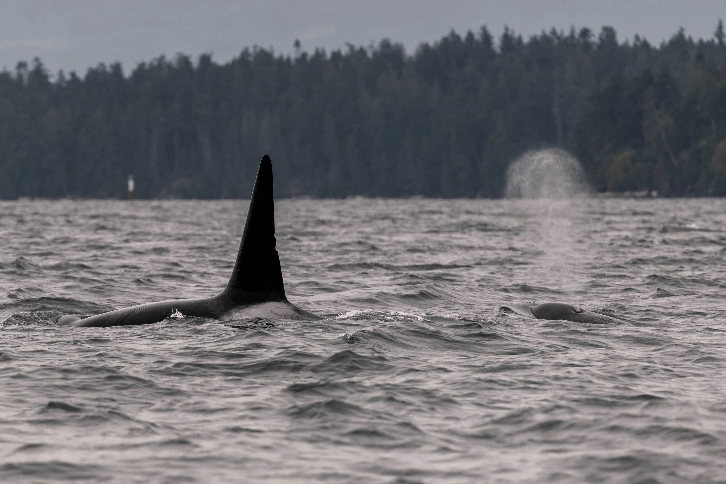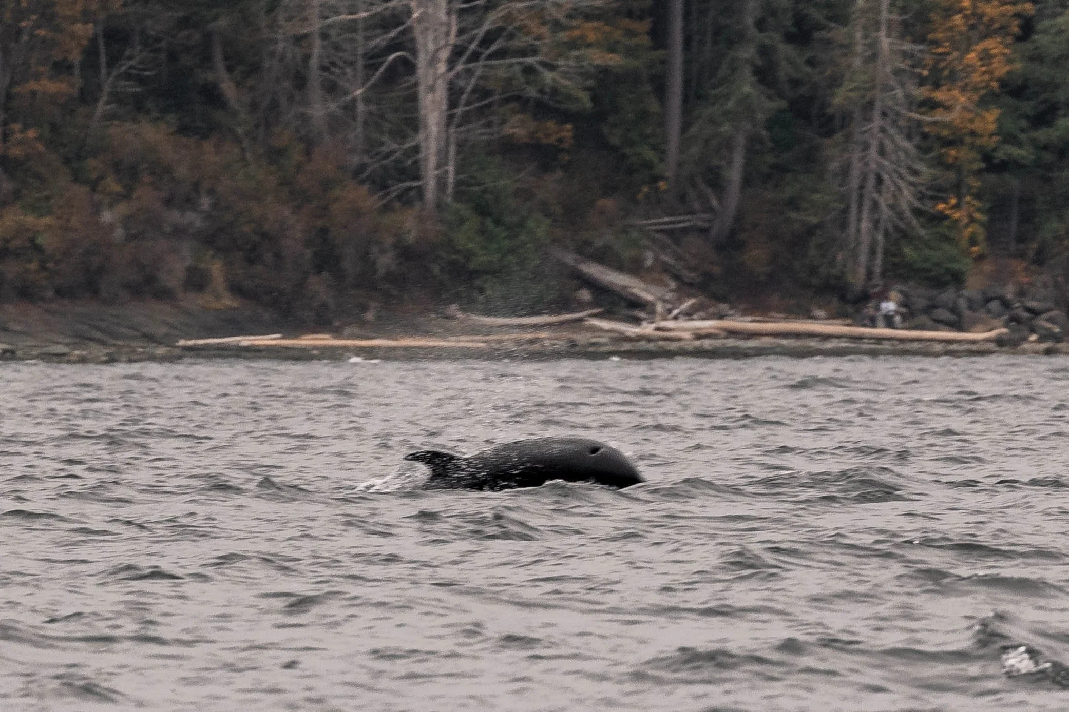 Nielson is a Lone Male. Lone males are not very common in Transient orca, as orca males are huge ‘momma’s boys’ and tend to stick by their mother’s side until their mother passes away. His mother, T049 Charlotte II, is believed to have passed away back in 2007. His sisters, T049A Nan and T049B Van, have both dispersed and have relatively large pods of their own. With his natal pod completely separated, Nielson now travels the seas solo, usually meeting up briefly to associate with other pods before continuing his bachelor lifestyle. Today, he seemed to be happily associating with Bunzie, a male orca from the T023C matriline who is quickly approaching puberty. Was Nielson teaching Bunzie his wisdom, in case Bunzie decides to become a solo bachelor in the future? Were they simply socializing? While we will never know for sure, seeing these two males travel separately from the rest of the pod was definitely an interesting sight to behold!
