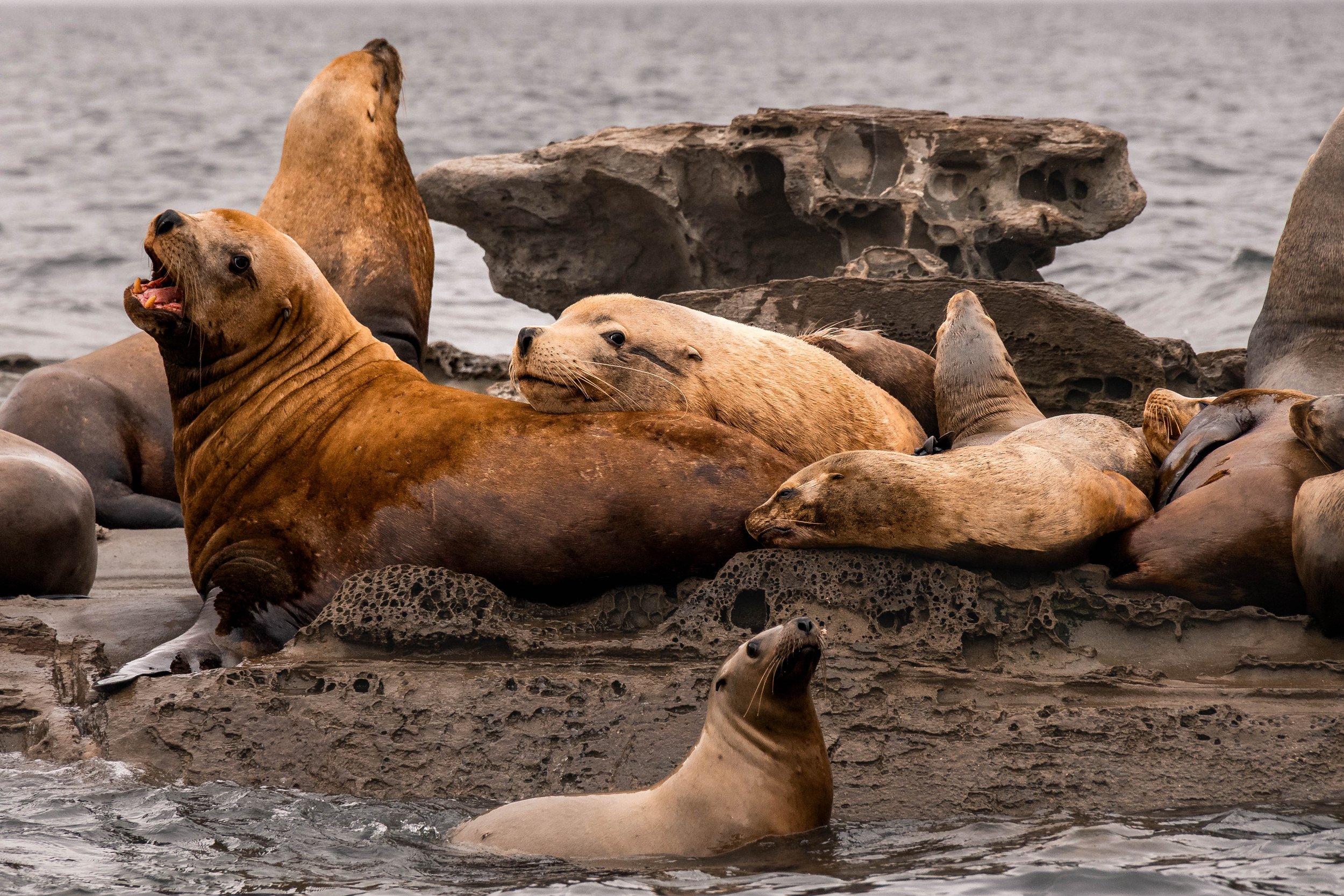 Before heading home, we made a quick stop at Stinky Rocks, a favourite local haul-out for Harbour Seals and Steller Sea Lions. While there, one of the seals was seen “banana posing,” an endearing resting position where they lift their heads and tails out of the water to help regulate their body temperature. The others were sleepily lounging in the shallows. The towering Steller Sea Lions, on the other hand, were piled together in a cuddle puddle - snoring, belching, and occasionally grumbling away to assert their dominance.