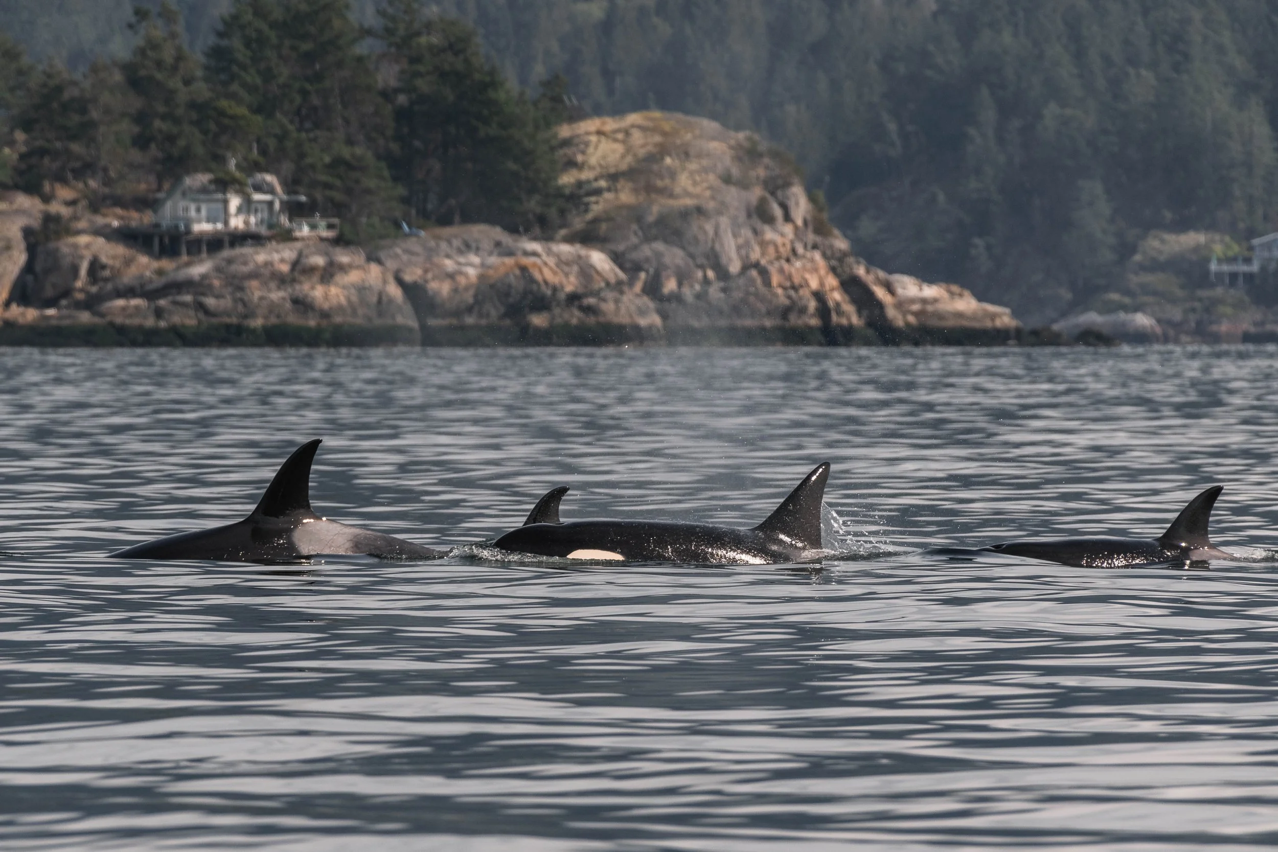 Orcas sitting at the surface of the water. Photo by Aly Kohlman