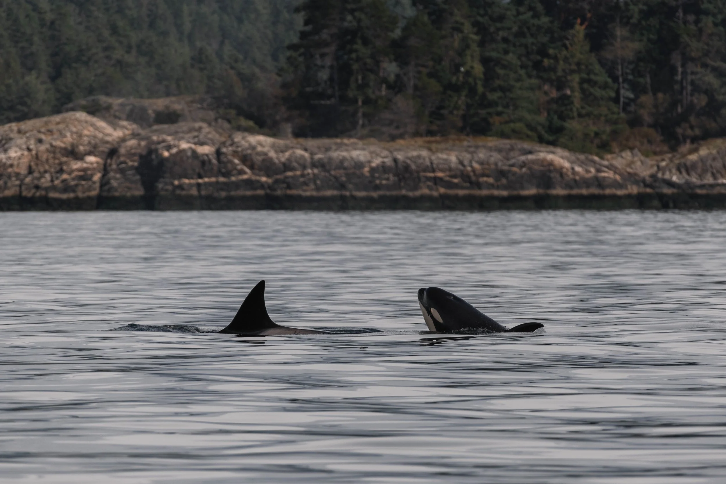 From the surface, we could see it was an active scene: spy hops, tail slaps, pectoral waves, and rolling, evident signs of play and social bonding. It was a joy to watch these powerful animals interacting with such energy and grace. The orca present were: