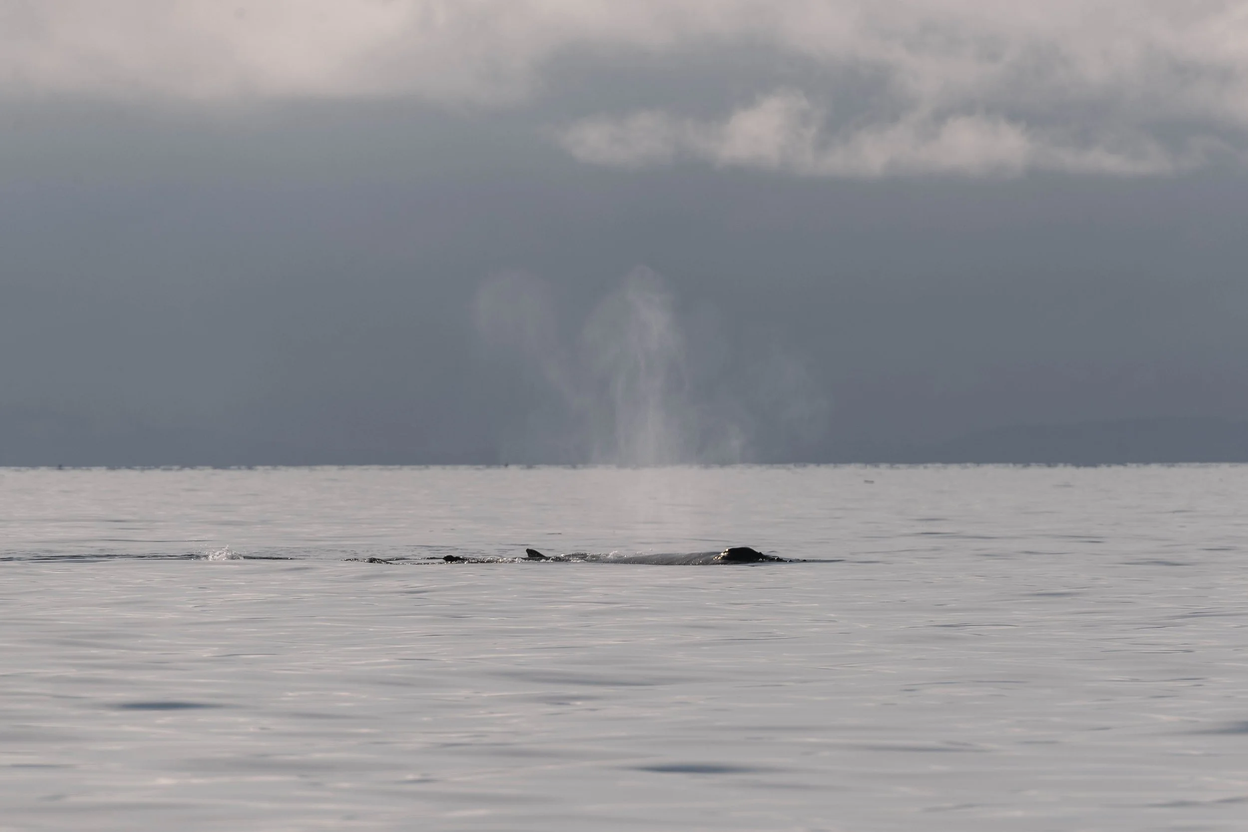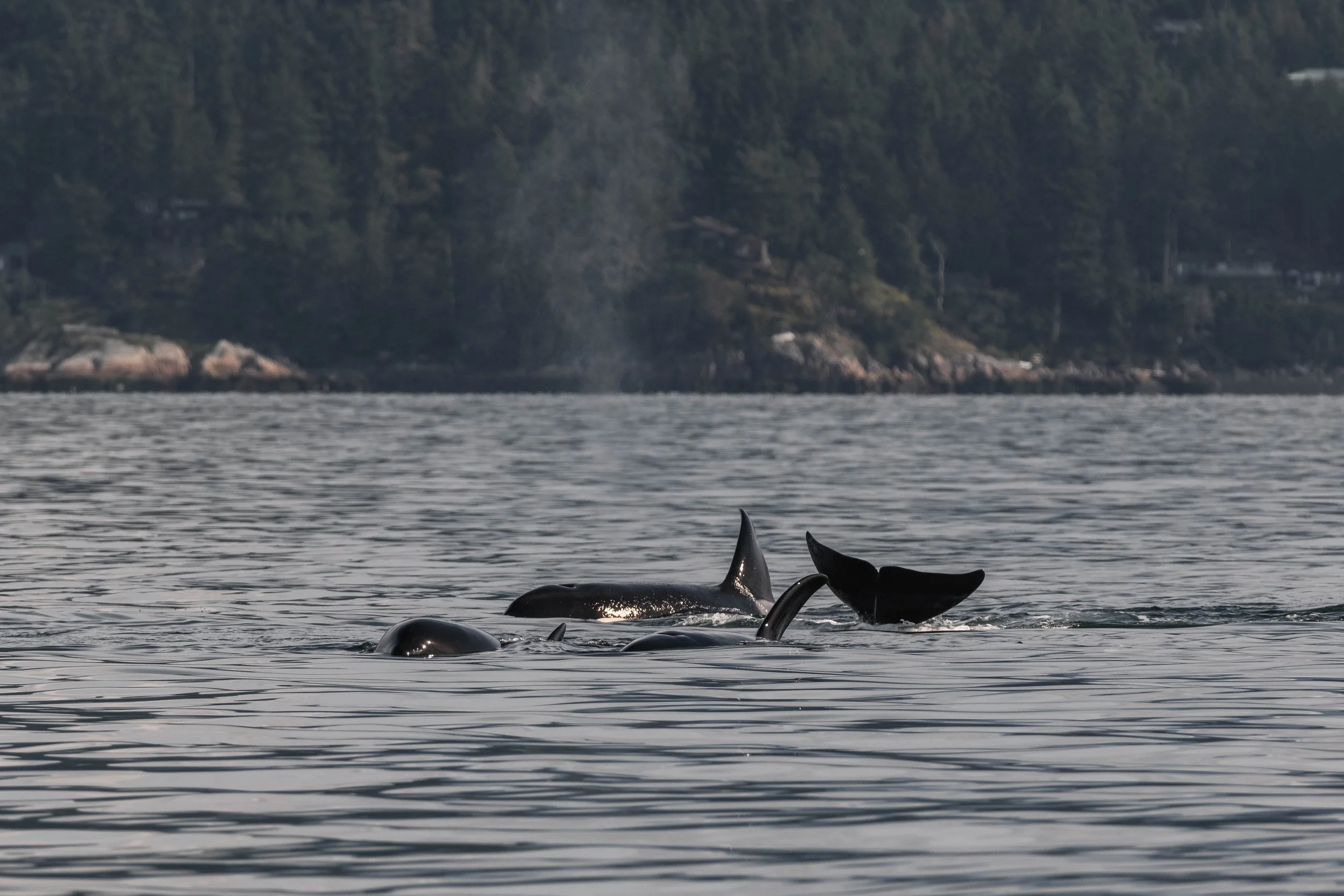 Can you spot the orca dorsal behind the blow? Photo by Aly Kohlman.
