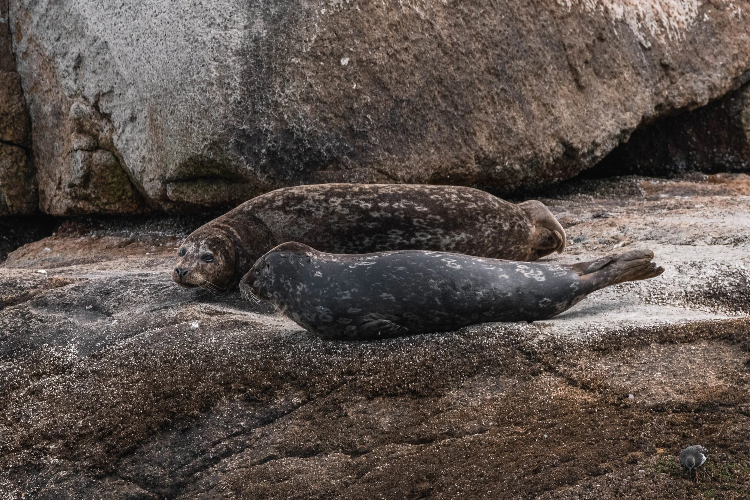 Chubby harbour seals resting on the rocks. Photo by Aly Kohlman.