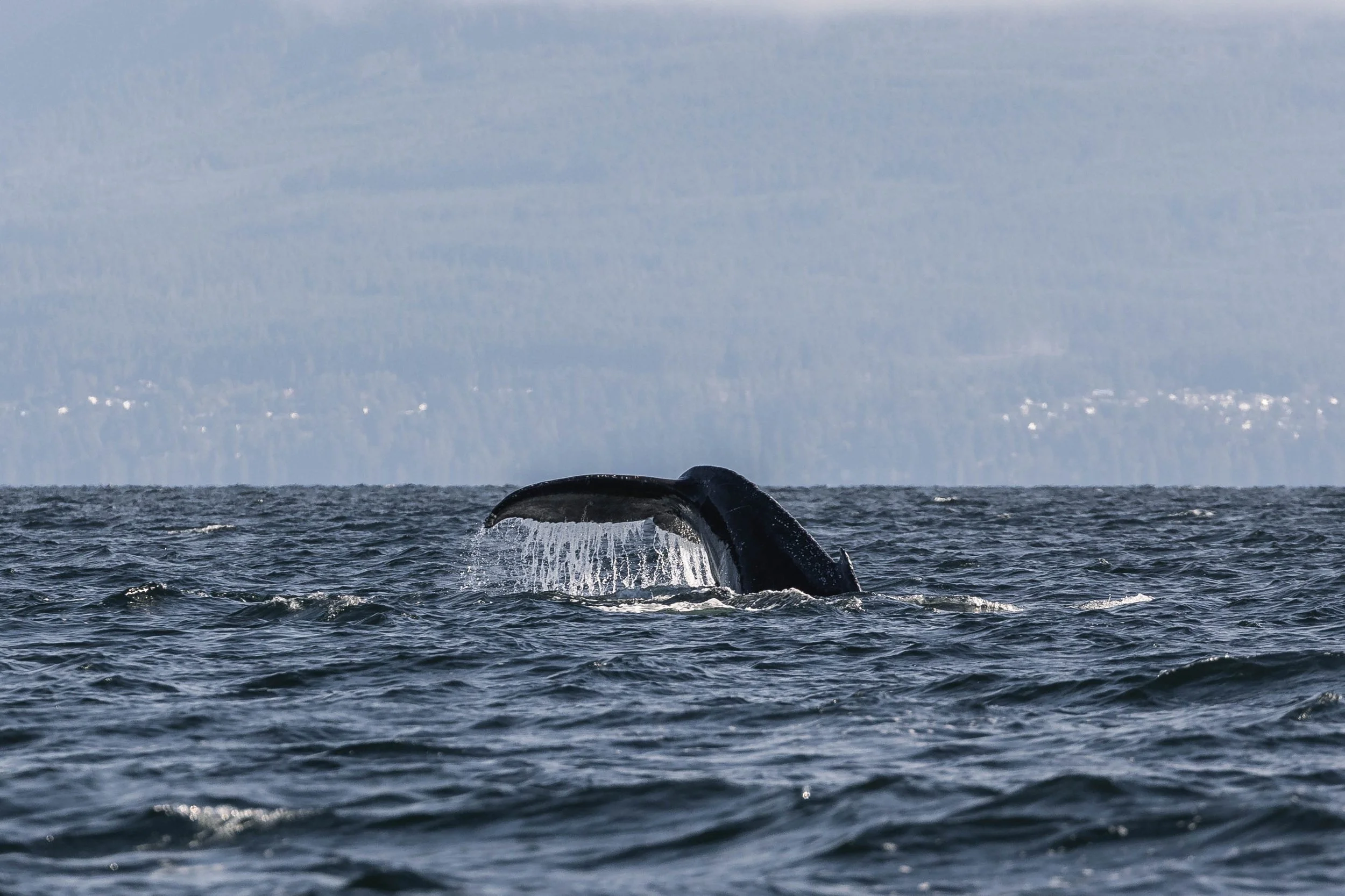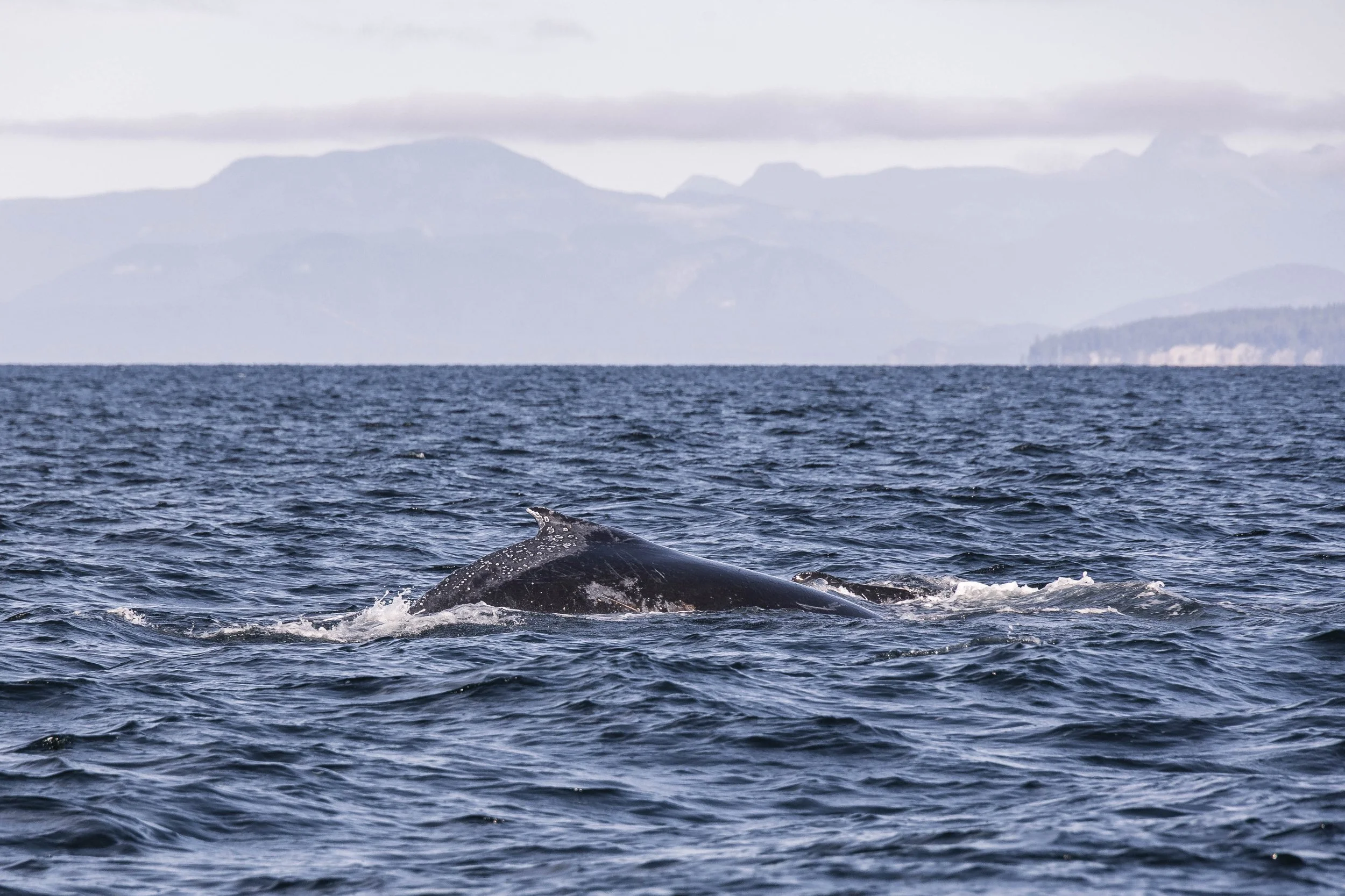 As the day drew to a close, Kula found one final surprise on the way home - another pair of humpbacks! One of them was identified as Mammoth/Ocean (BCX1710), recognizable from her fluke, as well as a series of propeller scars on her left side from a previous vessel strike. Her companion has yet to be identified, as they didn’t fluke during our encounter, but we’ll keep working on identifying her companion from the dorsal shots we managed to get!