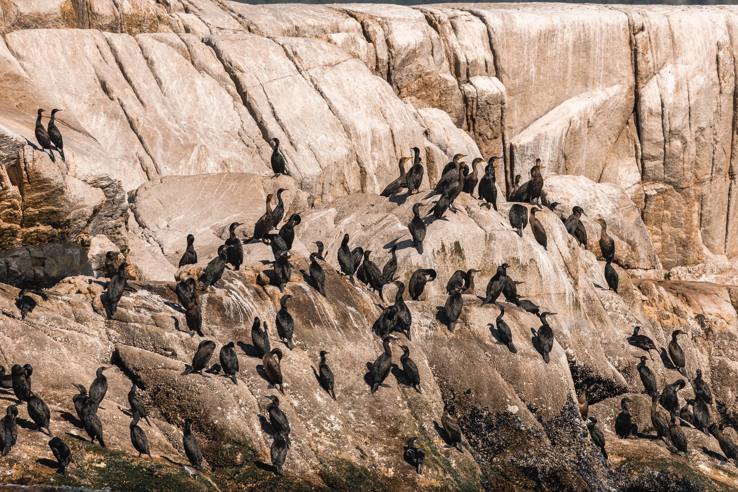 Once our time with the T101s came to an end, we made one more wildlife stop at the White Islets, a favourite haul-out spot for pinnipeds and seabirds alike. The rocks were alive with noise and movement - Steller Sea Lions roaring and posturing for space, with two massive males seen “neck jousting” in the shallows.
