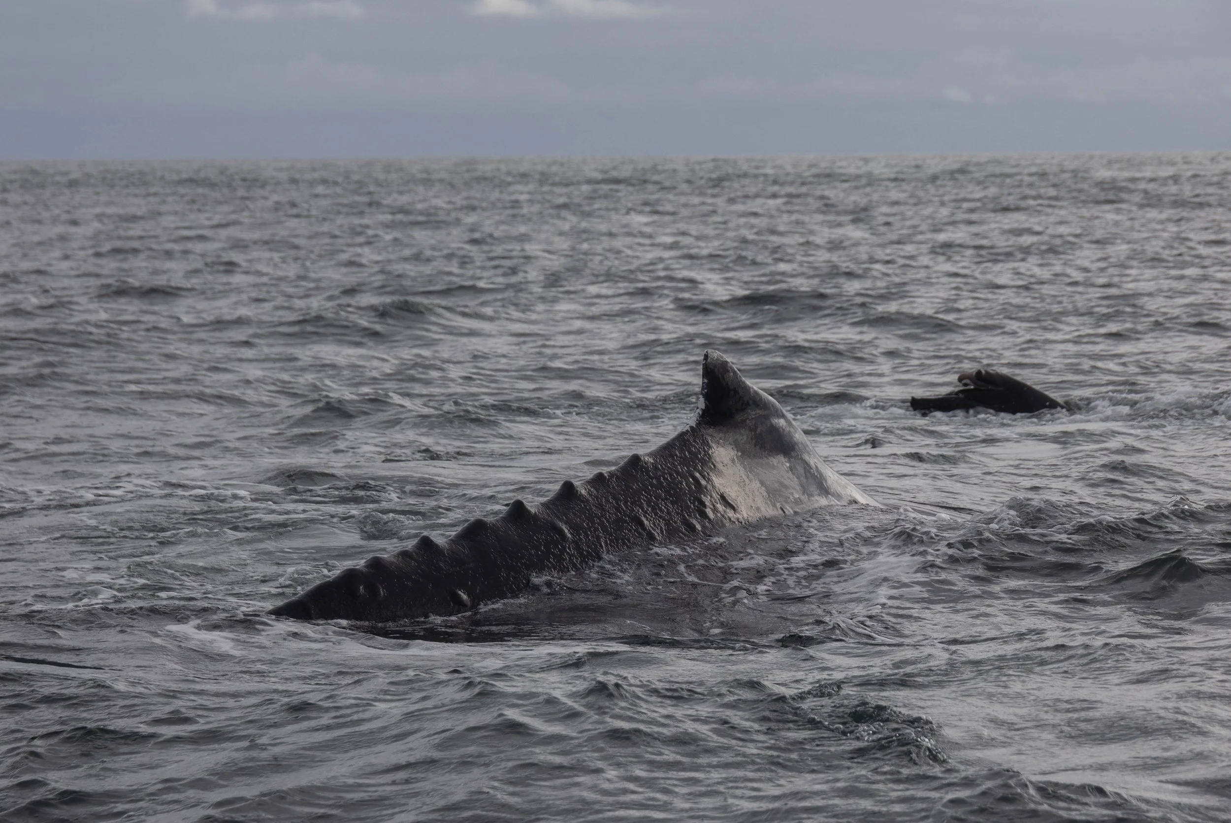 Tag shows off the top of their fluke. Photo by Jordan Robinson.