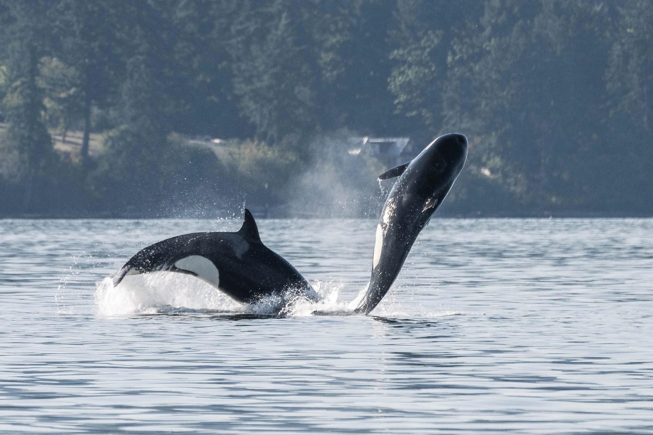 T099E Qwiin qwiin oo qwii la witth another one breaching beside her. Photo by Val Watson.